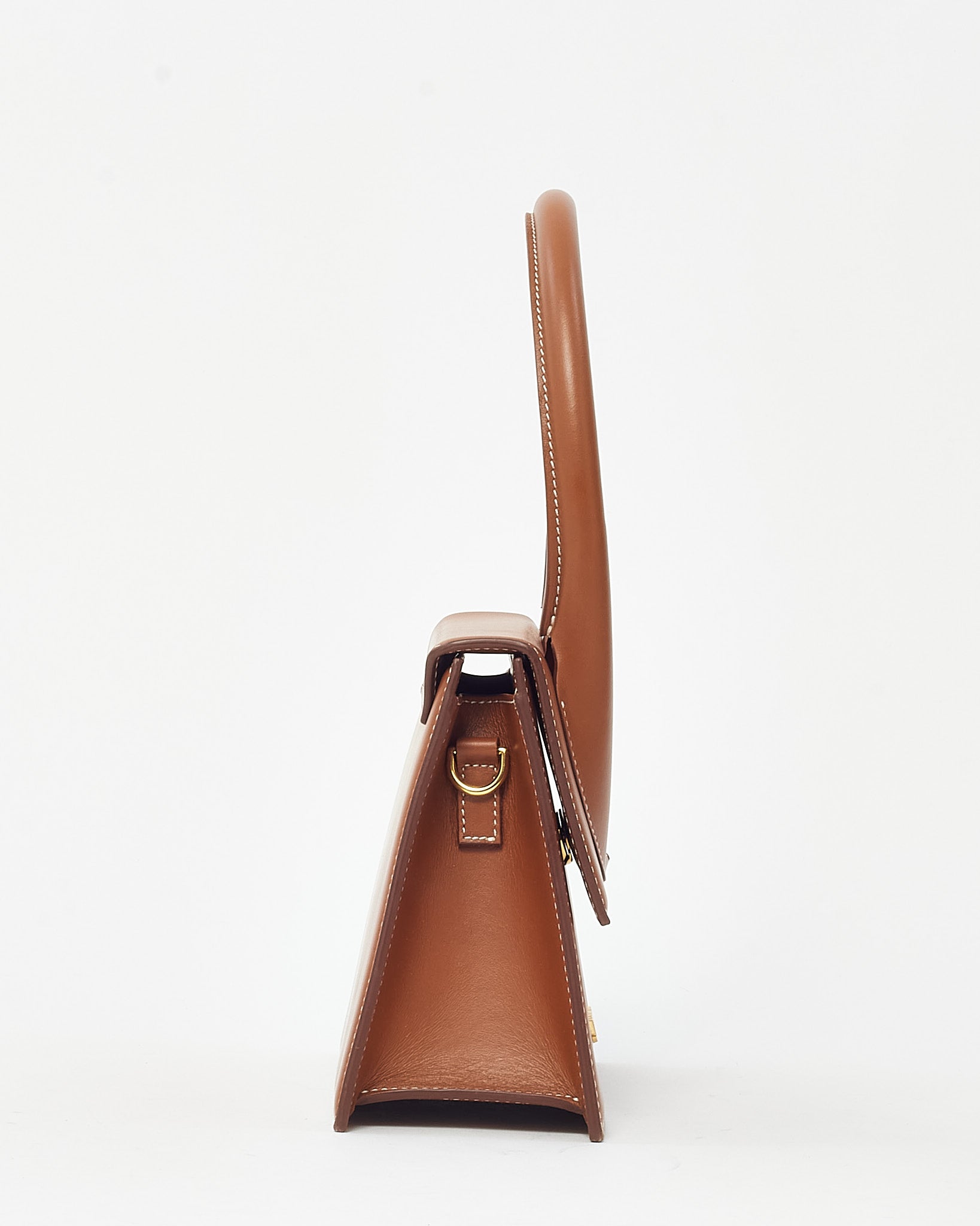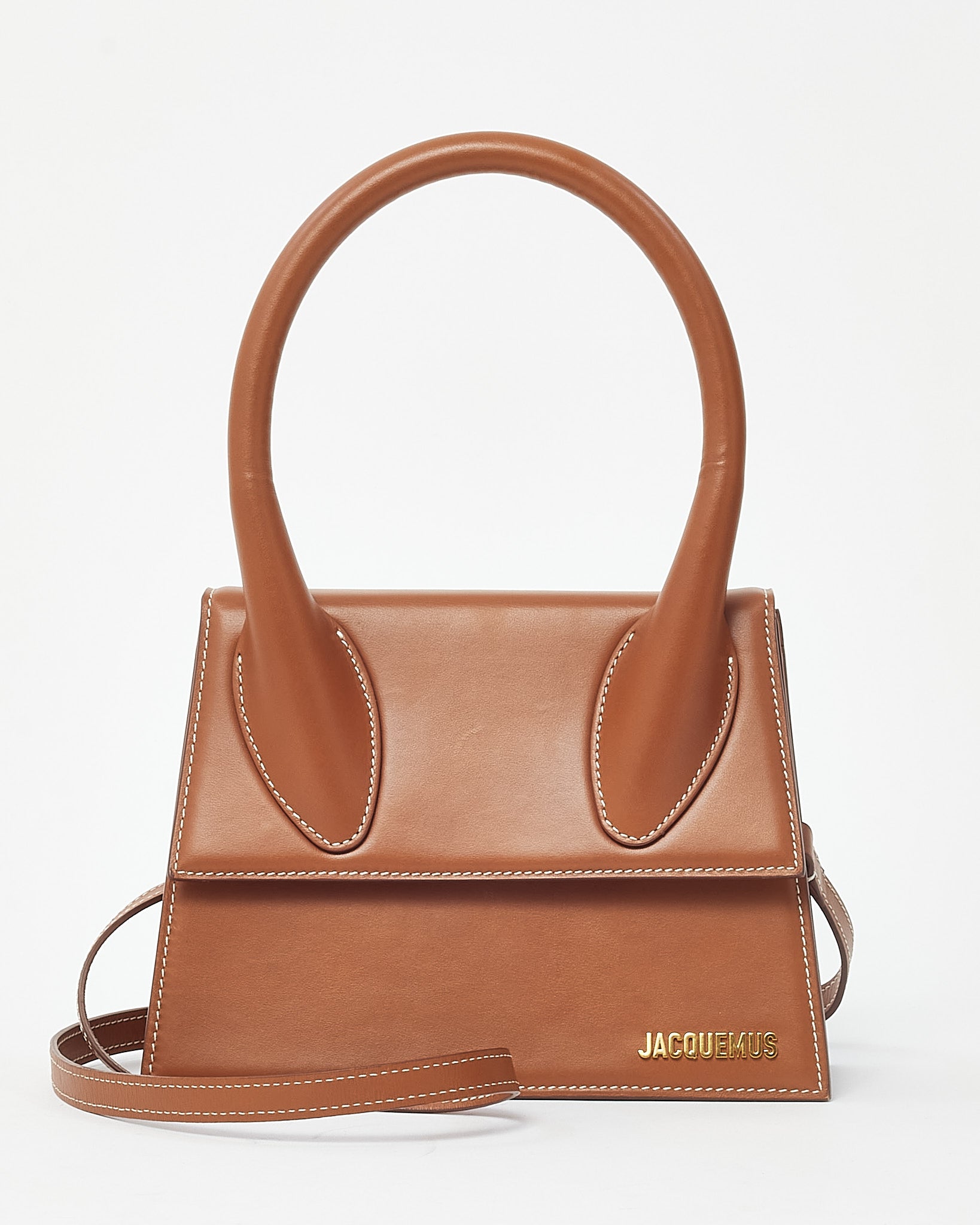 Make a bold statement with this pre-loved authentic Jacquemus “Le Grand Chiquito” Bag, crafted in smooth tan leather and defined by its structured silhouette and oversized top handle. The playful proportions and minimalist design capture the essence of modern French fashion, while the detachable shoulder strap adds versatility for hands-free styling. Finished with gold-tone hardware and signature front logo detail, this sculptural piece adds a contemporary twist to any outfit. Perfect for elevating both casual and dressy looks with a touch of avant-garde sophistication.