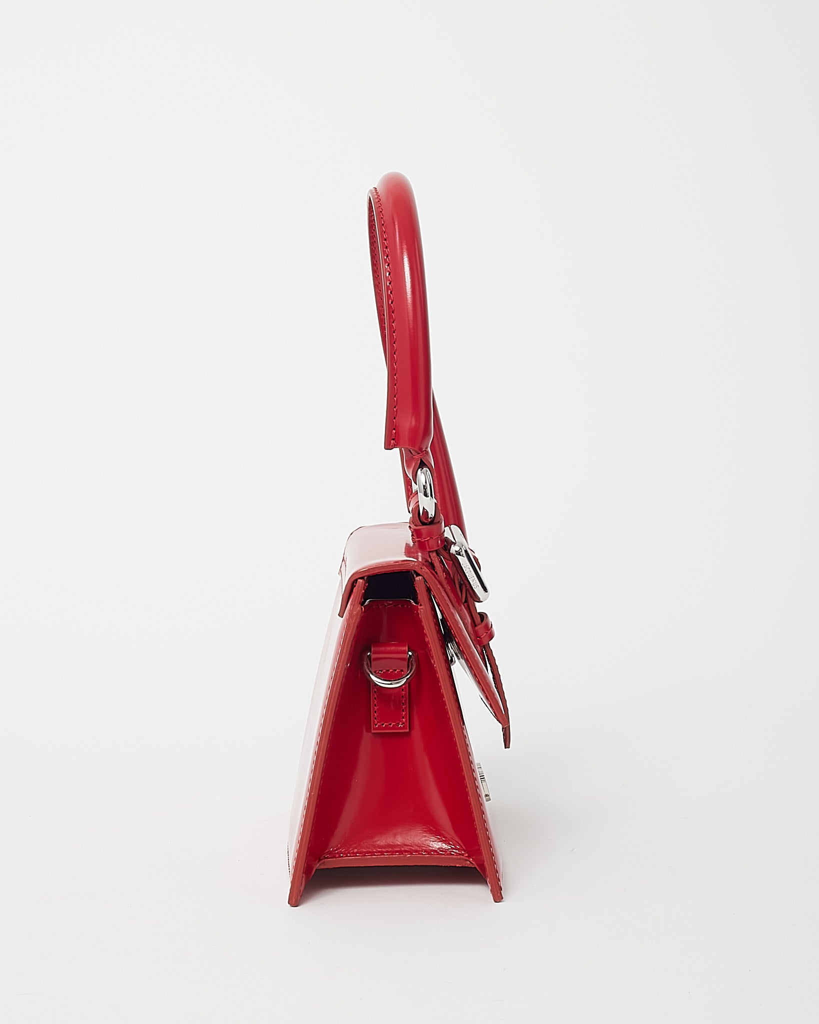 Make a bold fashion statement with this pre-loved authentic Jacquemus Red Leather Silver Buckle Handle Le Chiquito Moyen Crossbody Bag, crafted in smooth red leather for a vibrant, eye-catching finish. The iconic structured silhouette is defined by its top handle with silver buckle detail, adding a distinctive edge to the design. Complete with a detachable strap for crossbody wear and a compact interior for essentials, this Jacquemus bag blends playful proportions with modern sophistication. A standout designer piece that delivers signature style and contemporary luxury appeal.