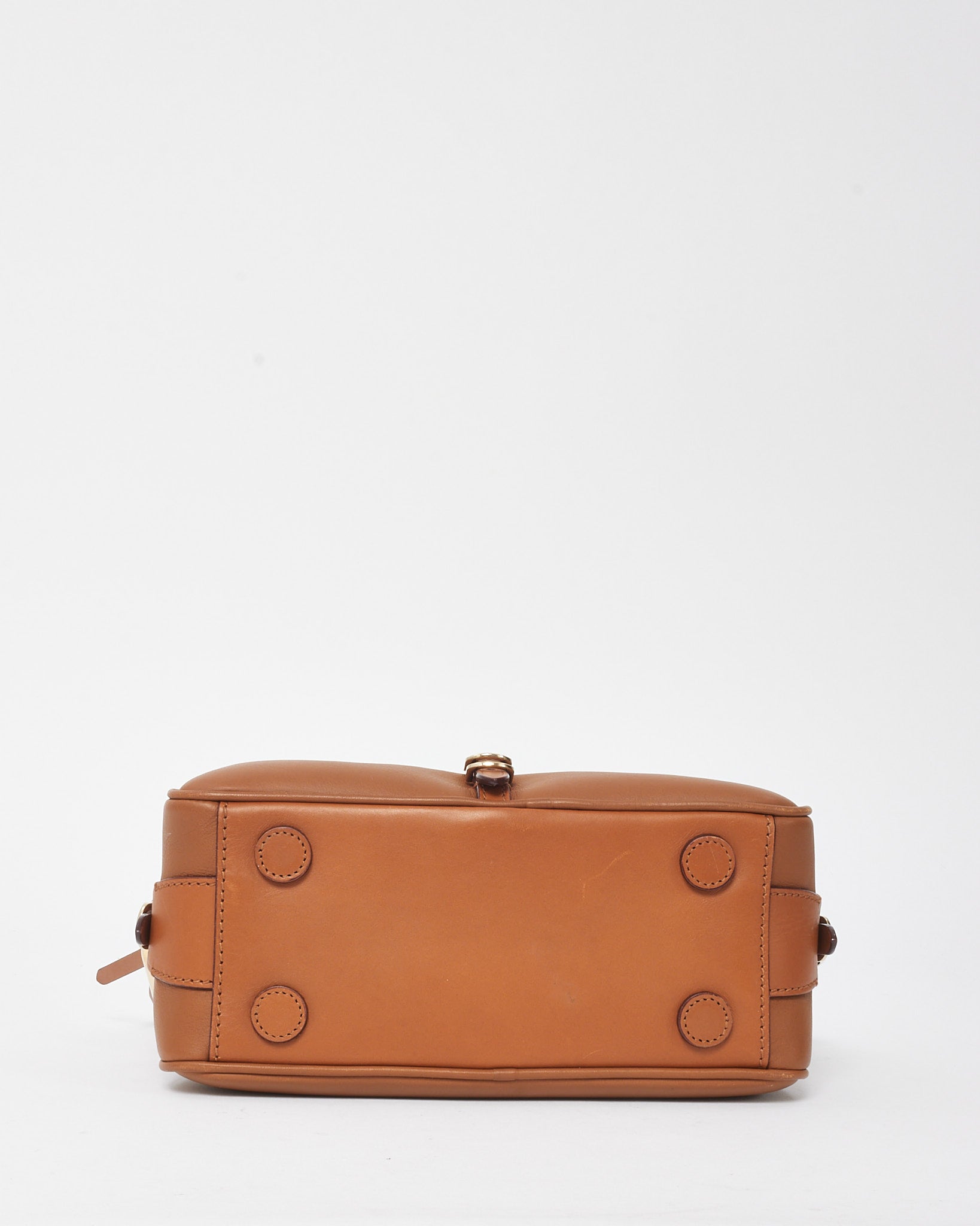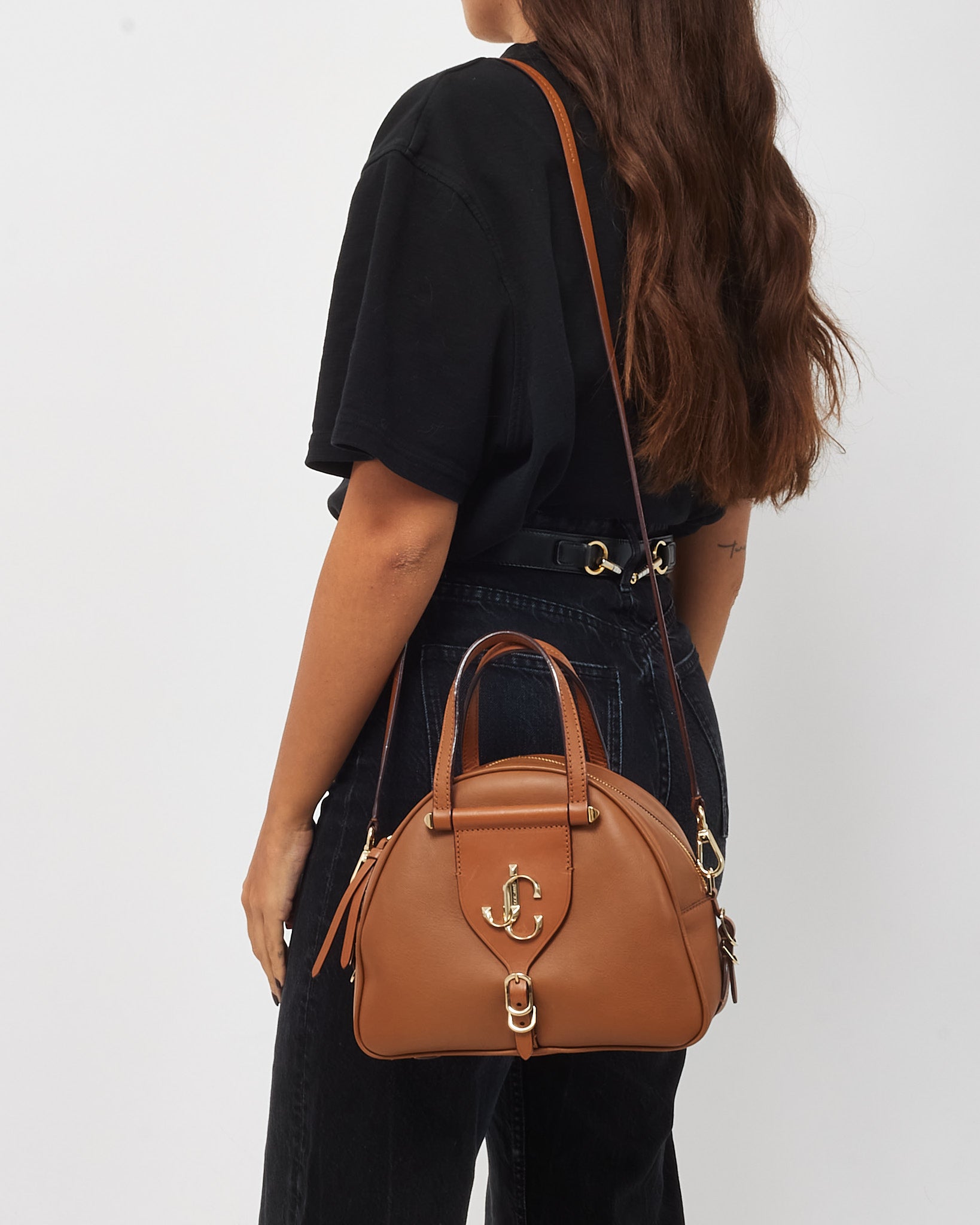 A polished everyday companion, this pre-loved authentic Jimmy Choo Varenne Bowling Bag is crafted in supple tan leather with a structured silhouette and timeless appeal. The compact size is ideal for day-to-evening transitions, while rolled top handles and an optional shoulder strap offer versatile styling. Gold-tone hardware, including the signature JC monogram at the front, adds a refined finish. A zip-around closure opens to a neatly lined interior with slip pockets for essentials. This piece combines sophistication and practicality in signature Jimmy Choo style.