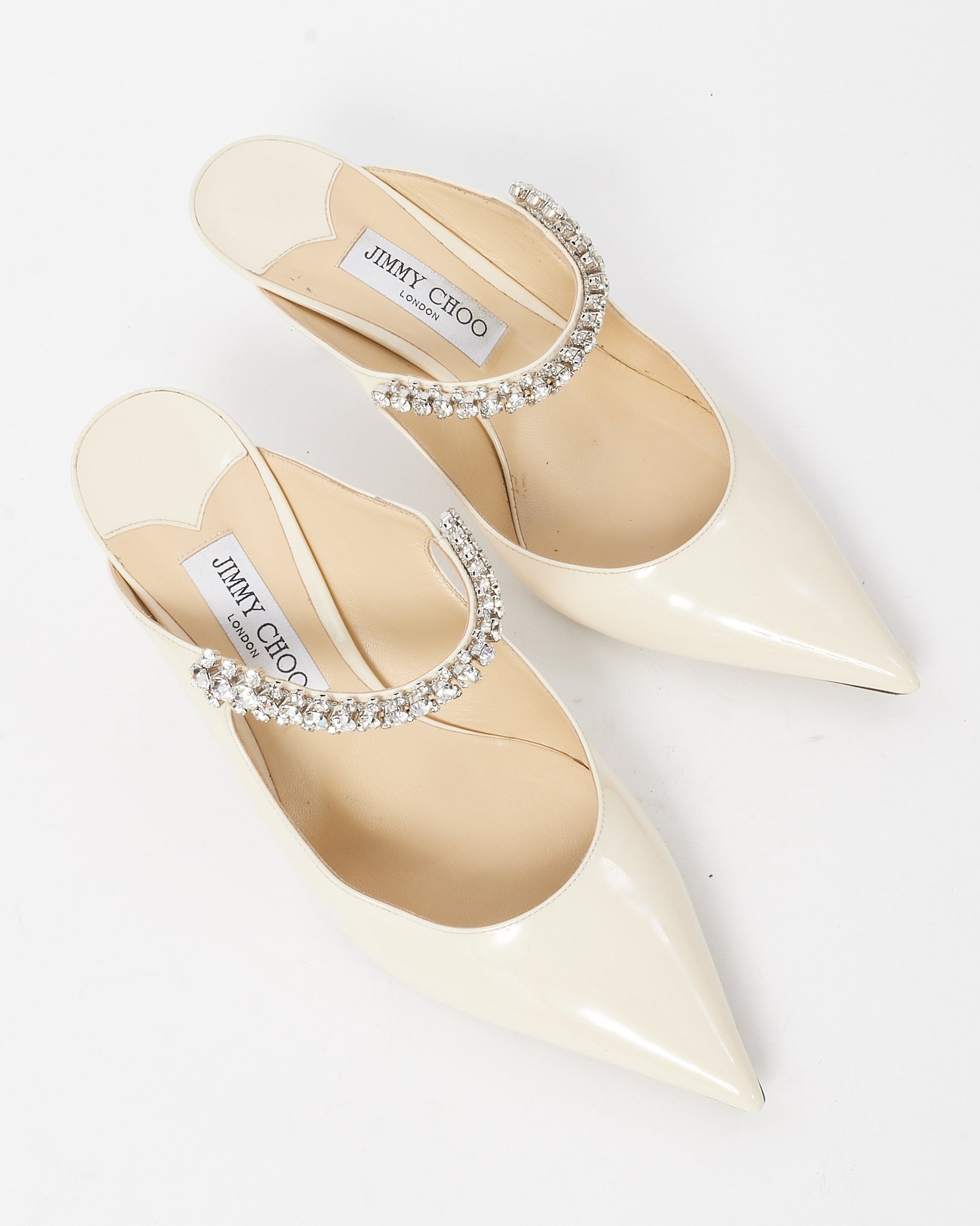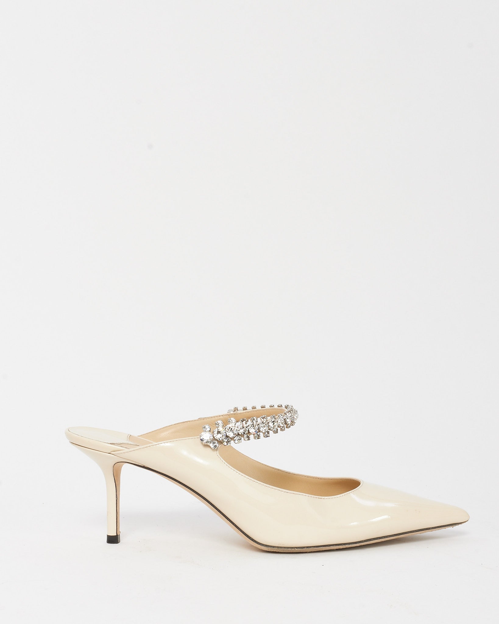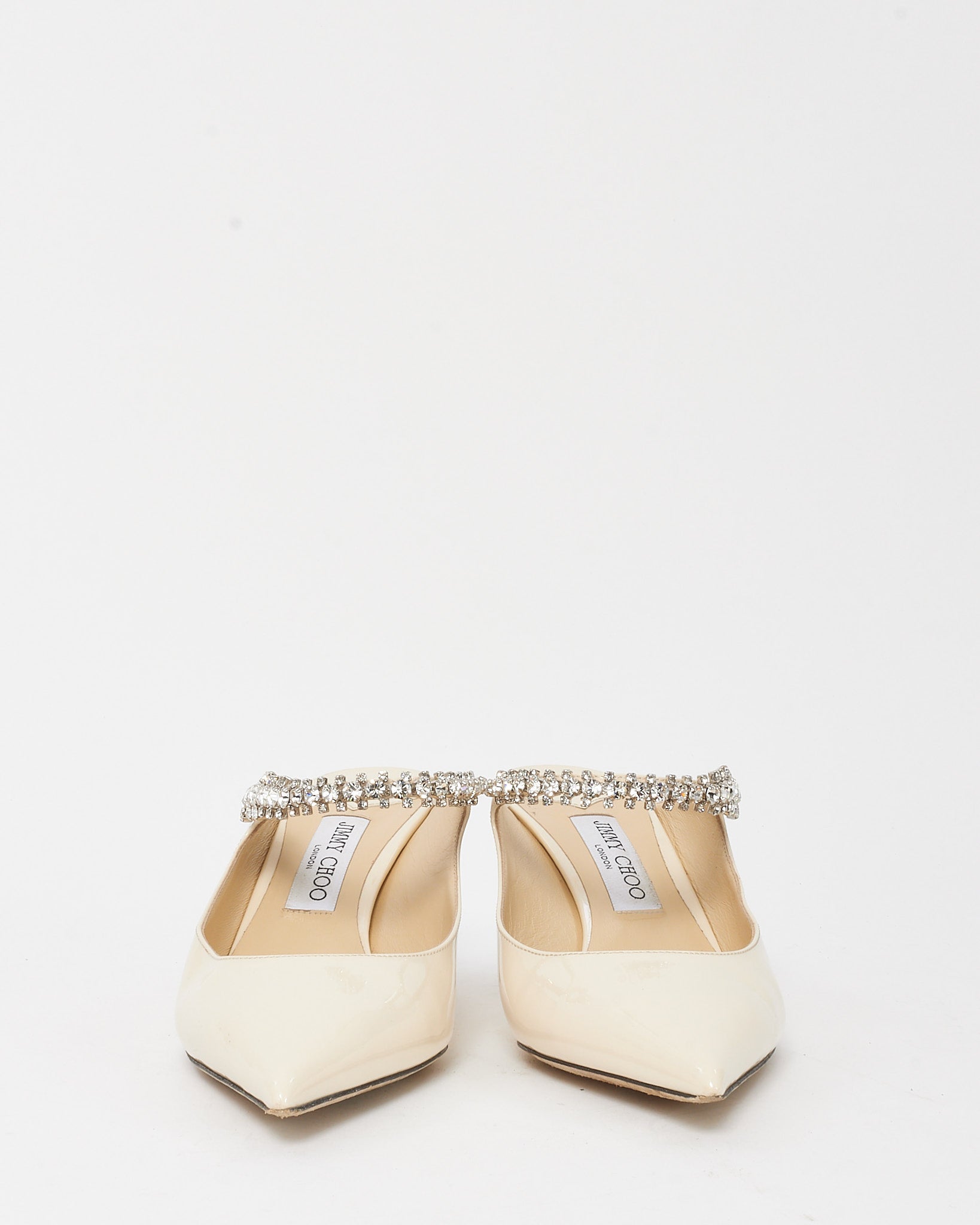 White Cream Patent Leather Crystal Bing 65mm Slip-On Heels - 41