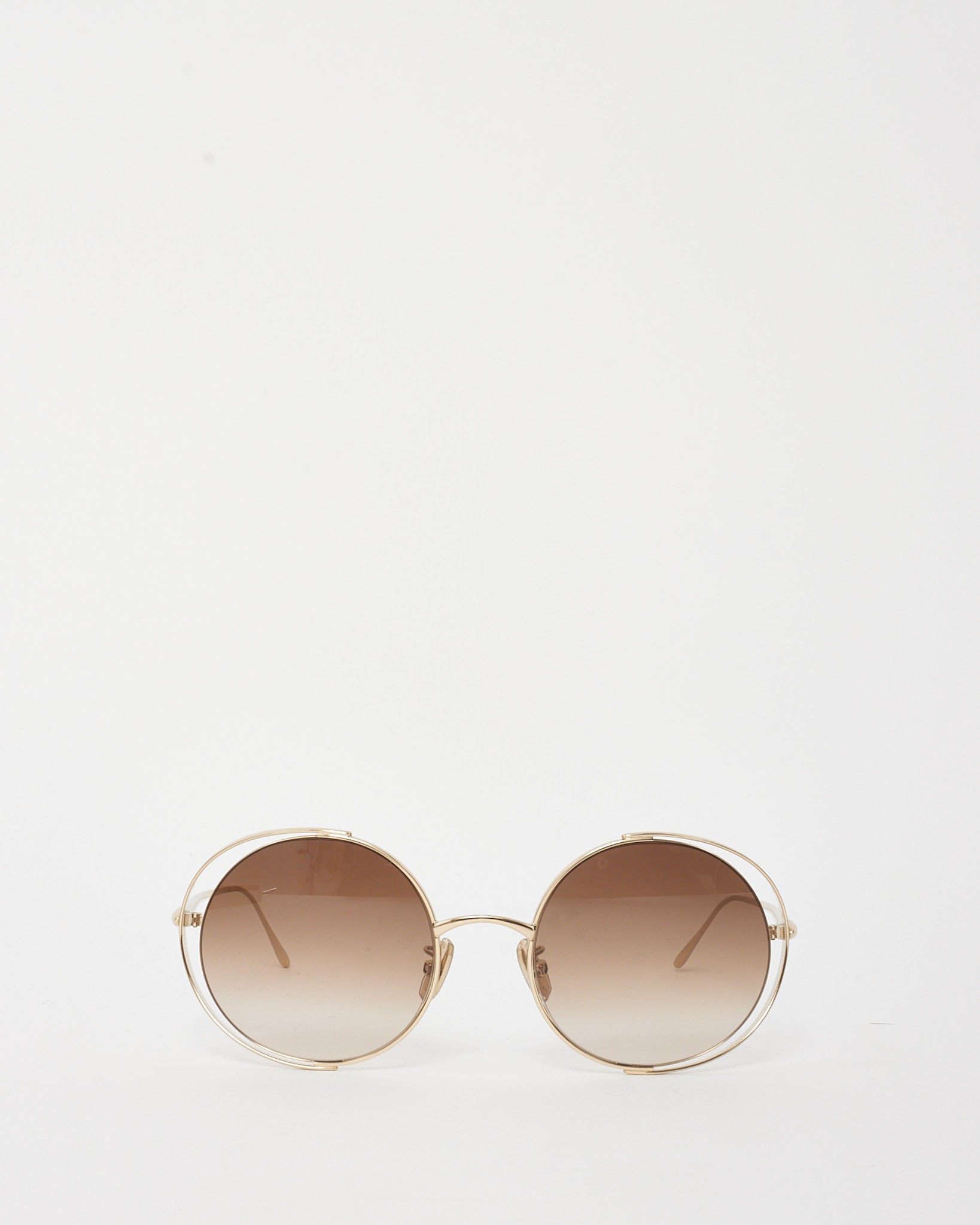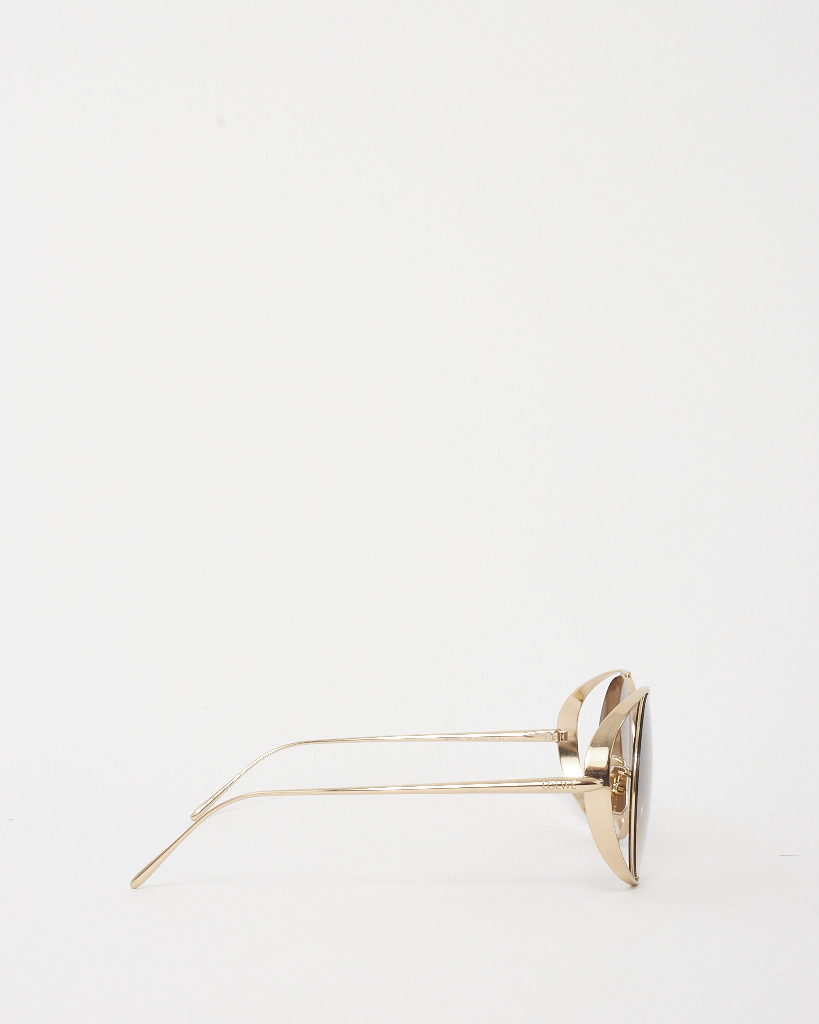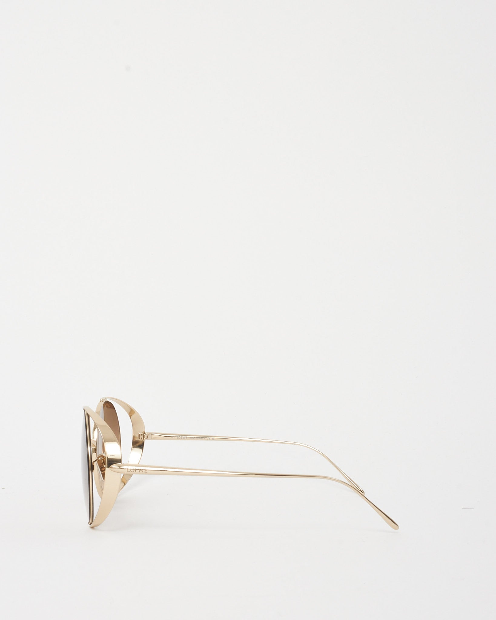 A bold expression of modern minimalism, these pre-loved authentic Loewe LW40149U sunglasses are crafted from gold-tone metal in a distinctive round silhouette. Designed with lightweight construction for comfortable wear, they feature slim temples subtly engraved with the Loewe logo. The gradient lenses offer essential UV protection while adding a polished finish to this contemporary eyewear staple. Perfect for elevating casual or refined looks with signature Loewe artistry.