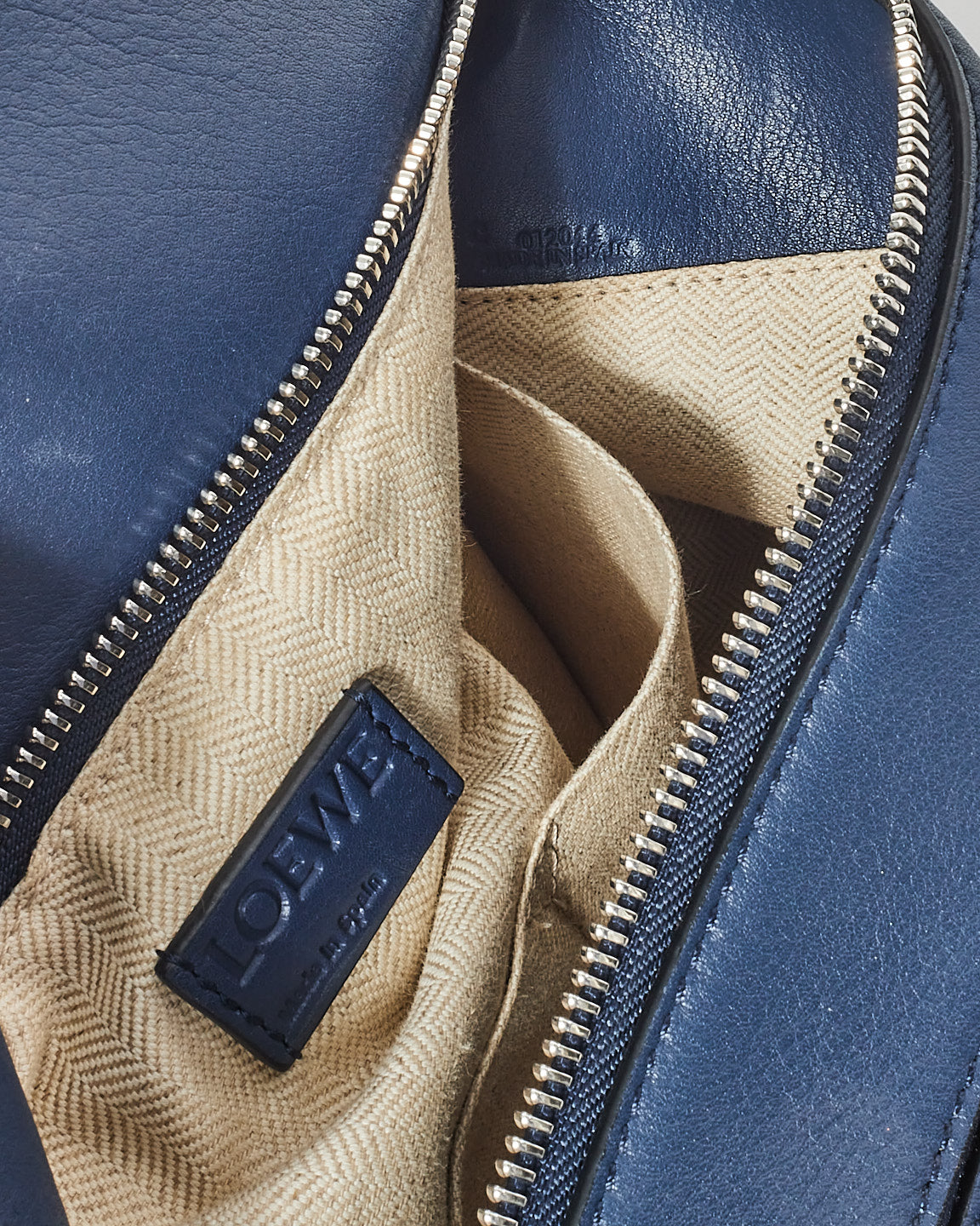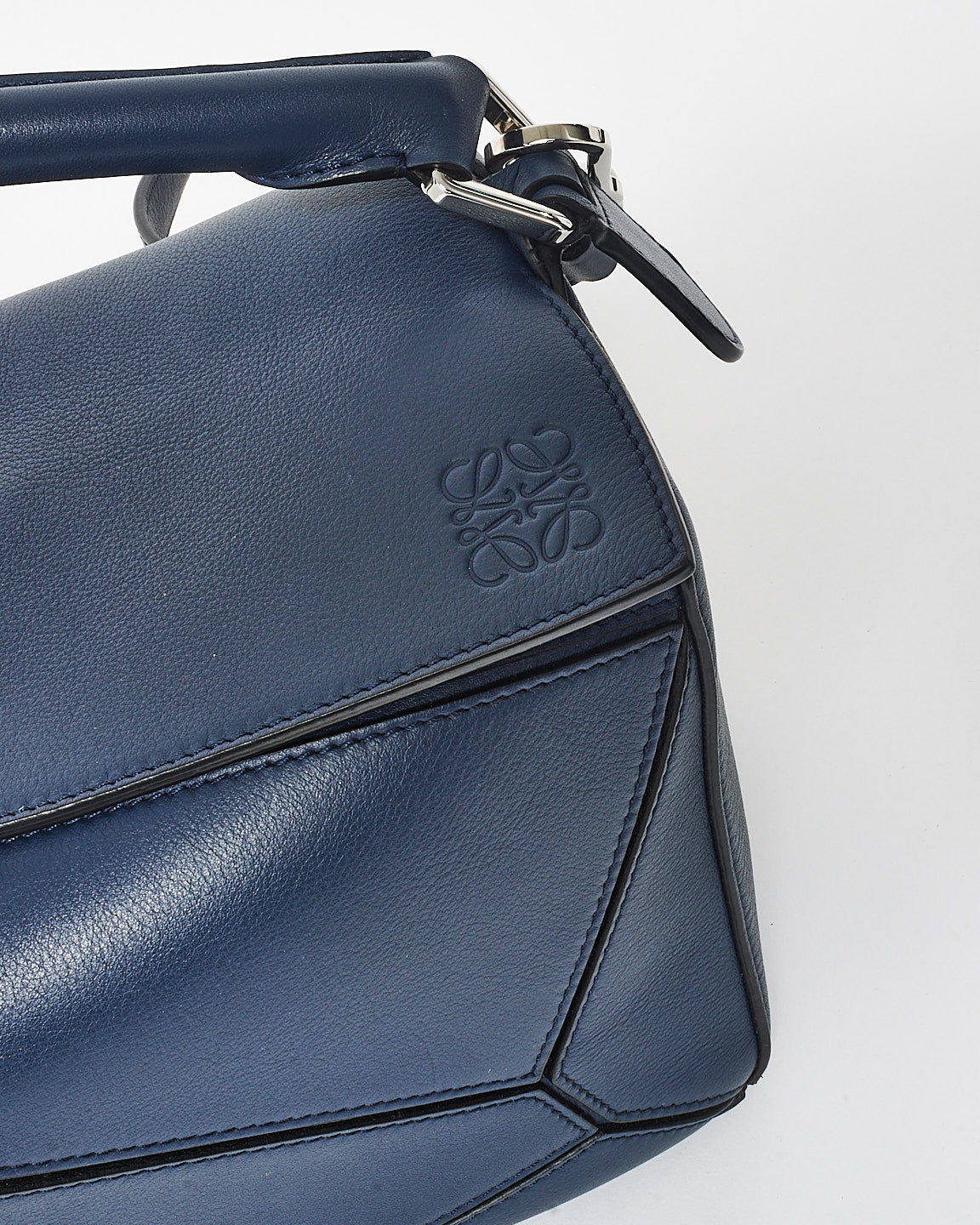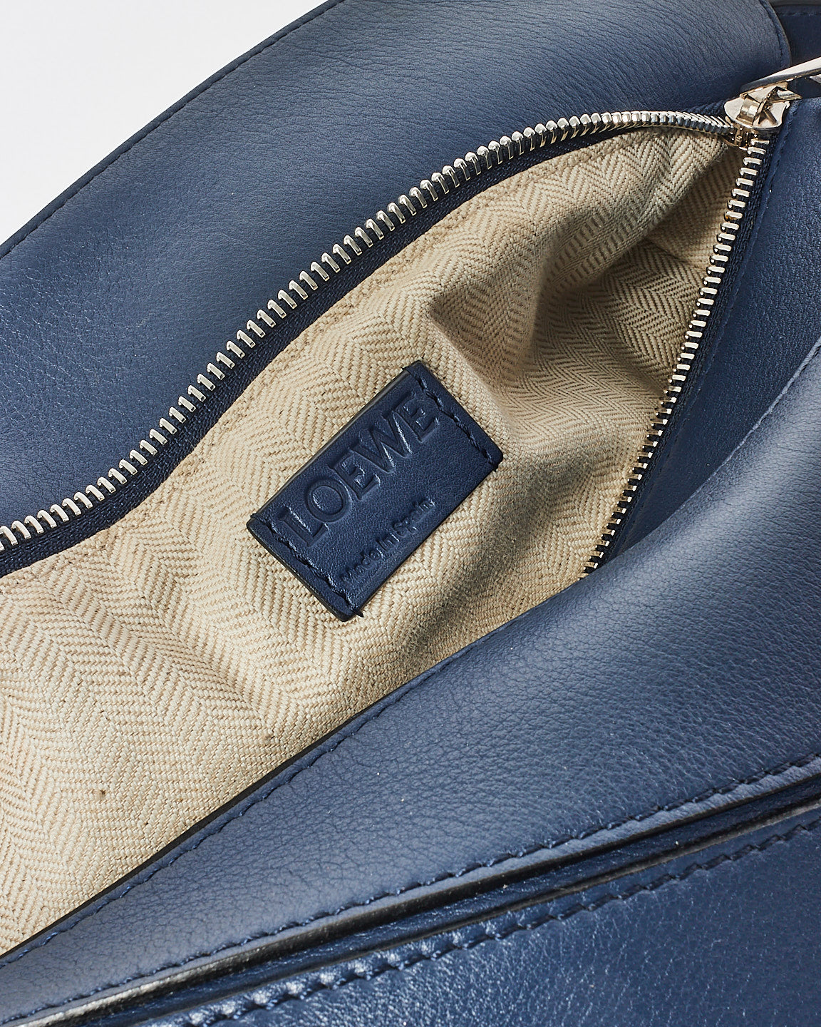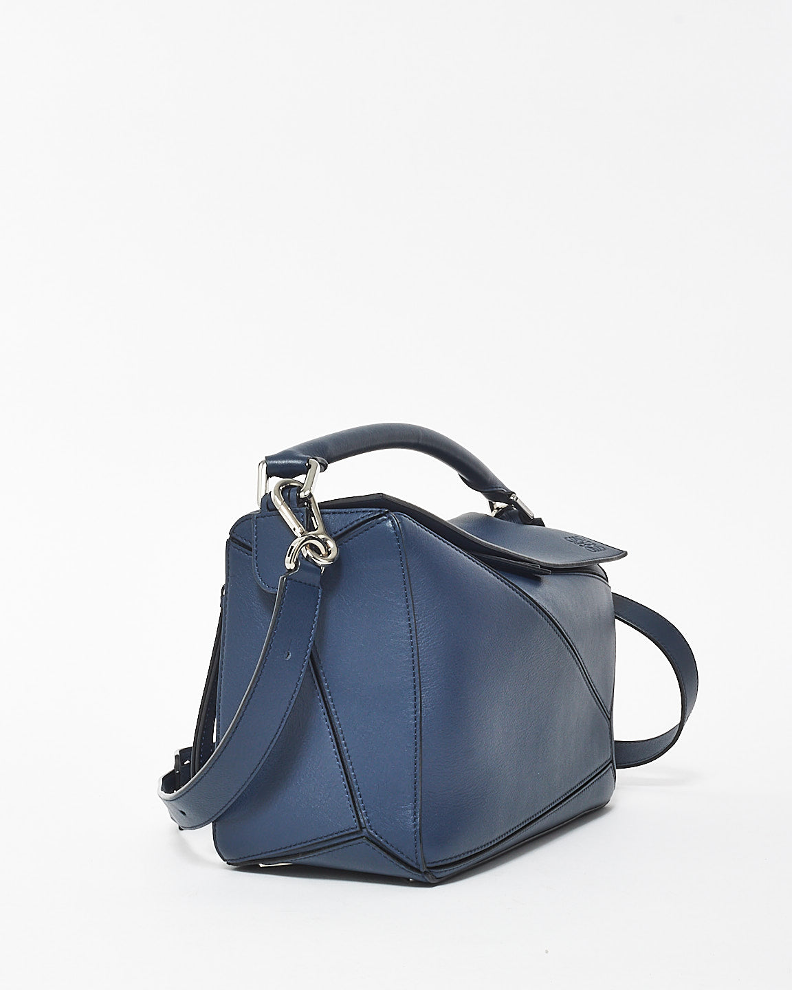 Explore Loewe's exquisite collection of handbags, featuring this certified pre-owned Navy Blue Leather Medium (Classic) Puzzle Bag. Embodying timeless elegance and modern sustainability, each piece, including favorites like this, is authenticated by Retyche. Discover sustainable luxury — shop our current treasures or find inspiration for your next coveted find.