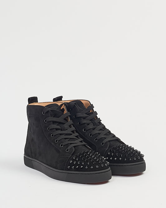 Louboutin Black Suede Lou Spike High Top Sneakers - 45