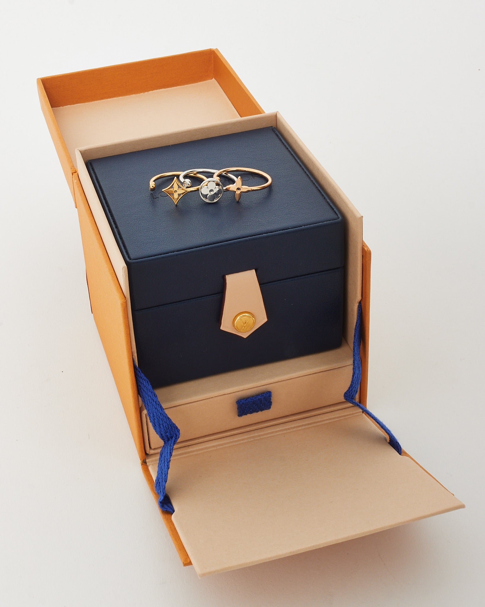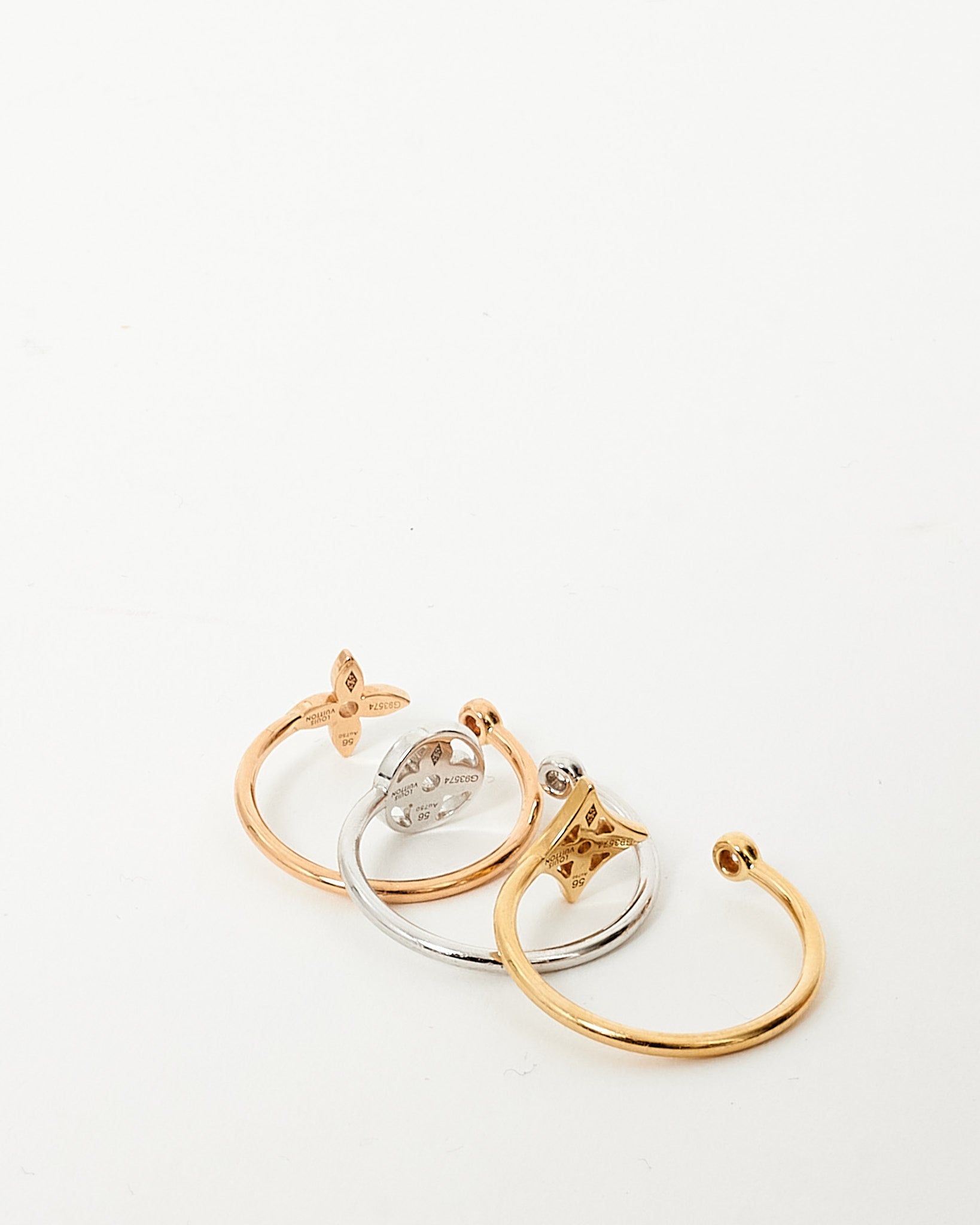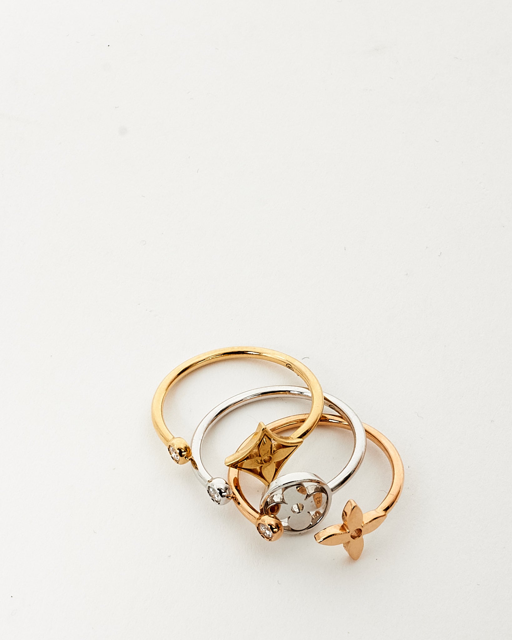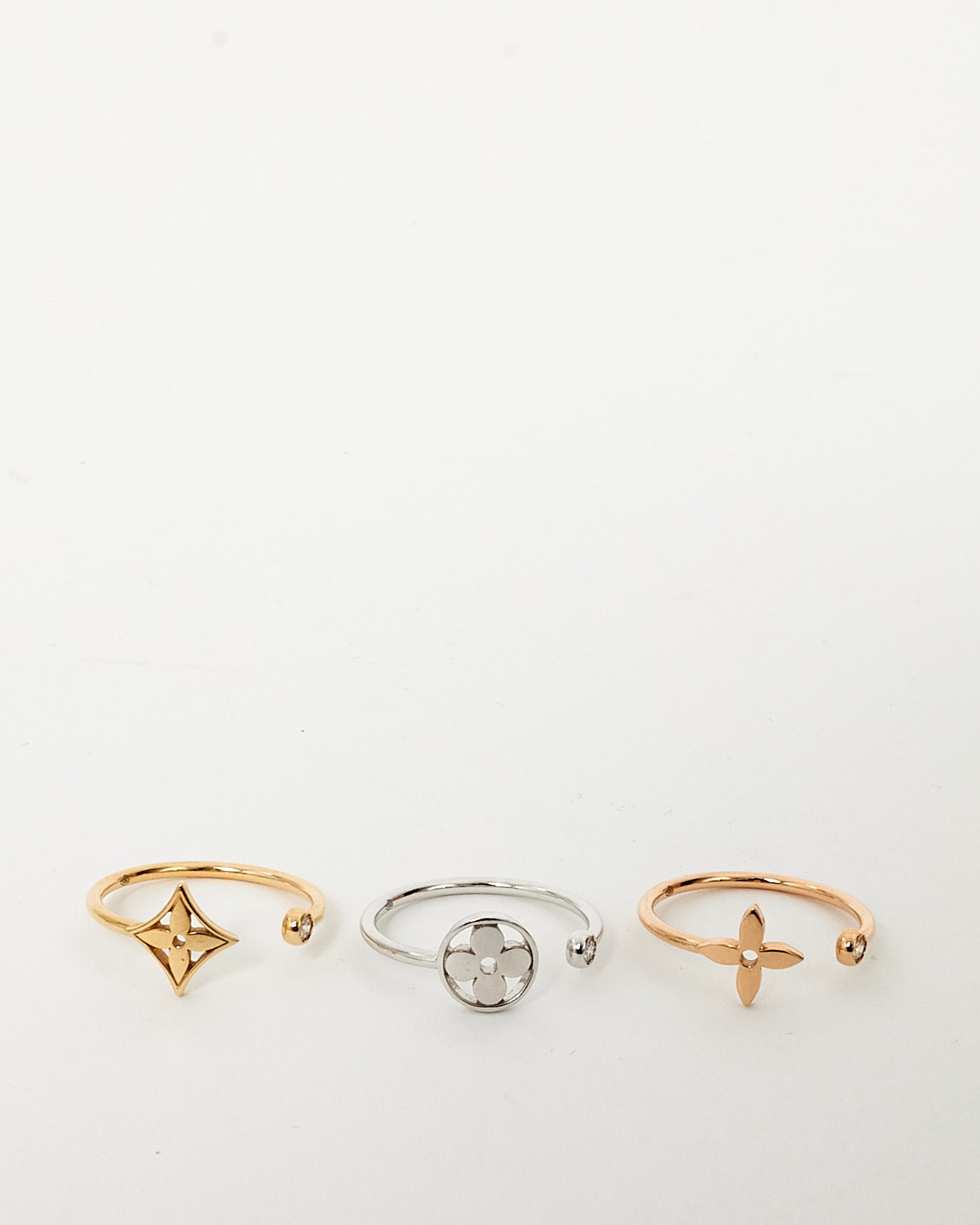 A delicate emblem of elegance and craftsmanship, this pre-loved authentic Louis Vuitton Idylle Blossom Ring features an exquisite tri-tone design in 18k rose, yellow, and white gold. Adorned with a brilliant diamond accent, the iconic LV Monogram Flower motif is reimagined in a graceful, modern silhouette. Perfect for stacking or wearing solo, this refined piece effortlessly bridges timeless heritage with contemporary sophistication. A radiant jewel for the discerning collector.