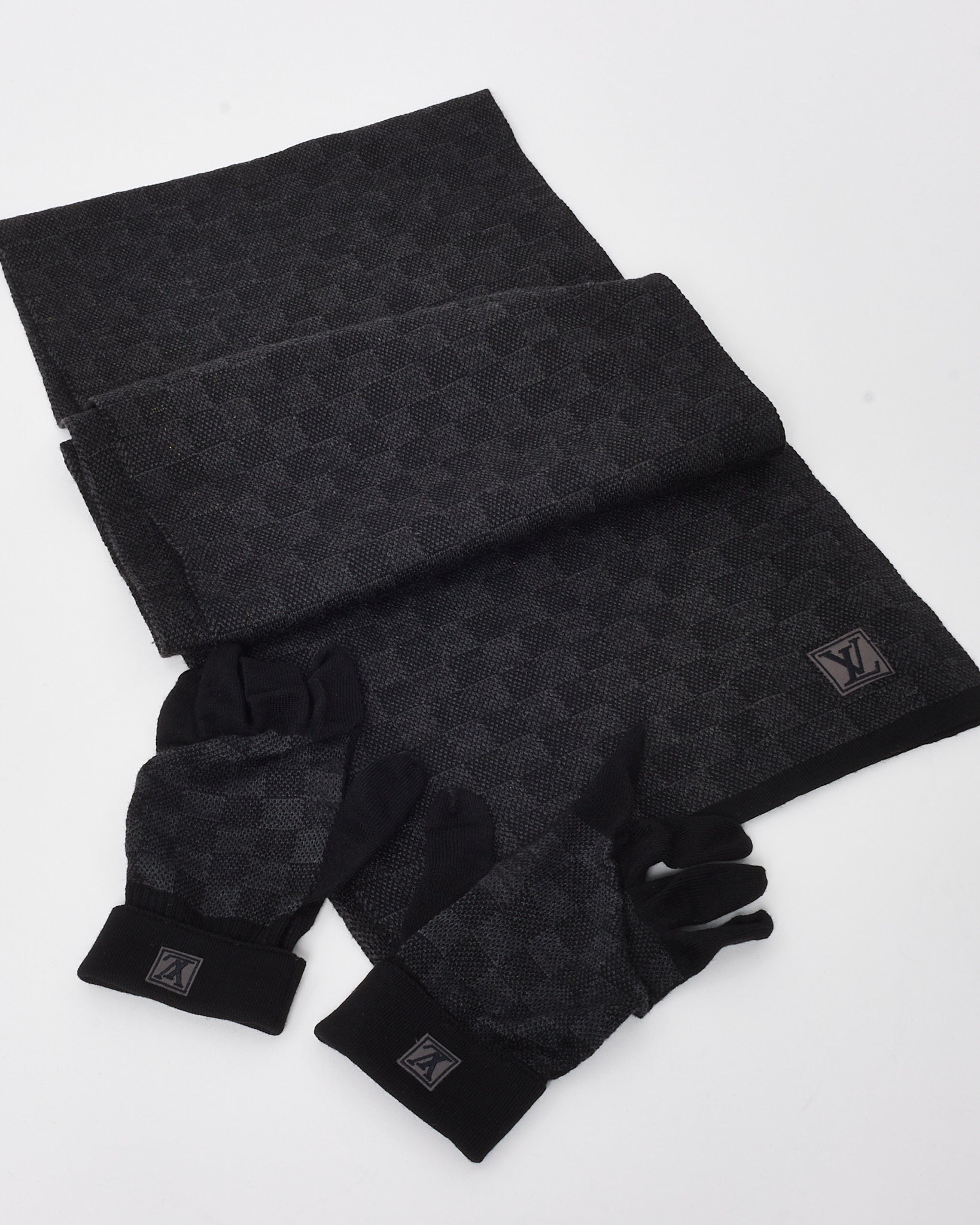Wrap yourself in luxury with this pre-loved authentic Louis Vuitton Damier scarf and gloves set. Crafted from soft wool in classic black and grey, the scarf features the iconic Damier check pattern and discreet Louis Vuitton branding for timeless appeal. The matching gloves offer warmth and sophistication with a snug, comfortable fit. Ideal for gifting or elevating your cold-weather style, this set combines elegance and practicality in signature Louis Vuitton fashion.