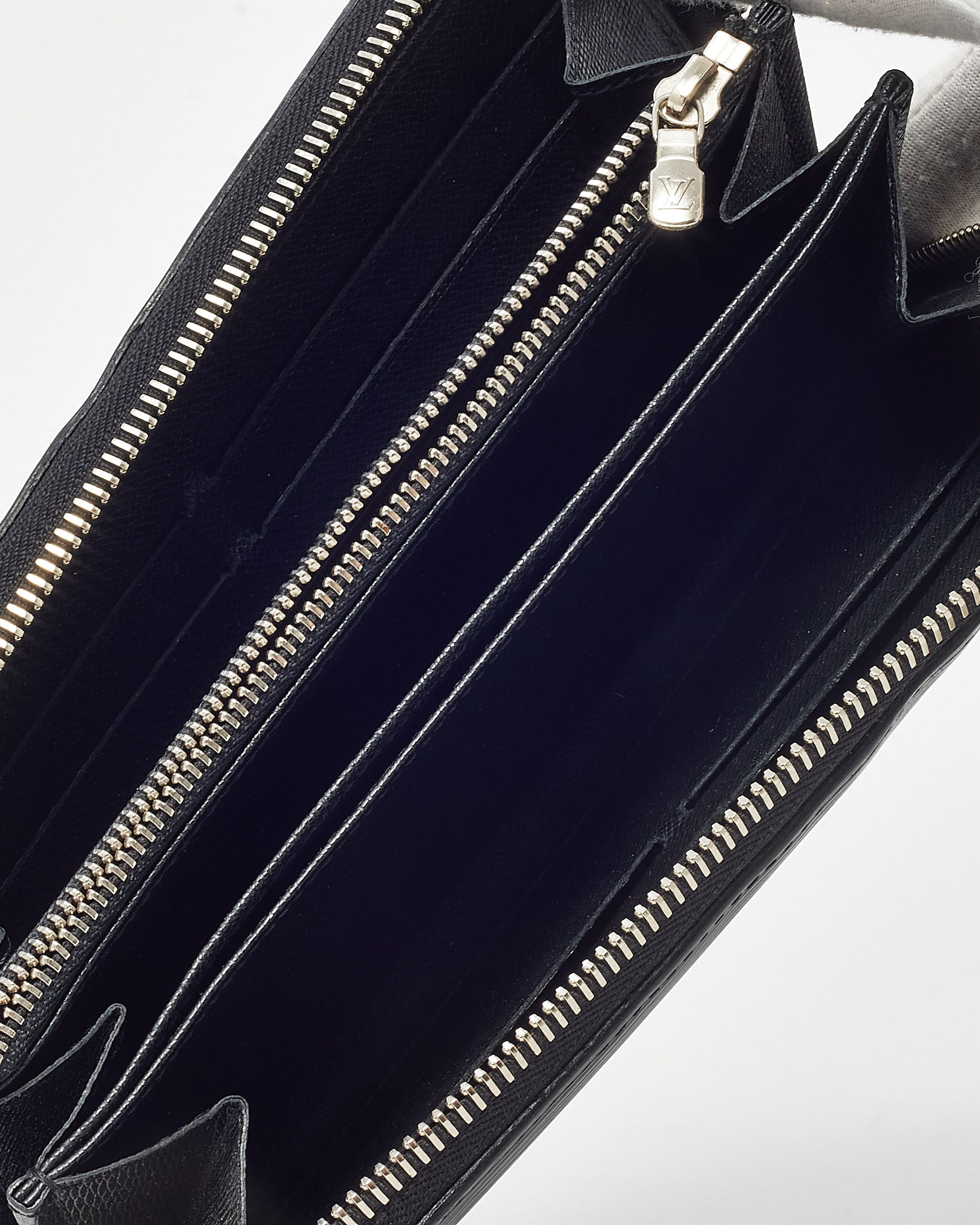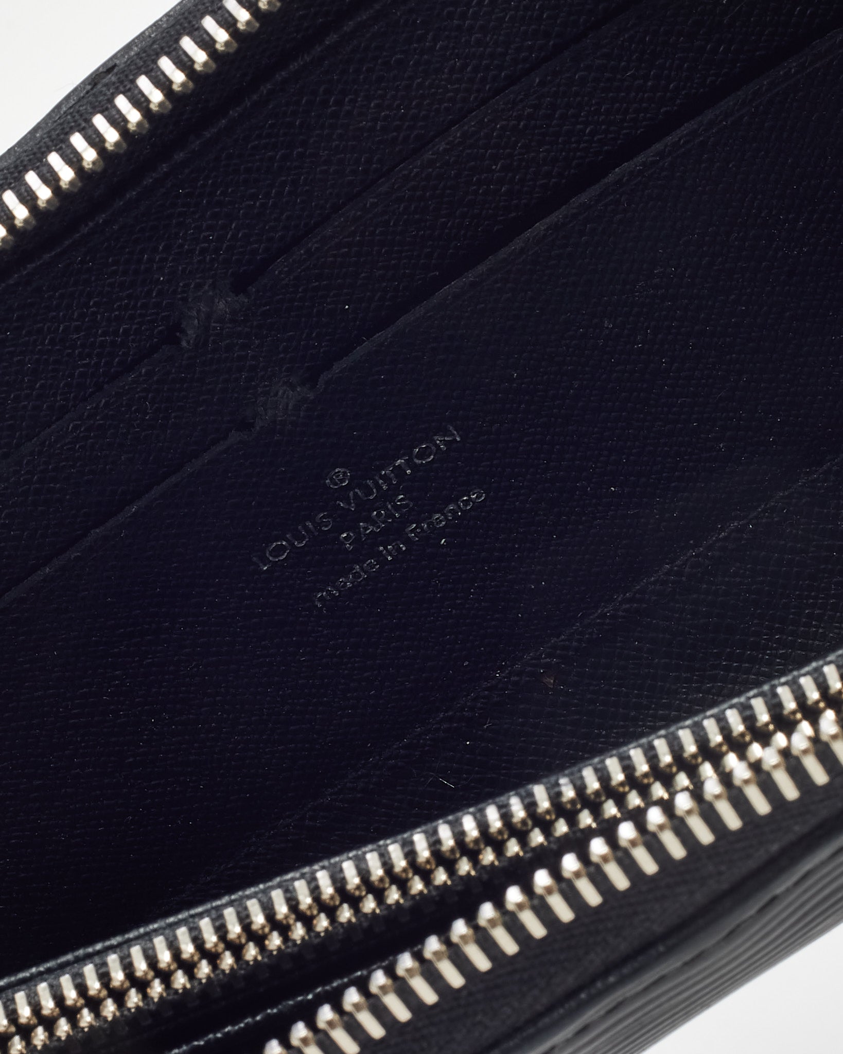 Elevate your everyday essentials with this pre-loved authentic Louis Vuitton Zippy Wallet in signature black Epi leather. Known for its durability and discreet elegance, the textured leather exterior is paired with silver-tone hardware and a secure zip-around closure. Inside, multiple card slots, compartments, and a zippered coin pocket offer functional organization. Timeless and refined, this wallet is the perfect blend of luxury and practicality for daily use or travel.