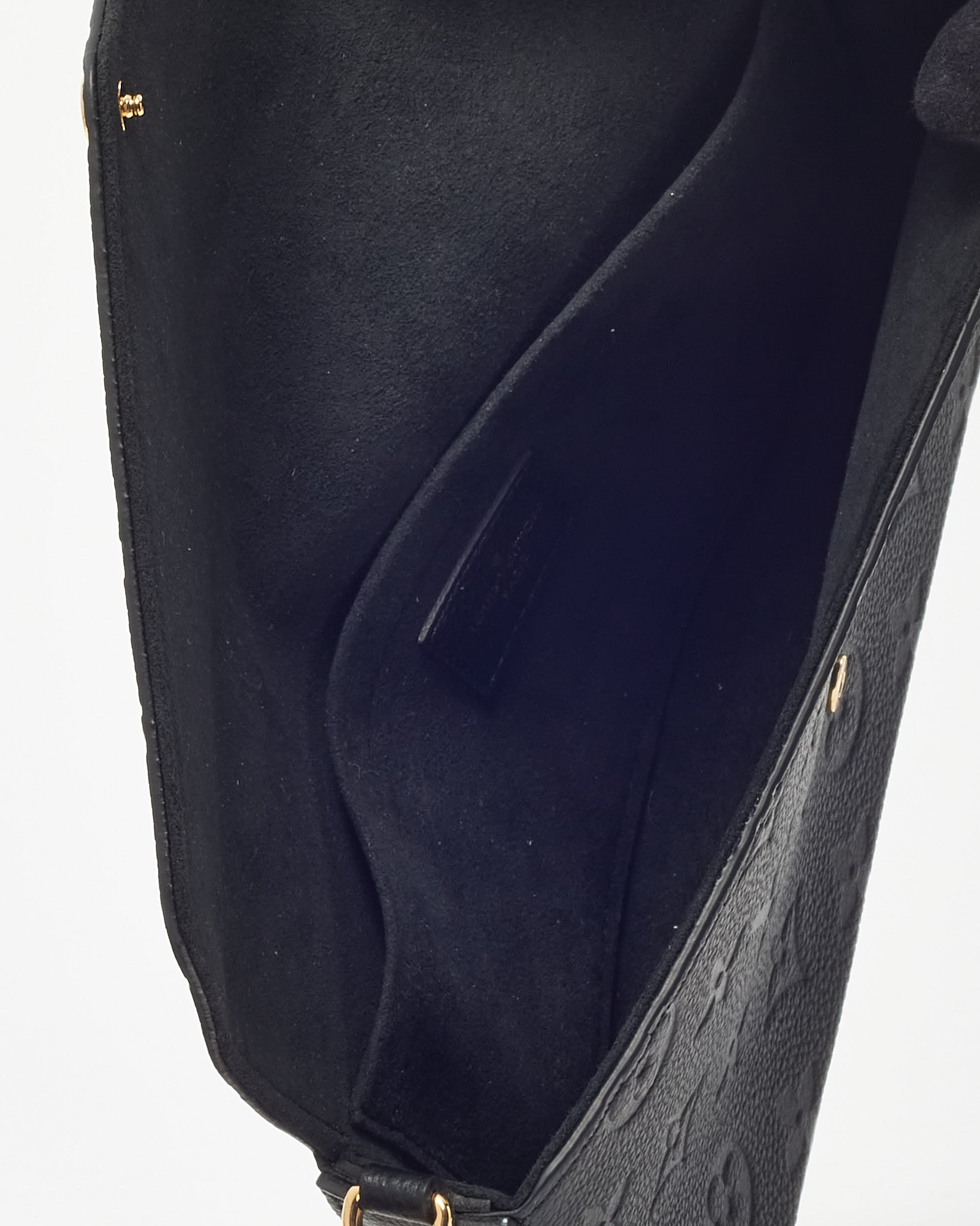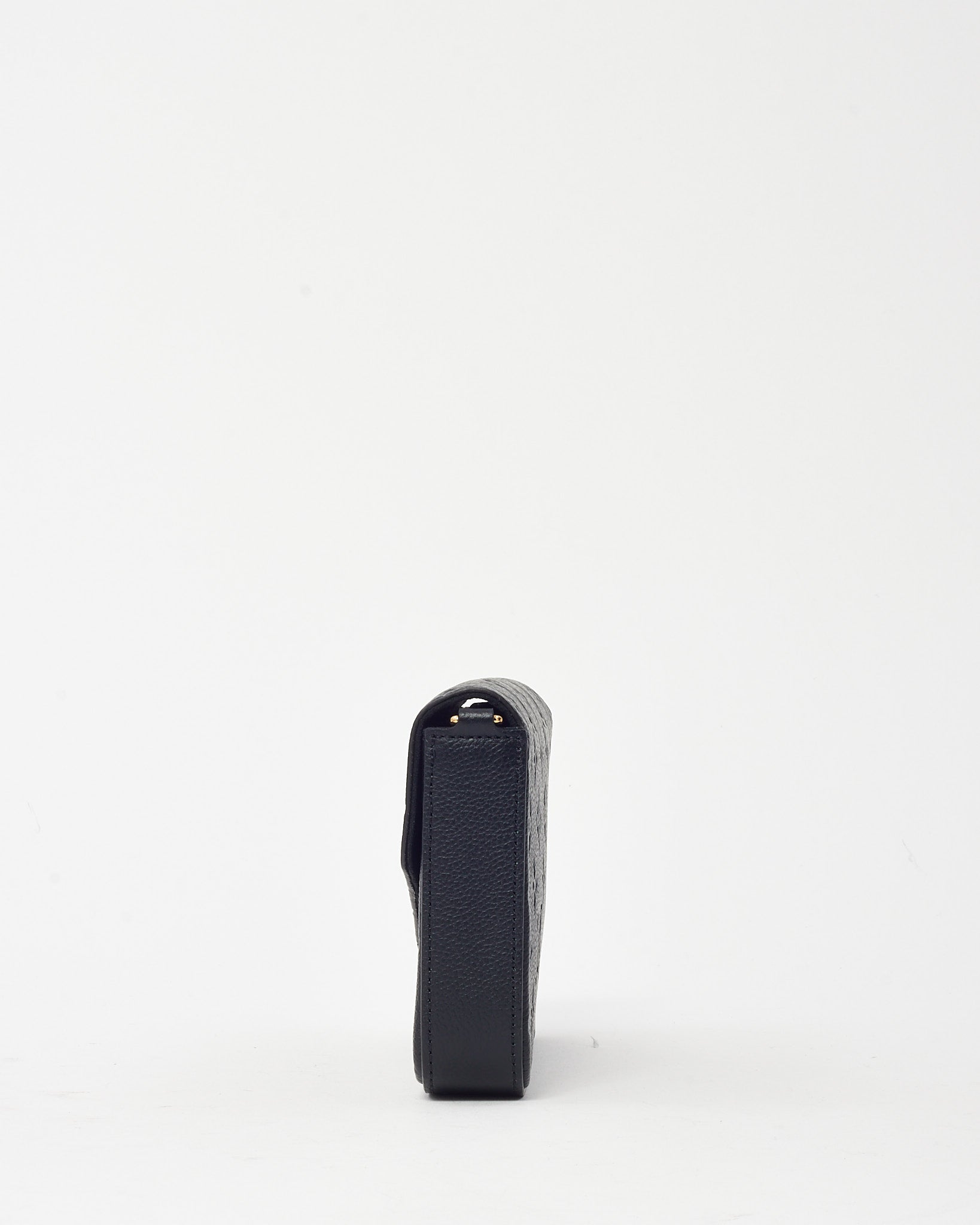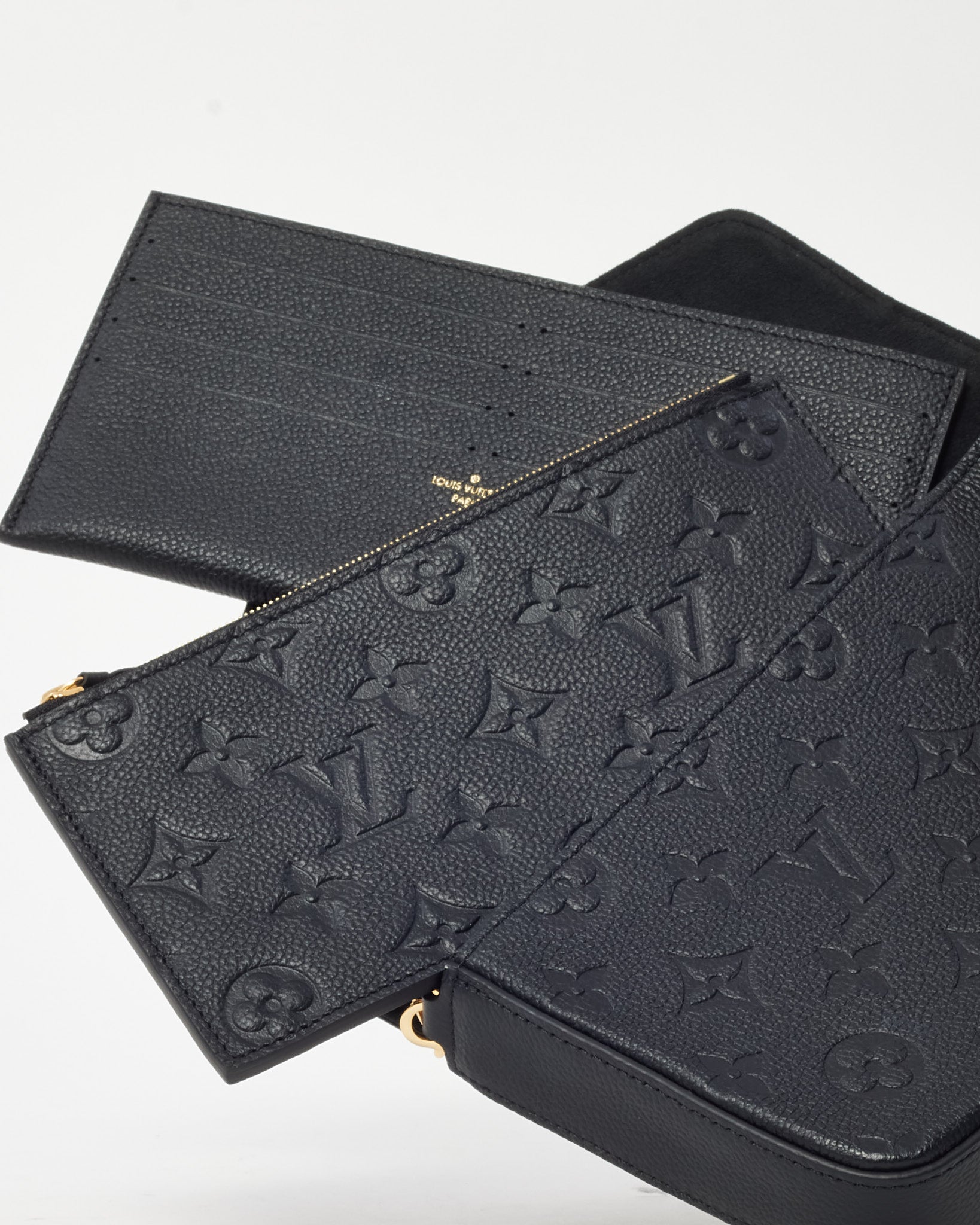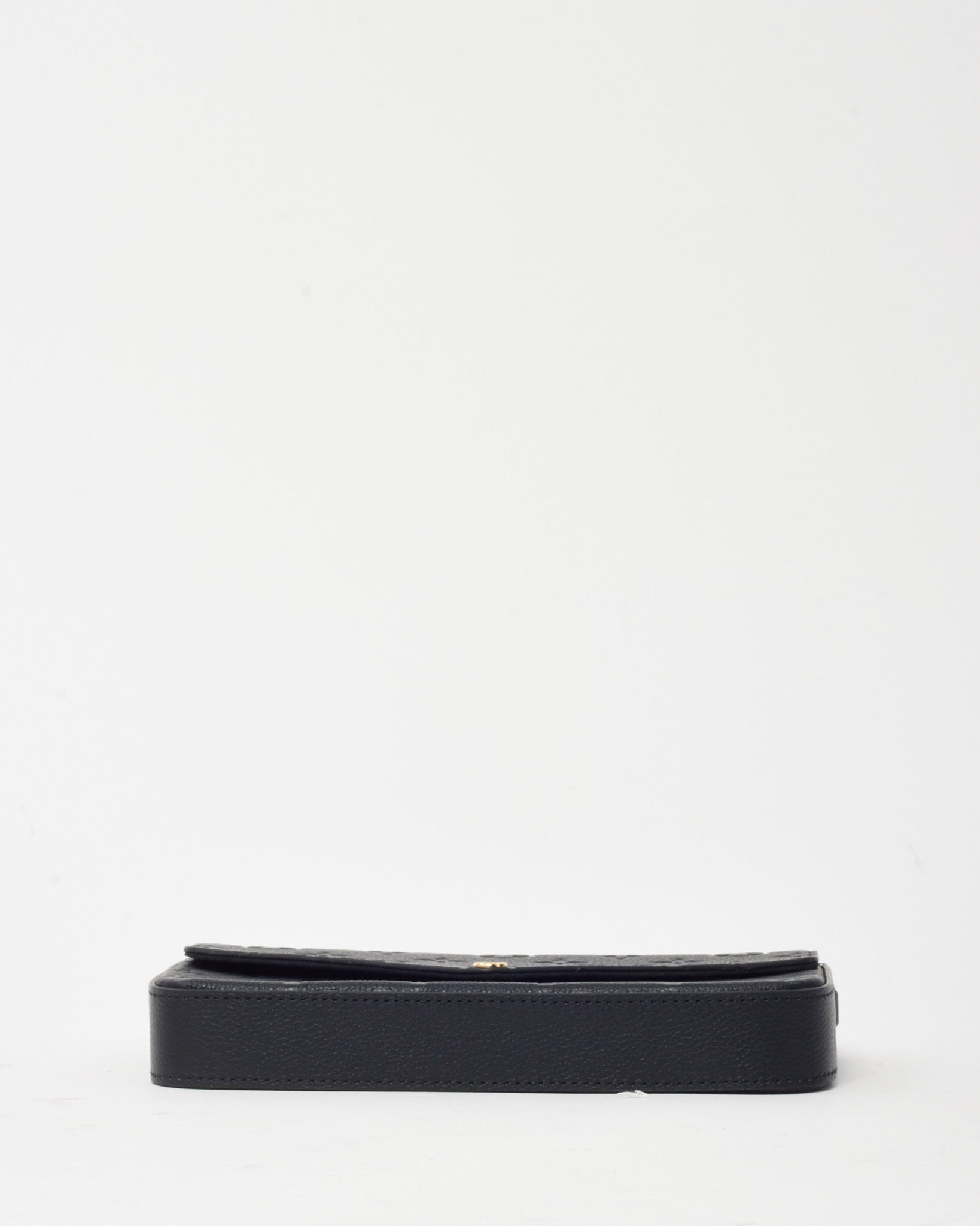 Refined and versatile, this pre-loved authentic Louis Vuitton Felicie Pochette is crafted in luxurious black Monogram Empreinte leather with embossed LV motifs for a subtle yet distinctive look. Designed with a sleek envelope silhouette, it features a gold-tone snap closure, removable chain strap, and practical interior inserts for cards and essentials. Perfect as a chic crossbody or clutch, this compact bag transitions seamlessly from day to night, offering both timeless style and everyday function.
