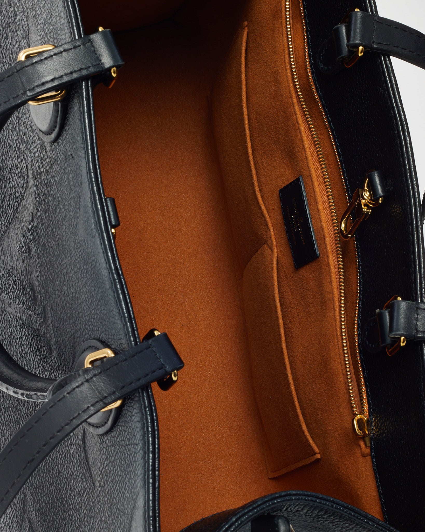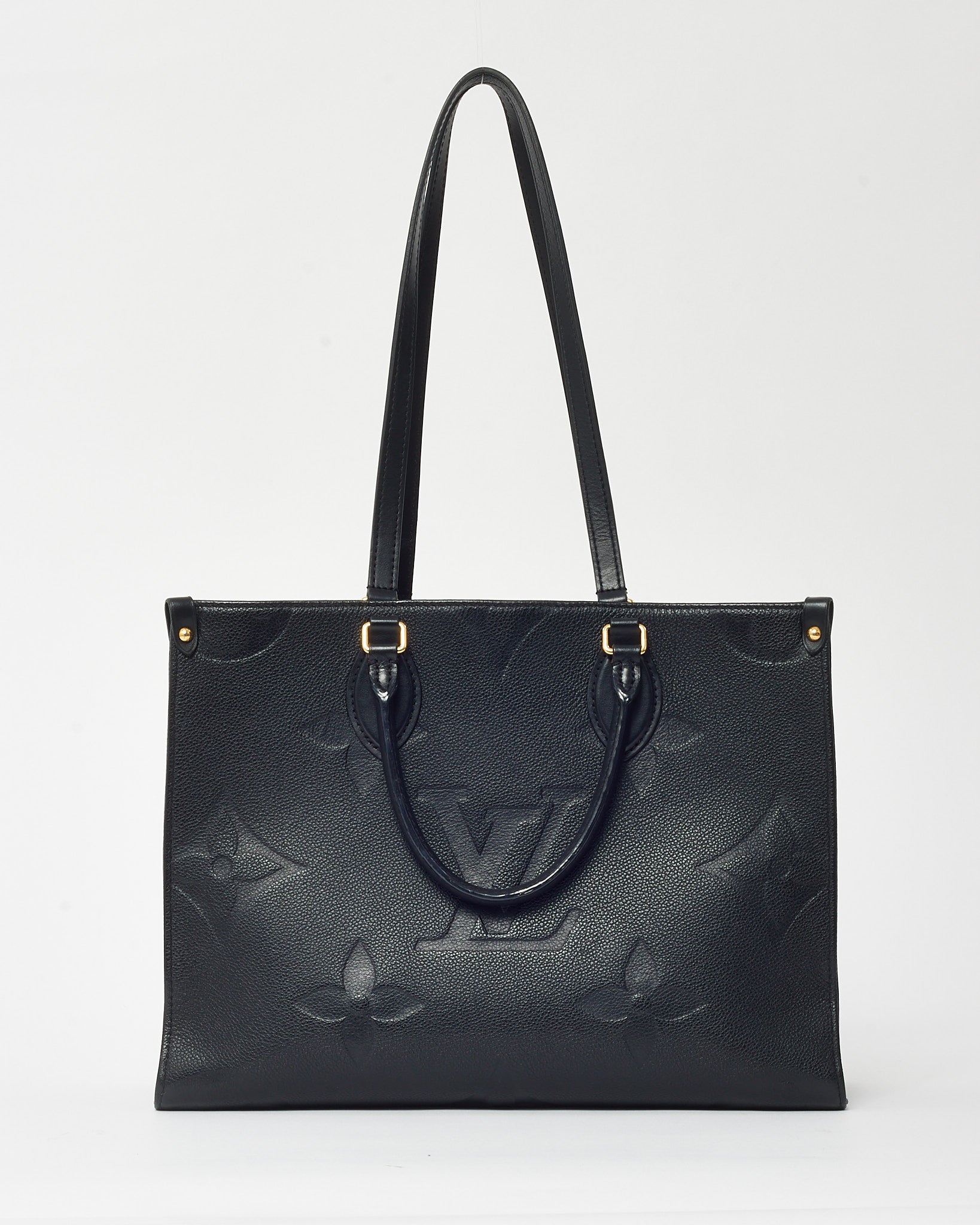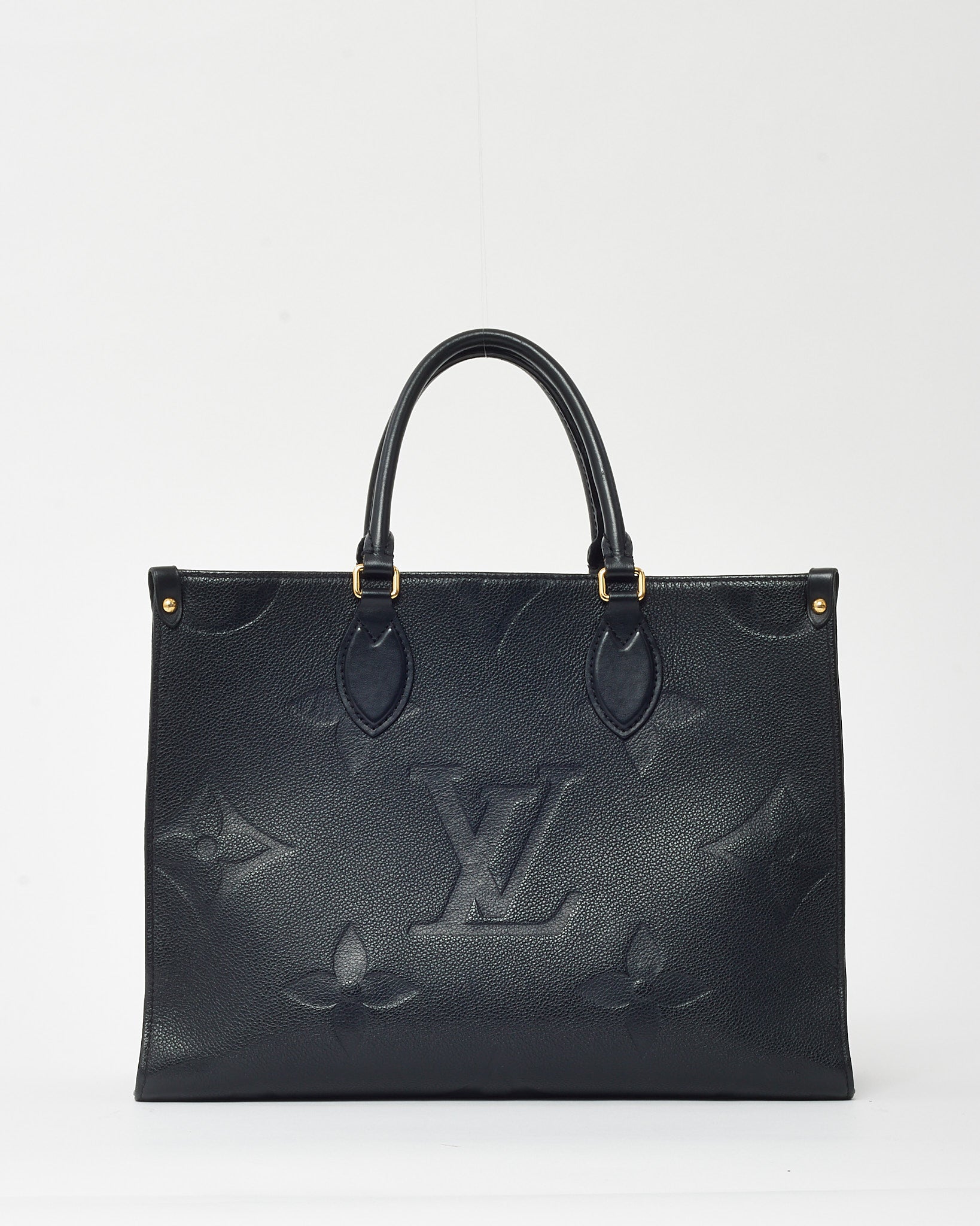 Add refined structure to your wardrobe with this pre-loved authentic Louis Vuitton Black Monogram Empreinte Leather OnTheGo MM Bag. Crafted from soft, grained leather embossed with the oversized Monogram pattern, this versatile tote balances elegance with everyday practicality. Dual top handles and long shoulder straps offer multiple carrying options, while the spacious interior easily accommodates your daily essentials. Finished with gold-tone hardware and a structured silhouette, it’s a timeless companion for workdays, travel, or polished weekend looks.