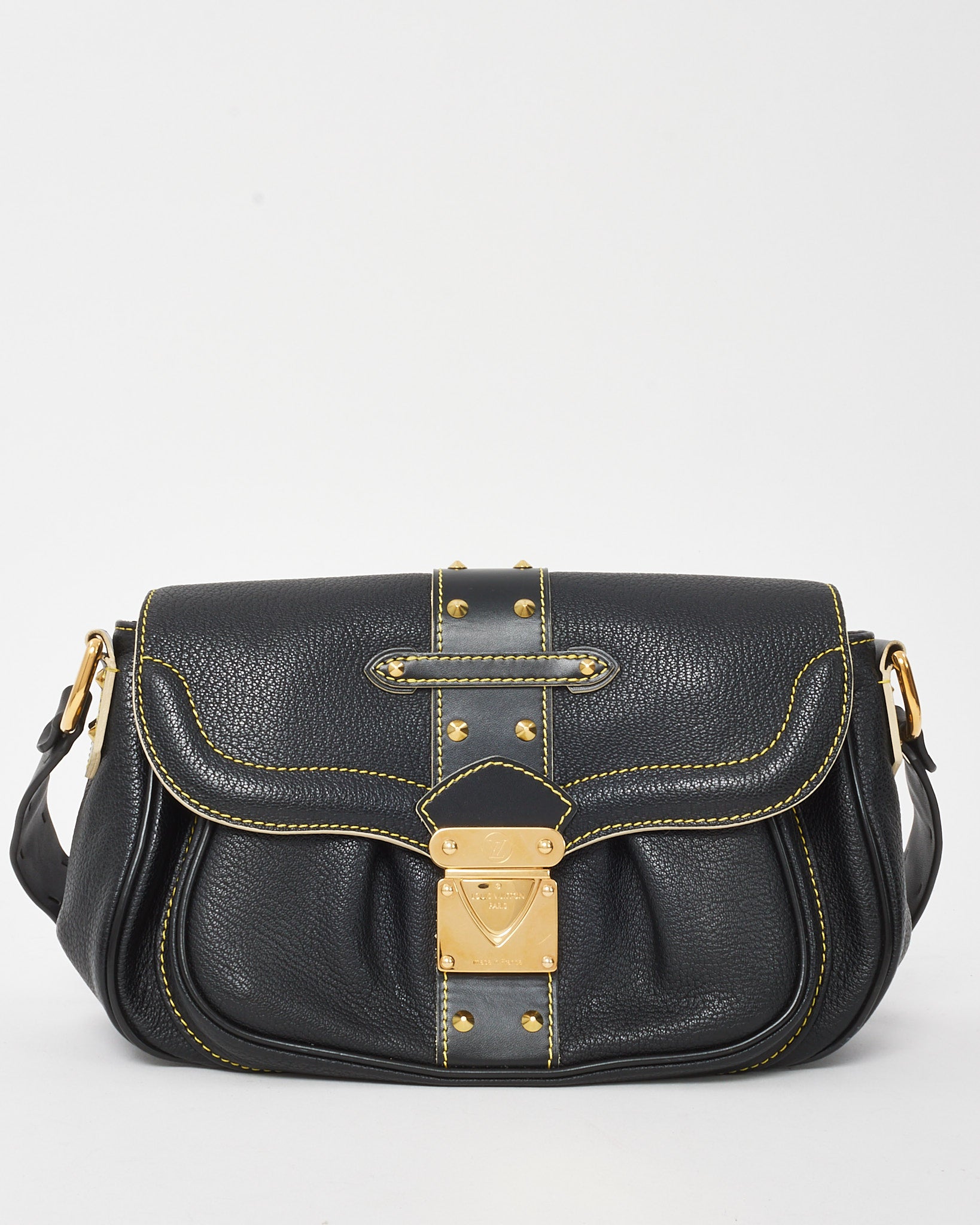 Distinctively elegant, this pre-owned authentic Louis Vuitton Le Confident Shoulder Bag is crafted from smooth black Suhali leather, a rare and luxurious calfskin known for its durability and refined texture. Accented with polished gold-tone hardware and meticulous contrast stitching, the structured silhouette is compact yet statement-making.