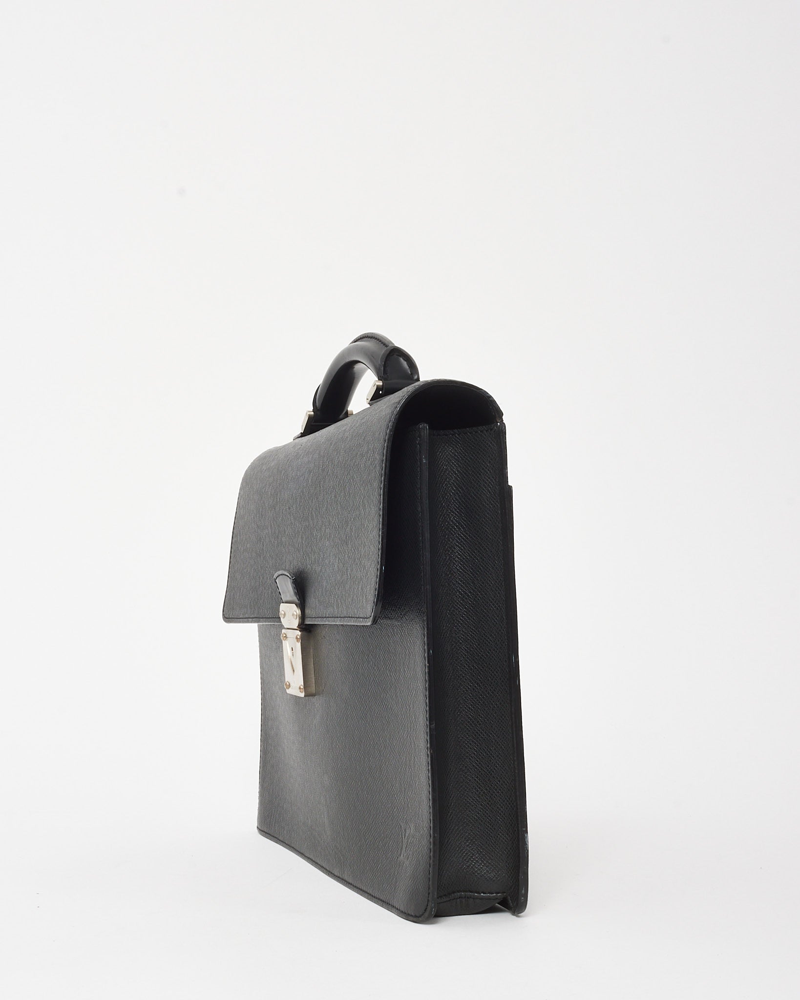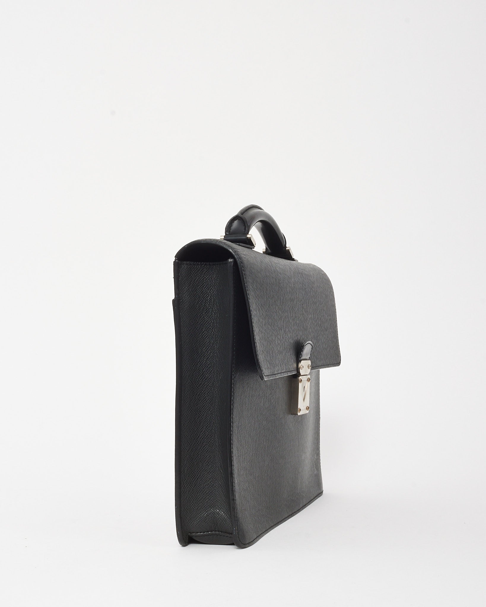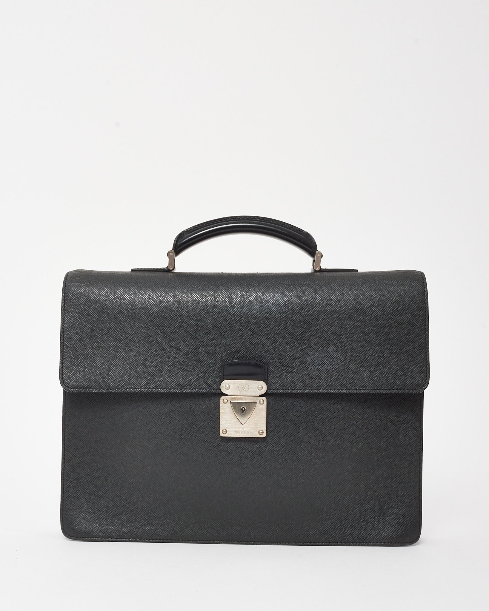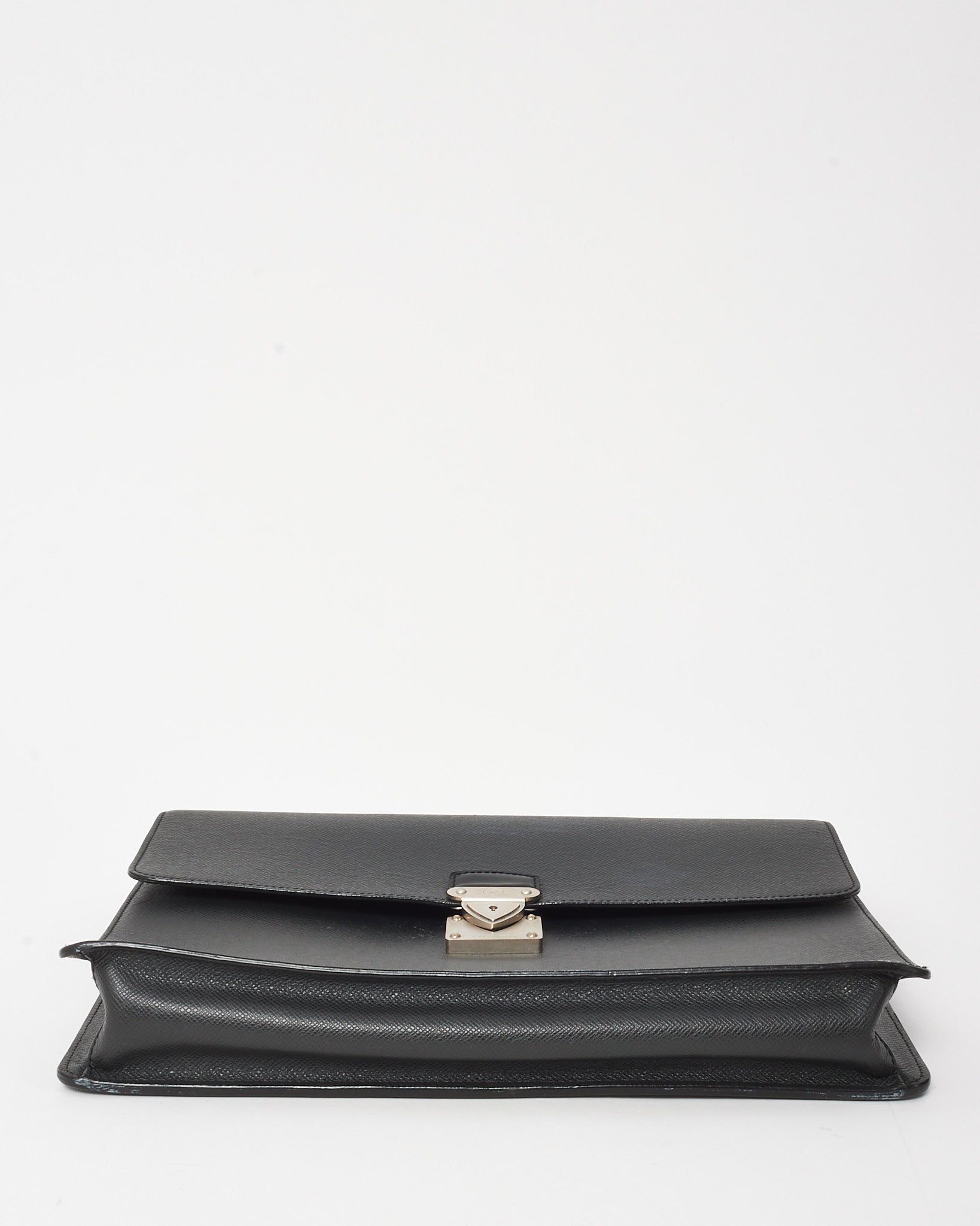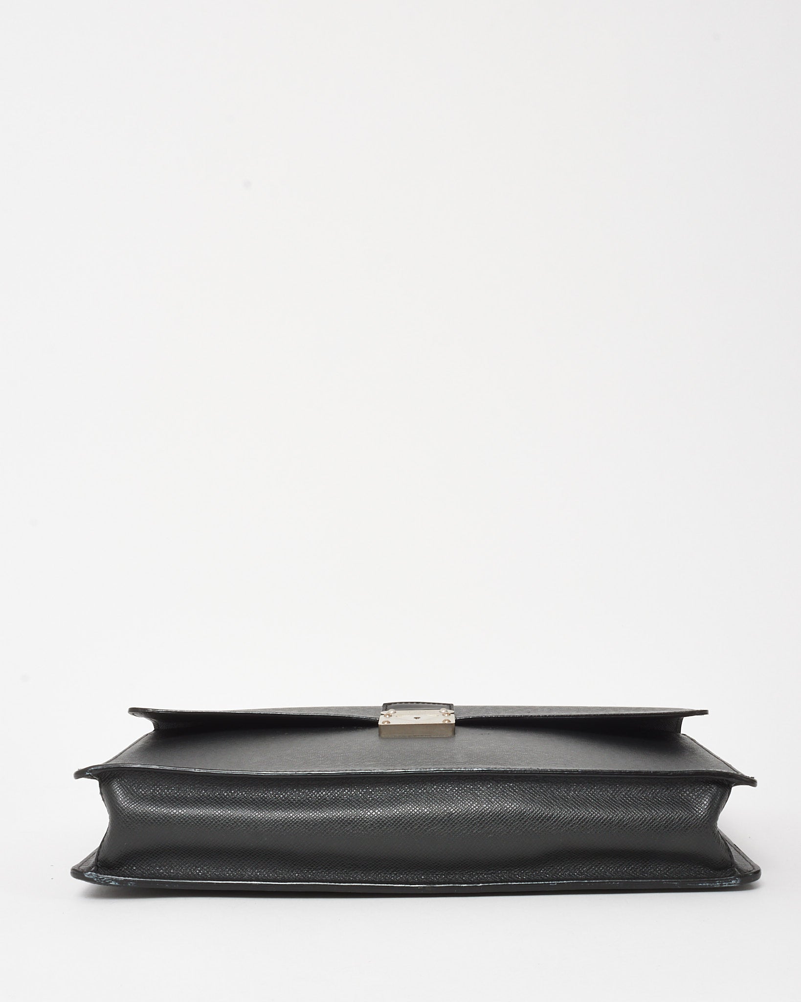 Sleek and sophisticated, this pre-owned authentic Louis Vuitton Robusto 1 Briefcase is crafted from durable black Taiga leather with a structured silhouette and refined silver-tone hardware. Designed for professional elegance, it features a top handle, flap front with a push-lock closure, and a well-organized interior with multiple compartments and slip pockets.
