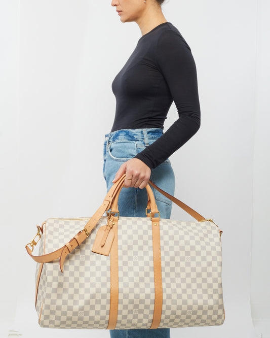 Damier Azur Keepall 55 Bandouliere Duffle Bag