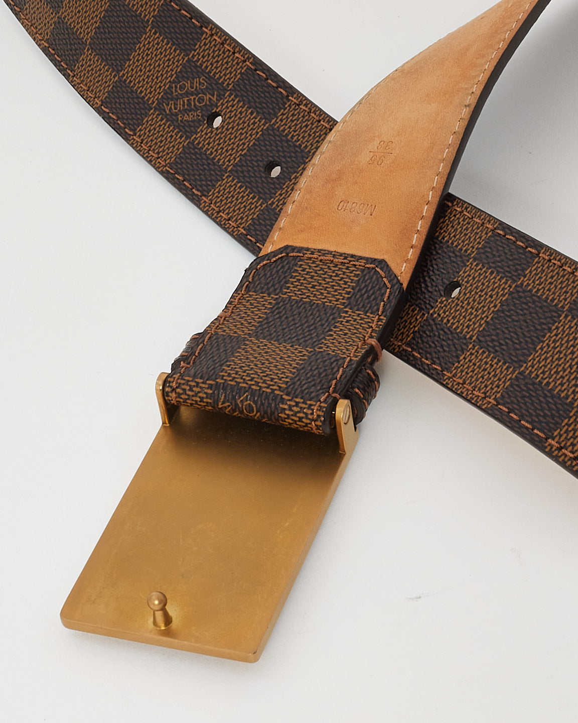 Damier Ebene Brushed Gold Plate Inventeur Belt - 95/38
