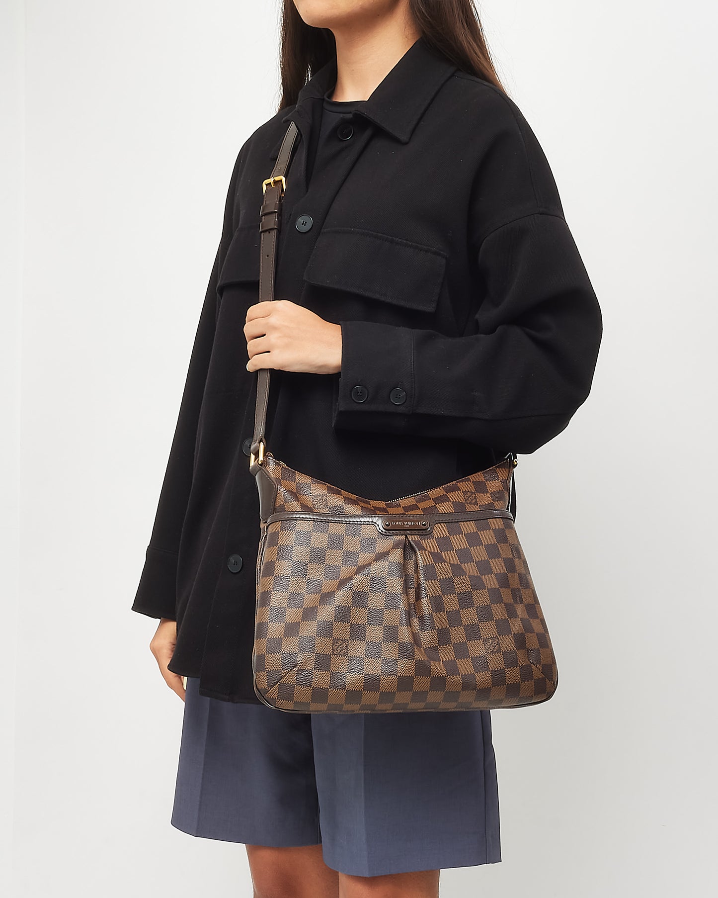 Chic and practical, this pre-loved authentic Louis Vuitton Bloomsbury PM Crossbody Bag is crafted from iconic Damier Ebene coated canvas with smooth brown leather trim and gold-tone hardware. The pleated front design adds a feminine touch, while the adjustable strap ensures hands-free ease.