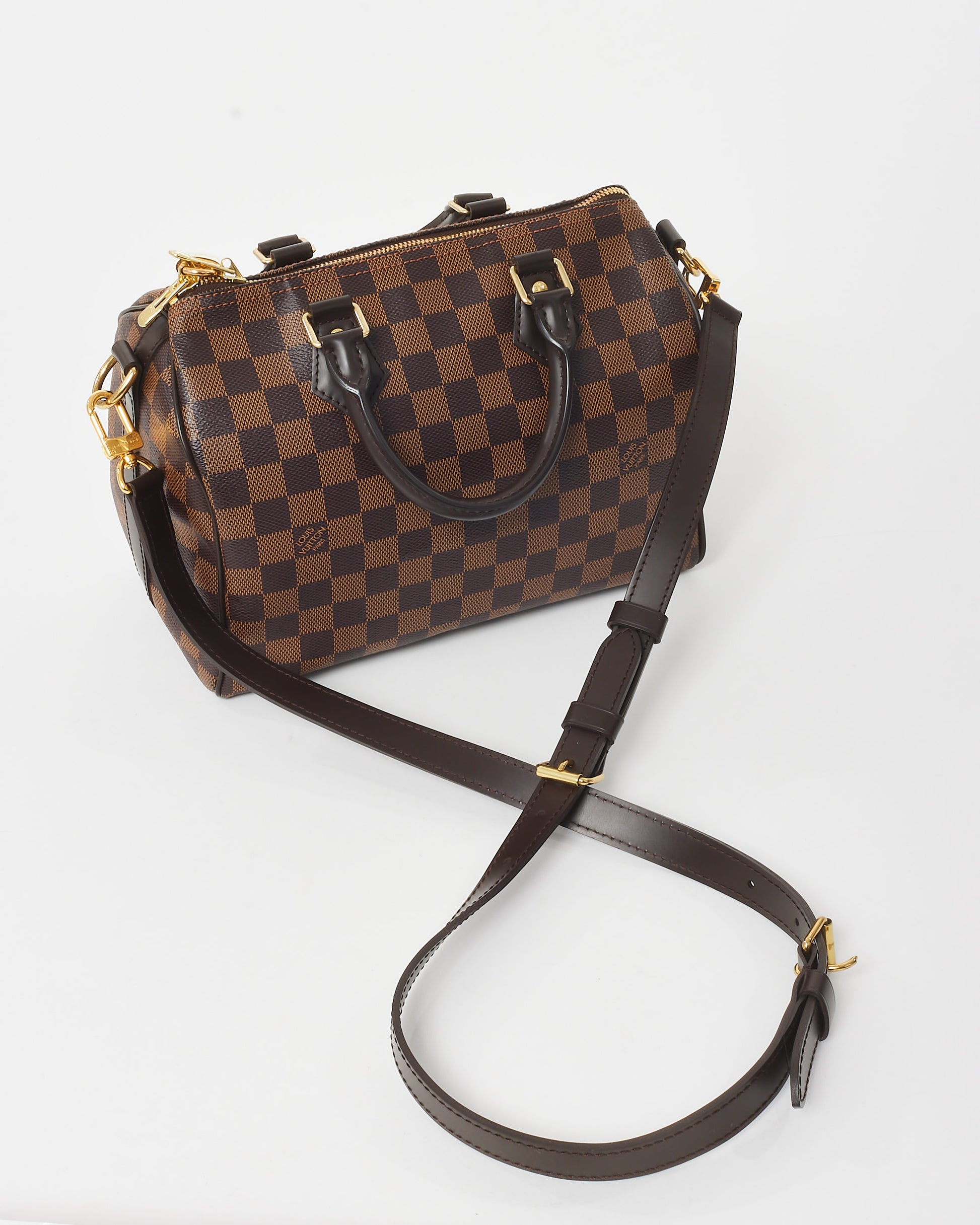 A timeless icon with a modern twist, the pre-owned authentic Louis Vuitton Damier Ebene Canvas Speedy Bandoulière 25 is the perfect blend of elegance, versatility, and practicality. Crafted from signature Damier Ebene coated canvas, this compact yet spacious handbag features a structured silhouette, making it an essential for effortless everyday luxury.