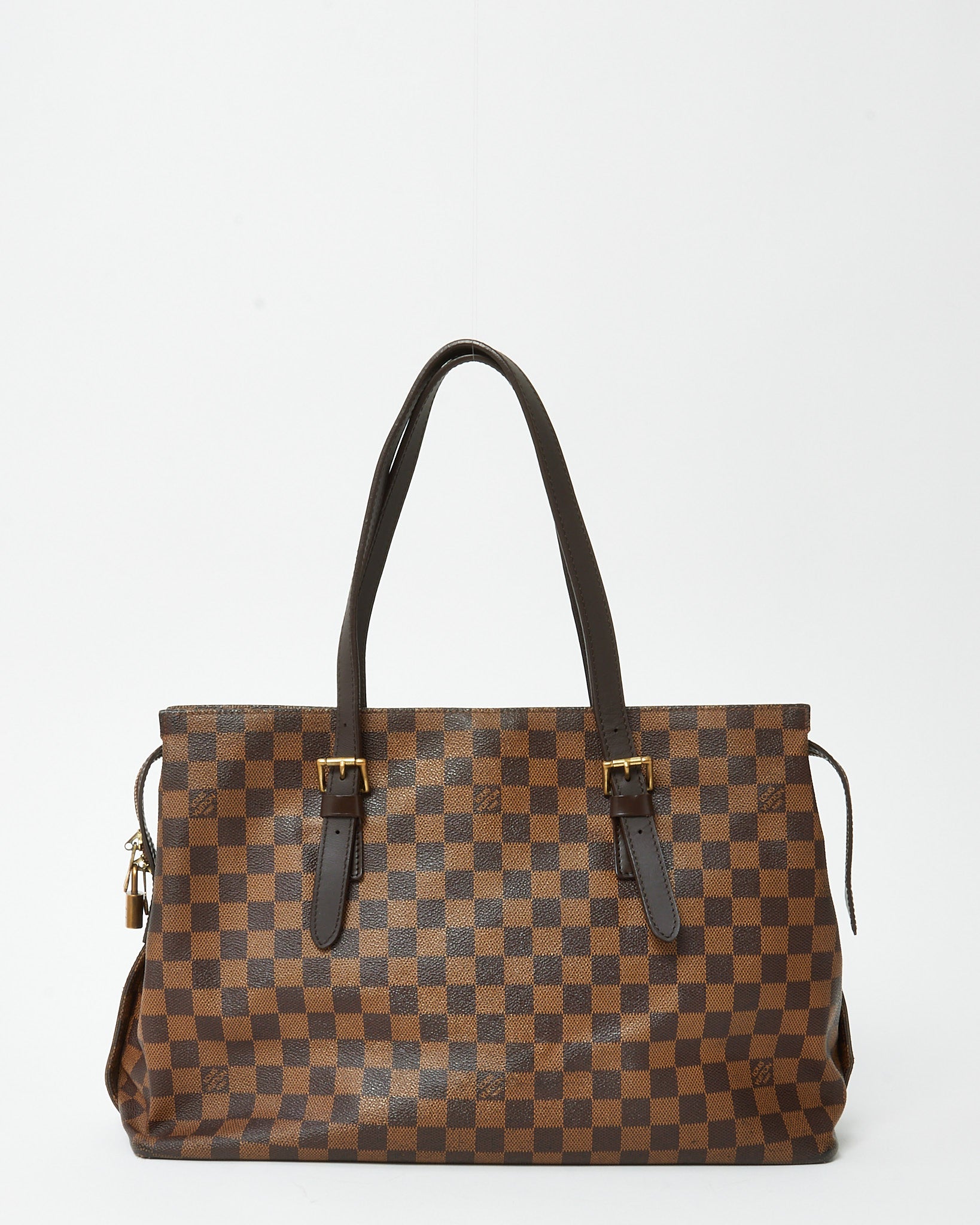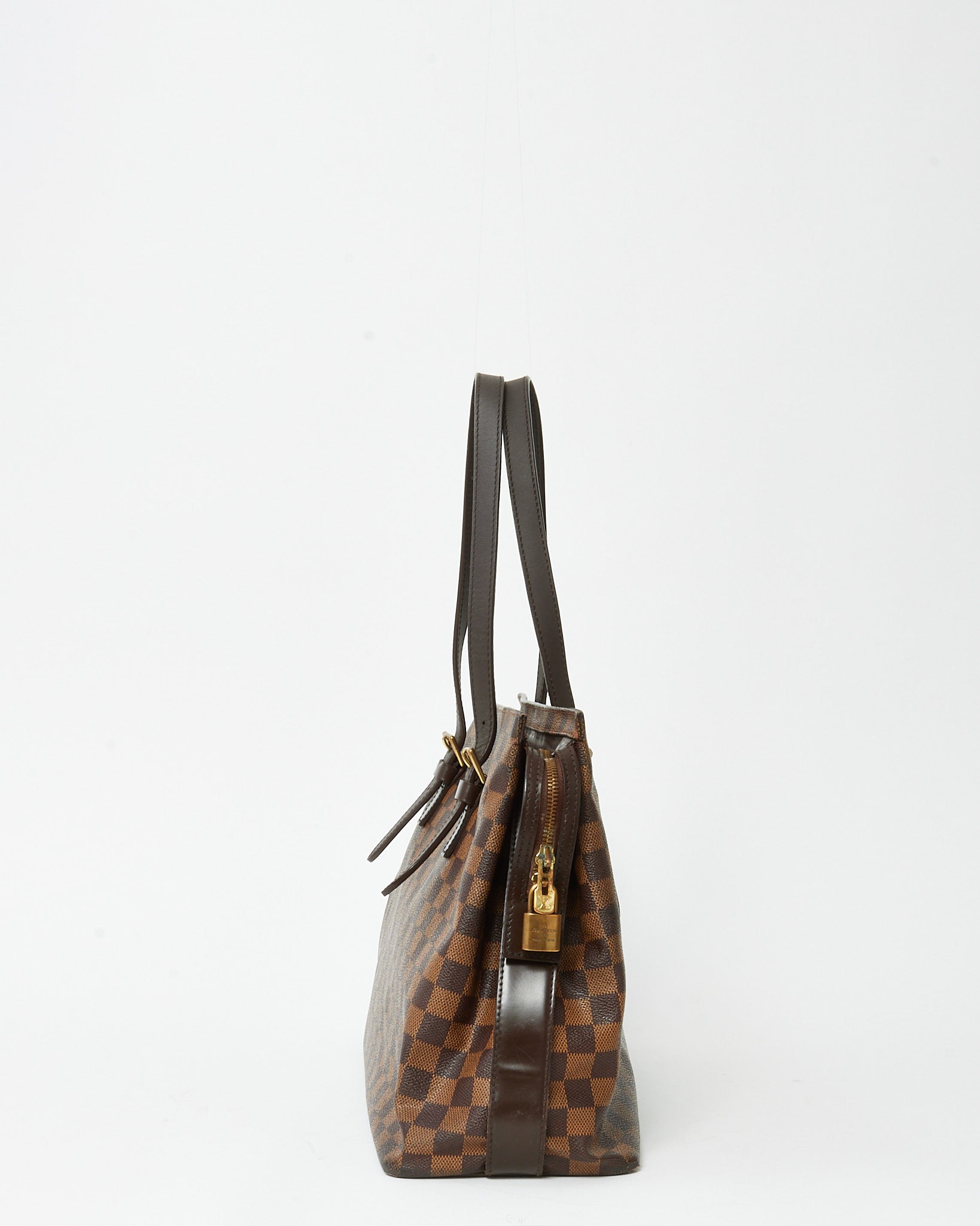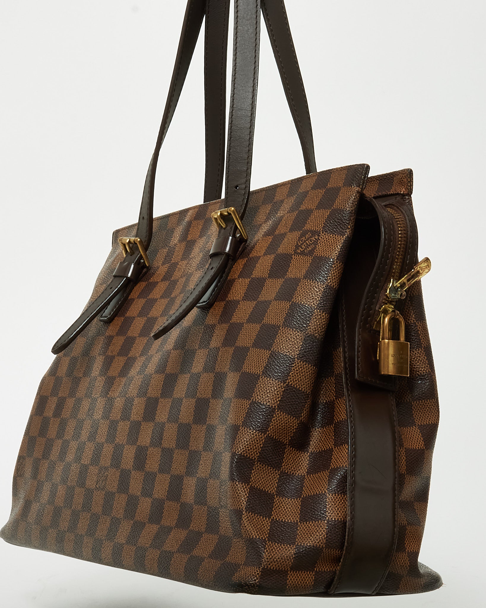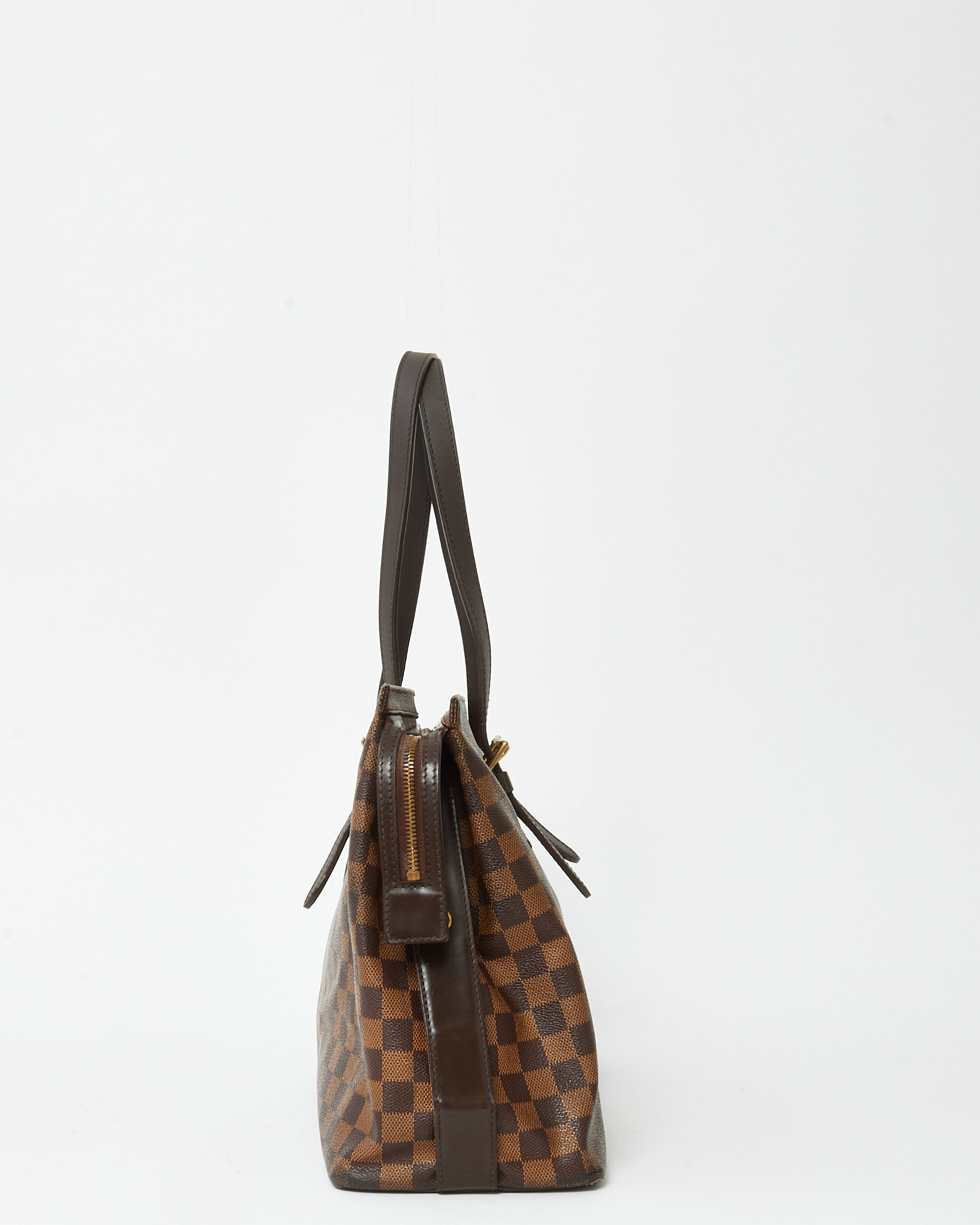 Carry timeless Louis Vuitton elegance with this pre-loved authentic Louis Vuitton Damier Ebene Coated Canvas Chelsea Tote Bag, crafted in the house’s iconic Damier Ebene coated canvas with rich brown leather trim. Designed with a sleek, structured silhouette, this classic tote features long shoulder straps for comfortable wear and polished gold-tone hardware that complements the signature checkerboard pattern. The spacious interior offers ample room for everyday essentials, making it ideal for work, travel, or daily errands. A sophisticated Louis Vuitton tote that combines heritage craftsmanship, practicality, and enduring designer style.