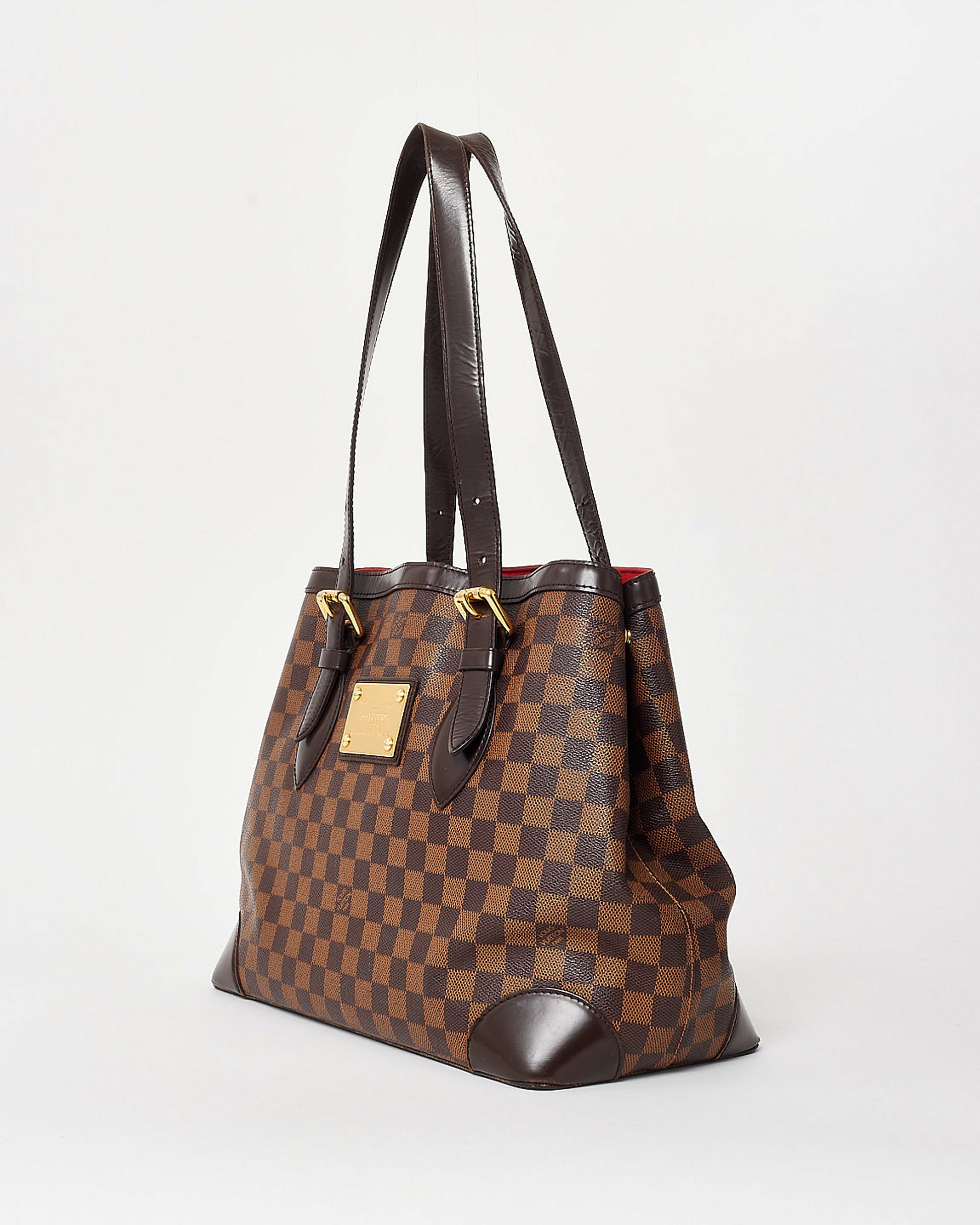 Shop this authentic pre-owned Louis Vuitton Damier Ebene Coated Canvas Hampstead Shoulder Bag is a timeless and versatile accessory that blends practicality with classic Louis Vuitton style. With its spacious design and iconic Damier Ebene pattern, this bag is perfect for both everyday use and special occasions. Crafted from durable Damier Ebene coated canvas accented with smooth chocolate-brown leather trim and gold-tone hardware for a polished finish. Embellished with a gold-tone Louis Vuitton nameplate on the front, adding a touch of luxury. Shop pre-owned authentic Louis Vuitton bags at Retyche.