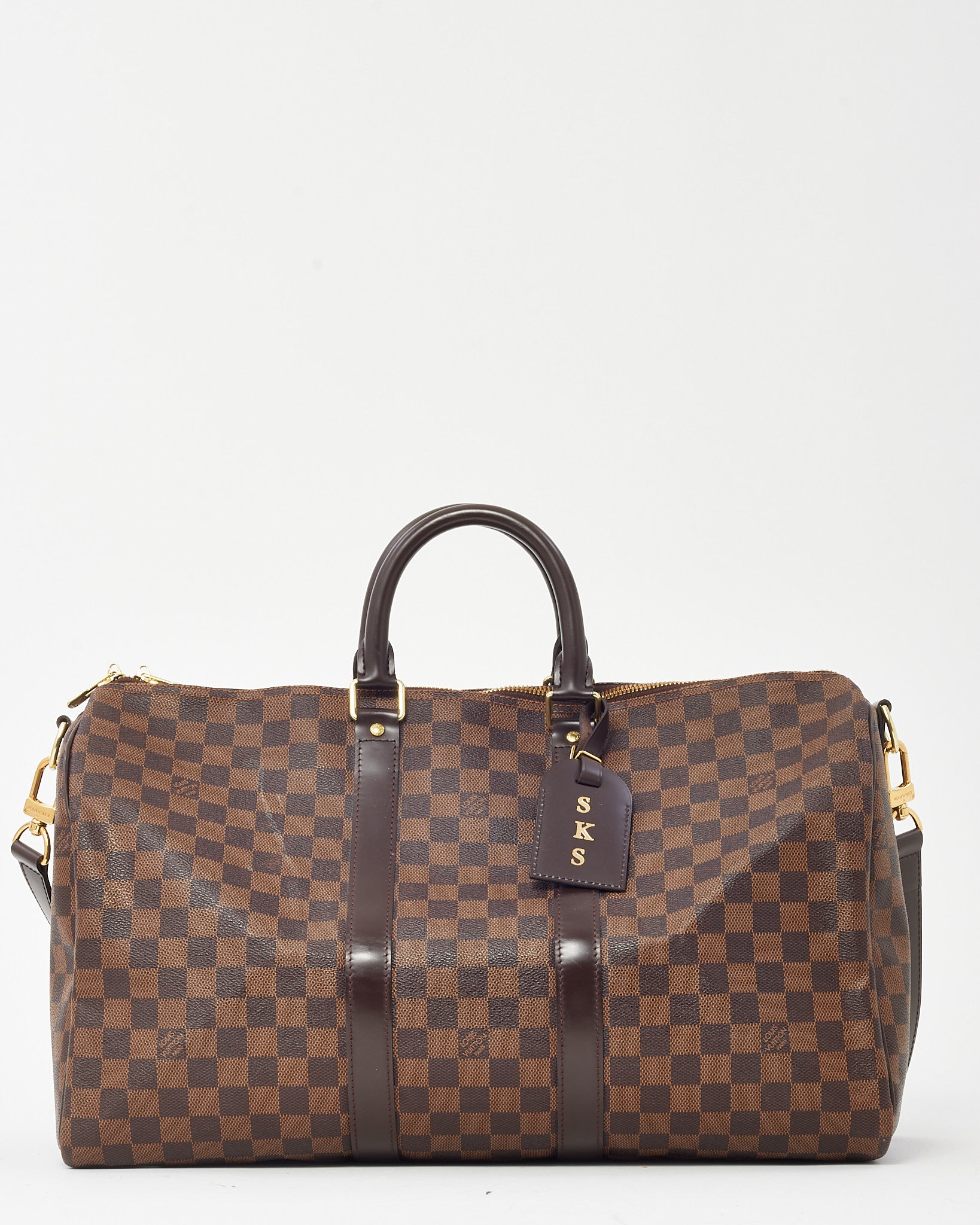 Damier Ebene Coated Canvas Keepall Bandoulière 45 with Initials