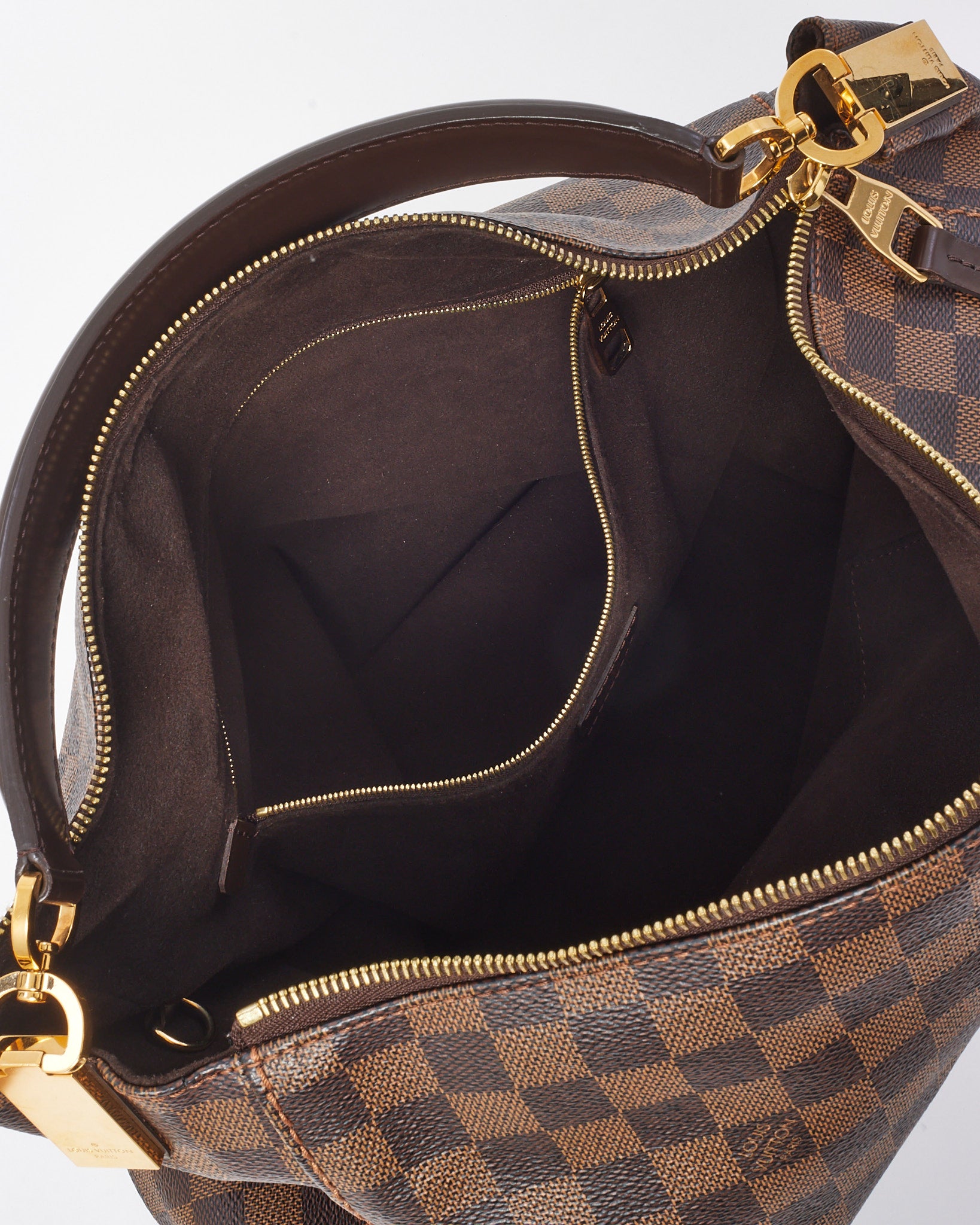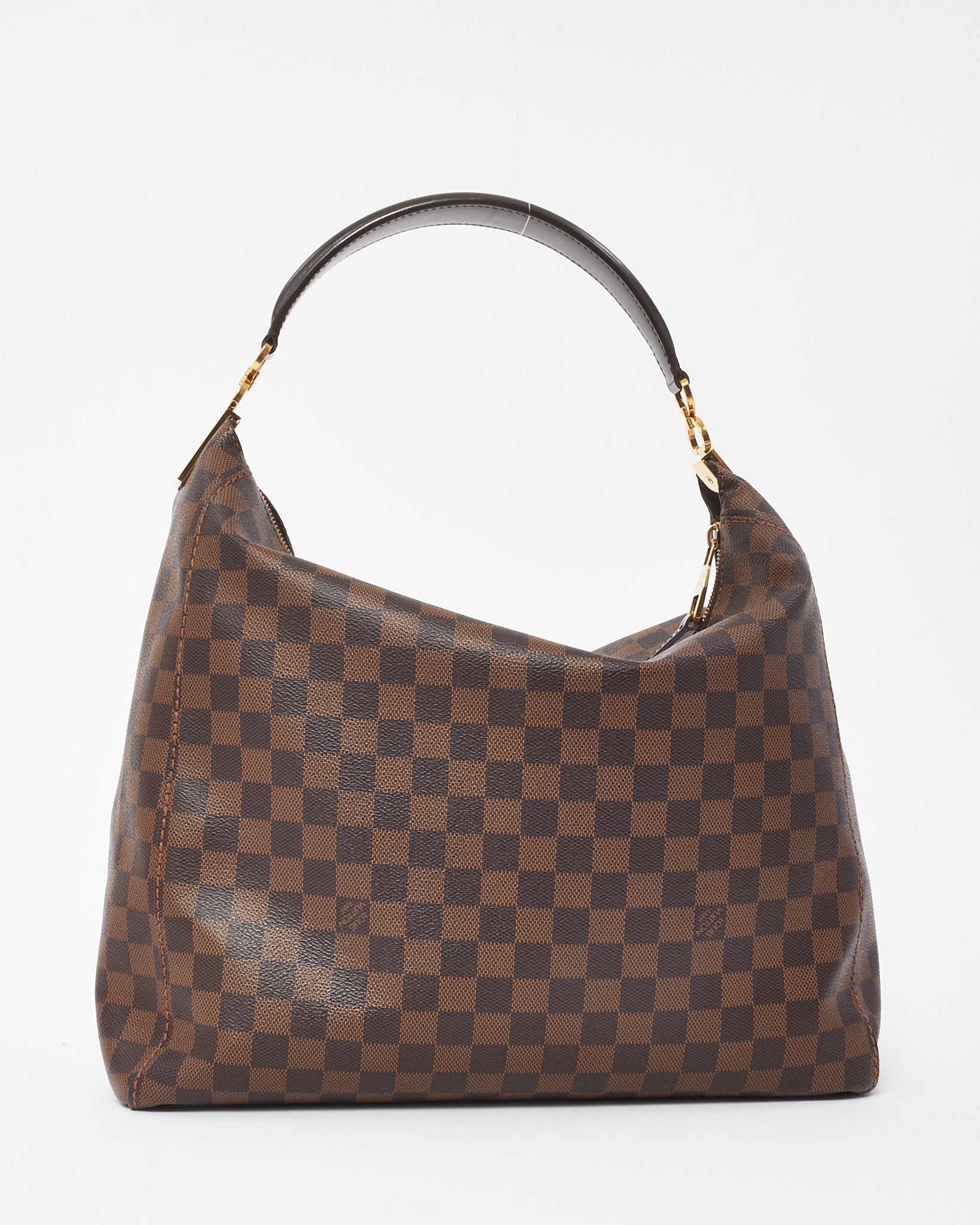 Add timeless sophistication to your accessories collection with this pre-loved authentic Louis Vuitton Damier Ebene Coated Canvas Portobello GM Shoulder Bag. Designed in a classic hobo silhouette, this elegant carryall is crafted from the house’s signature Damier Ebene coated canvas with rich brown leather trim and gleaming gold-tone hardware. The spacious interior, secured with a top zipper closure, offers ample room for everyday essentials, while the flat shoulder strap ensures comfortable wear. With its curved structure and understated luxury, this Portobello GM is the ideal blend of form, function, and iconic Louis Vuitton style.