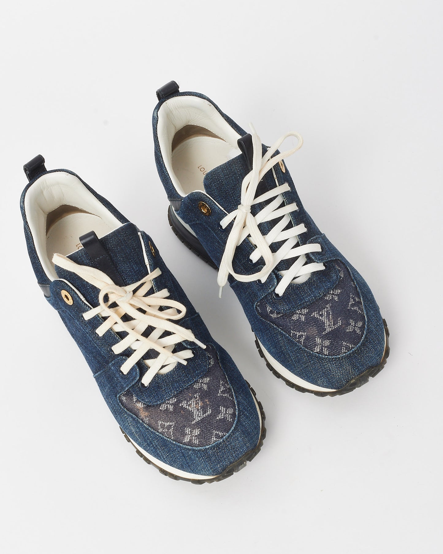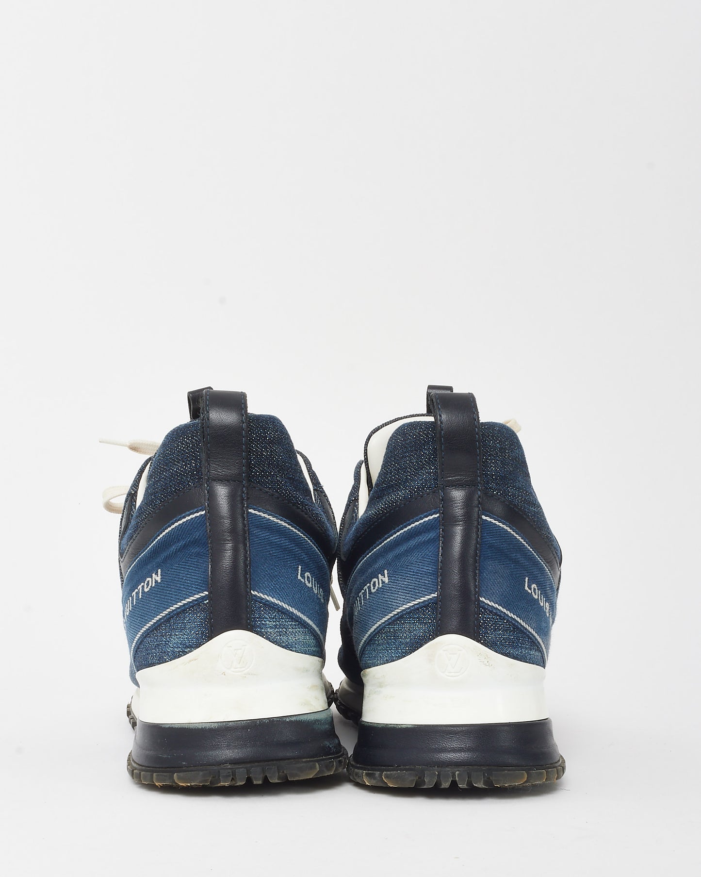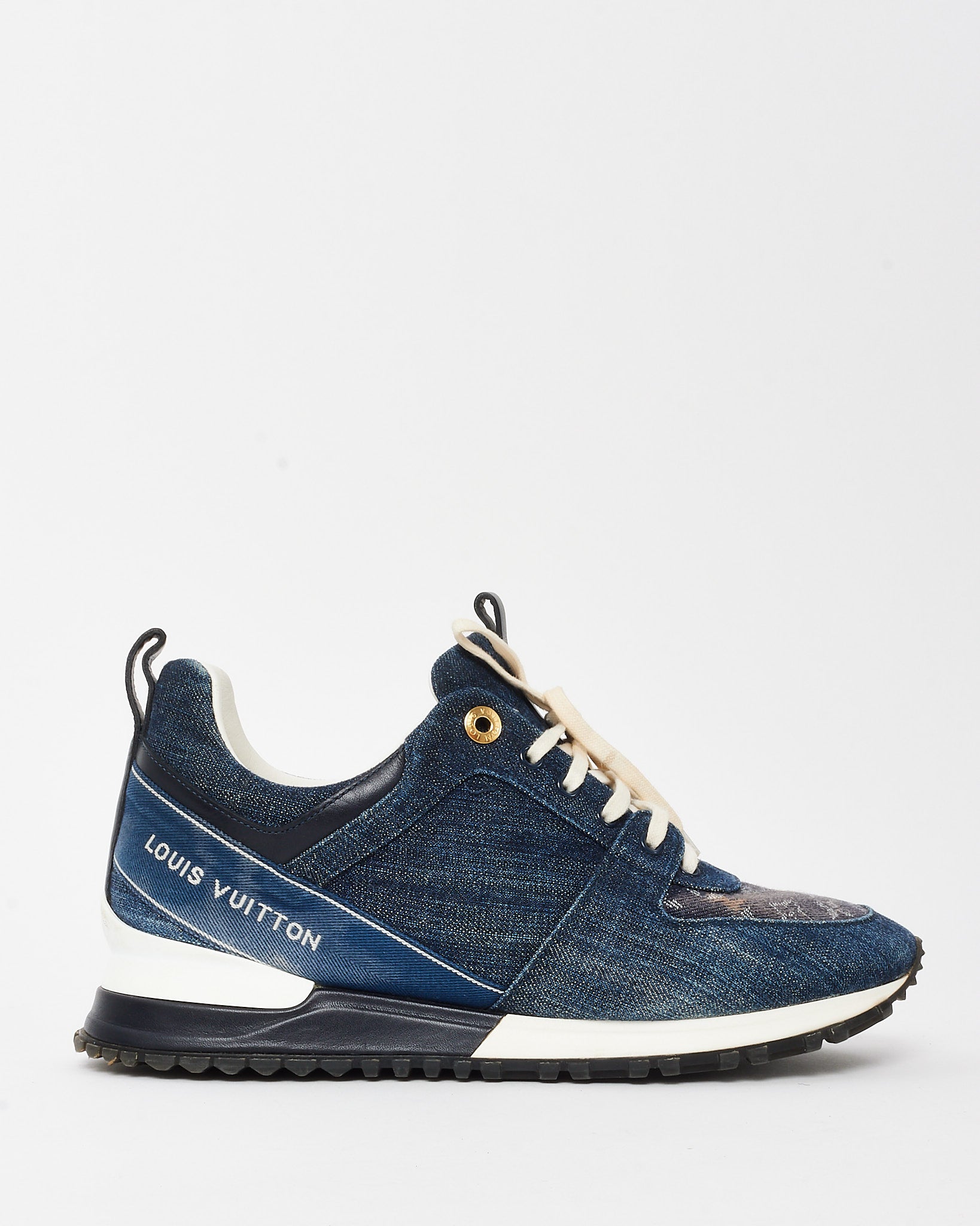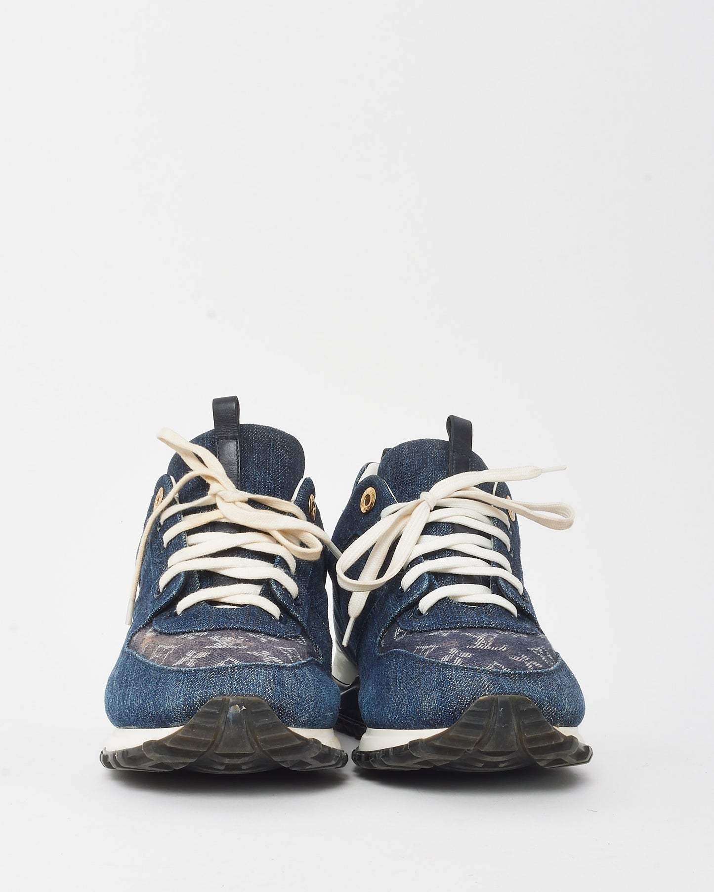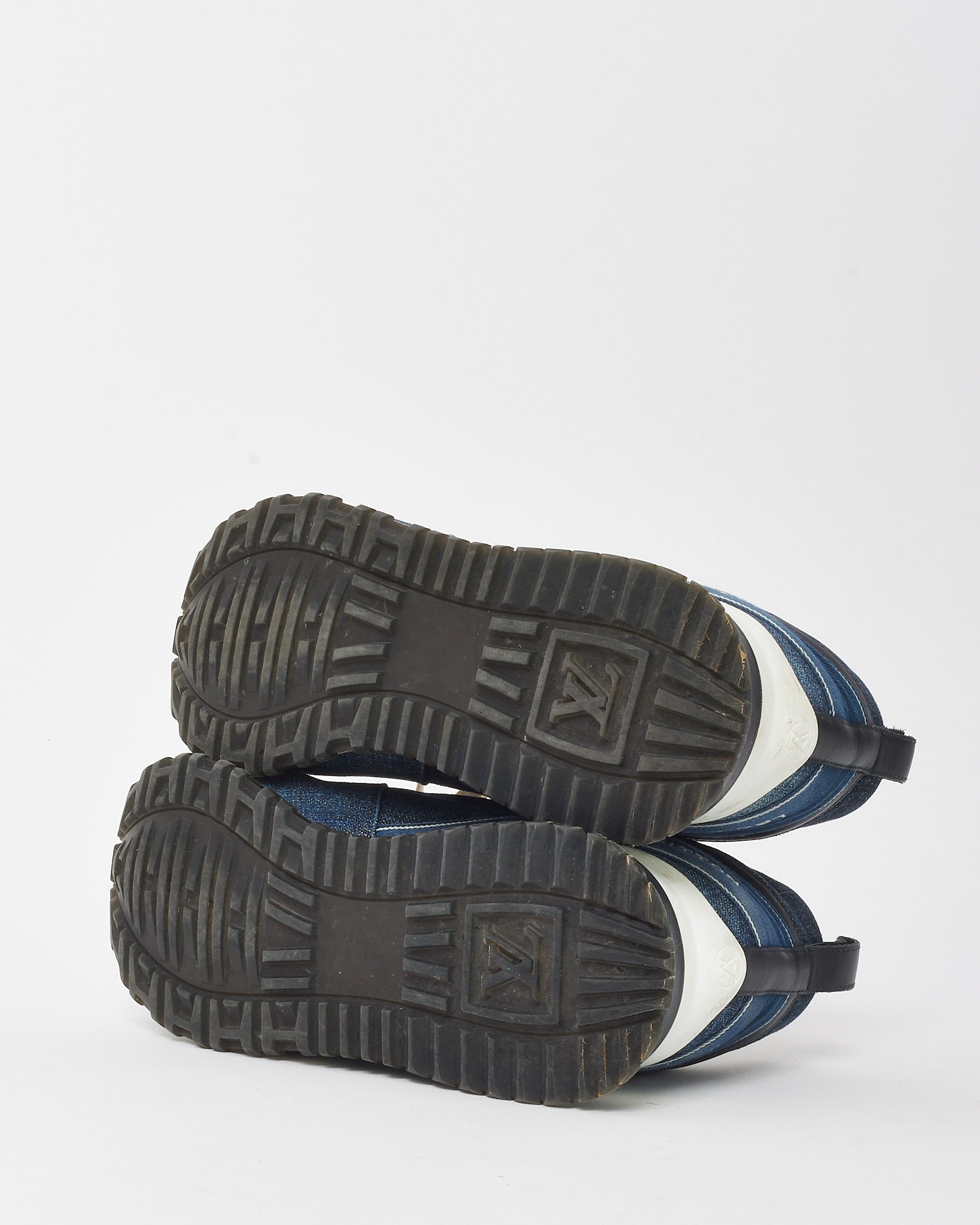 Sporty meets signature in these pre-owned authentic Louis Vuitton Runaway Sneakers, crafted from denim blue fabric with the house’s iconic monogram print. Designed with leather accents, gold-tone detailing, and a sculpted rubber sole, they offer both elevated style and all-day comfort.
