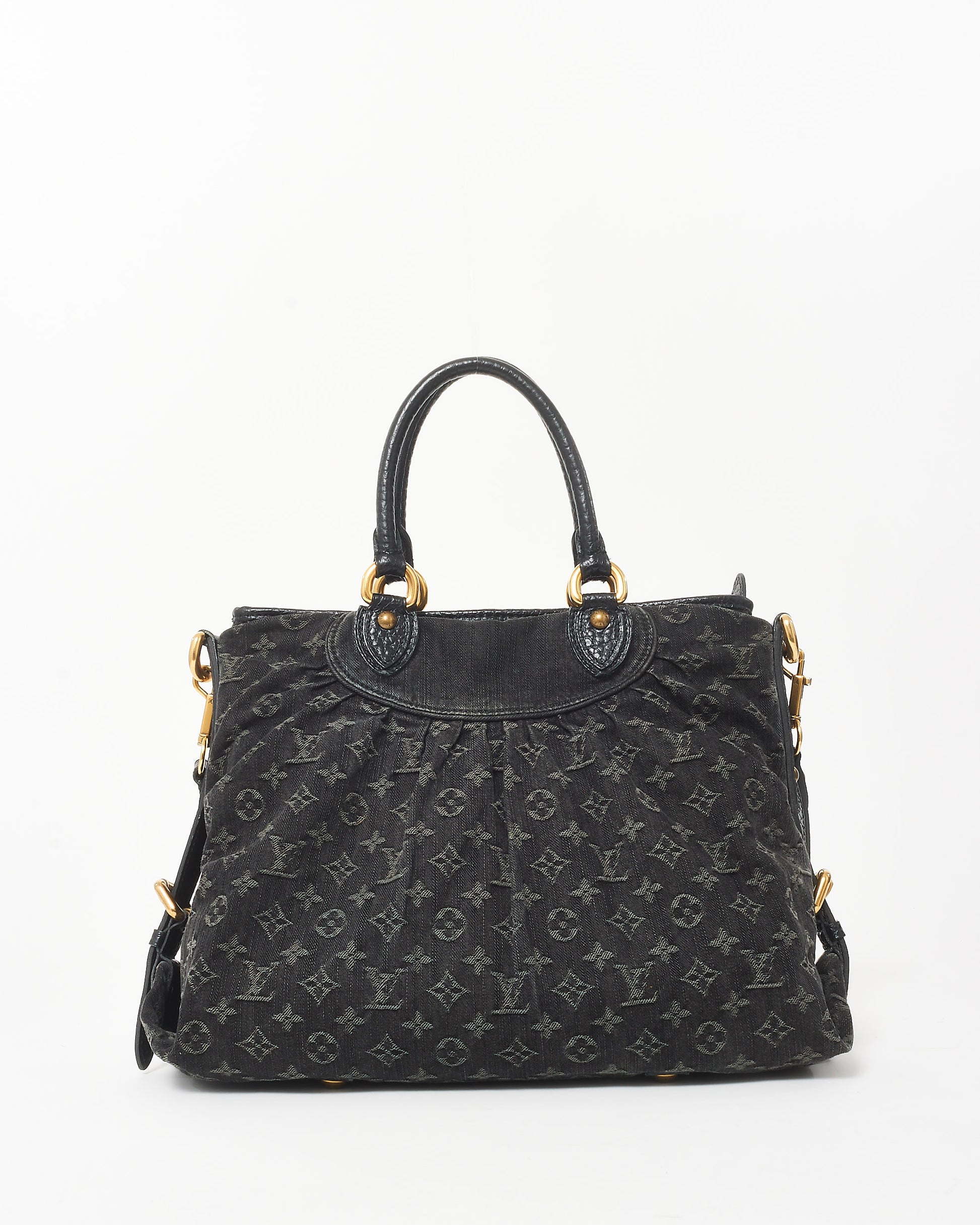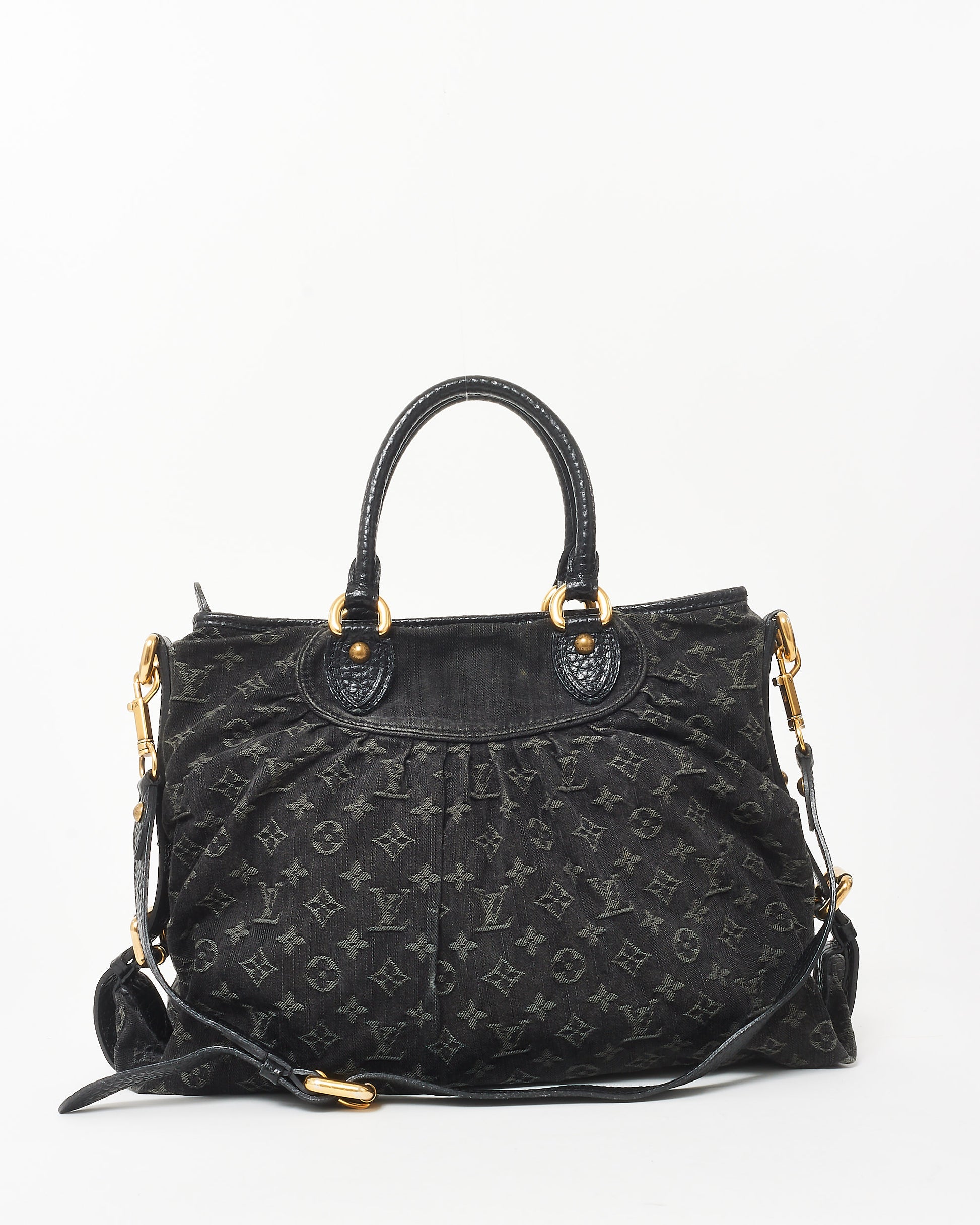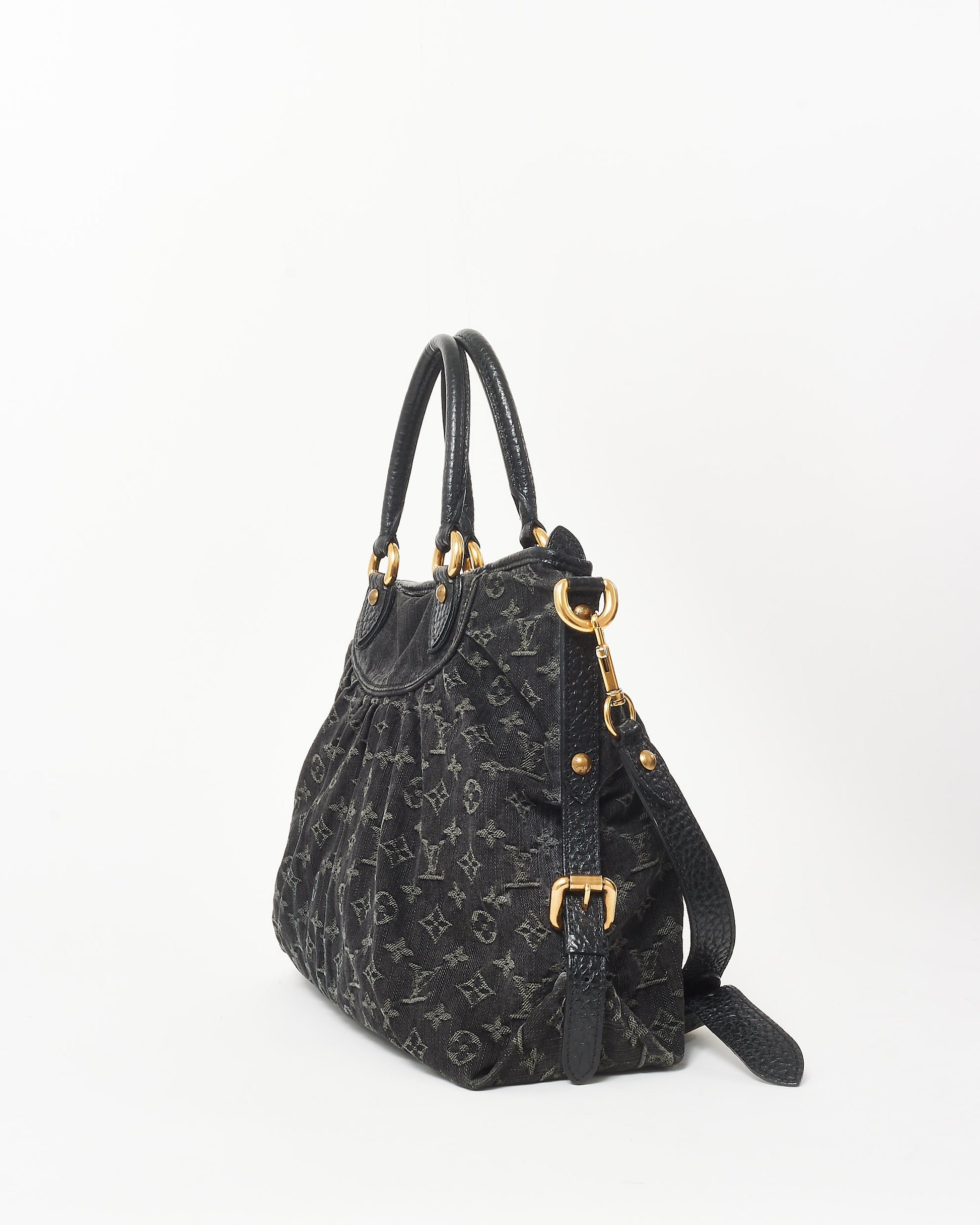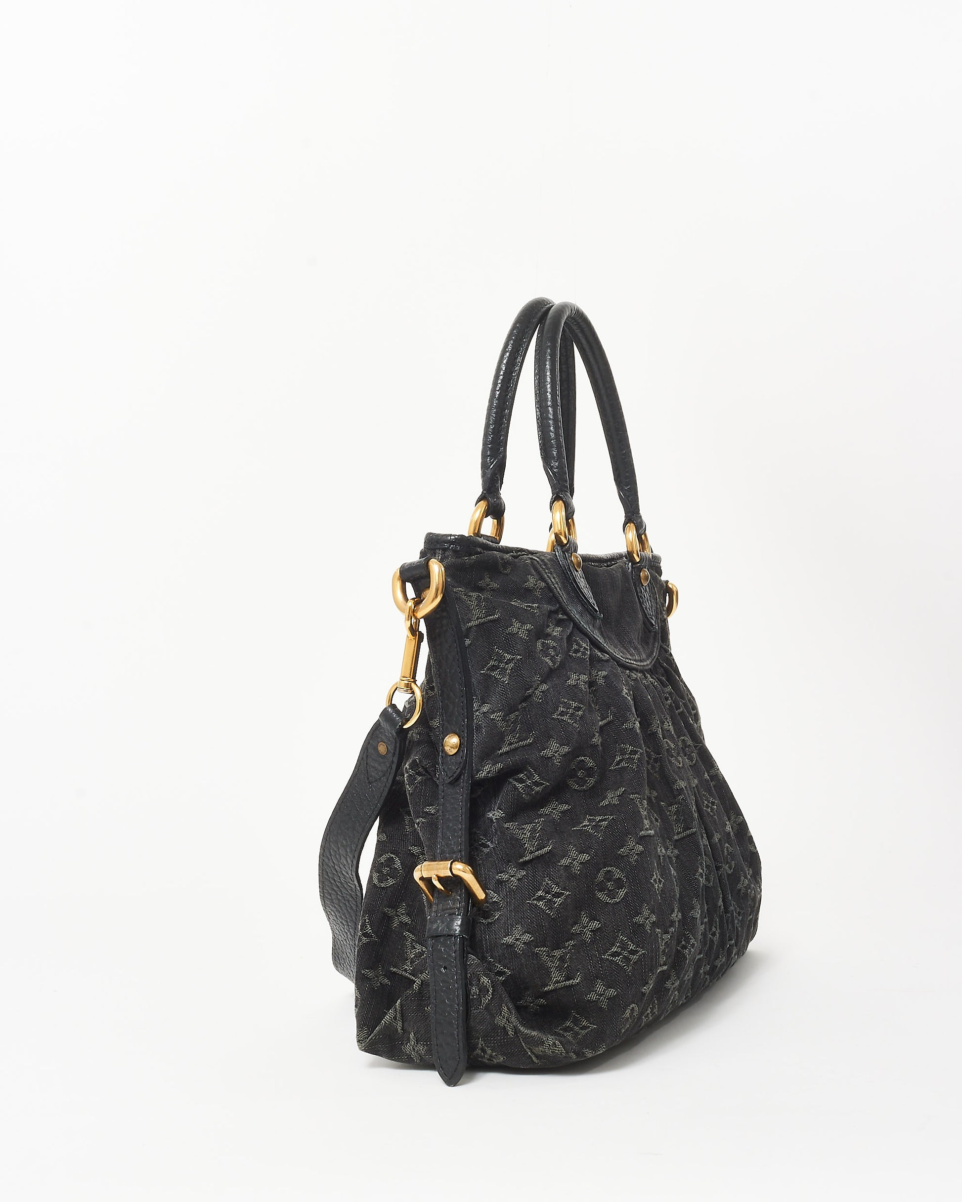 Step out in style with this authentic pre-owned Louis Vuitton Black Denim Monogram Neo Cabby GM Tote Bag, crafted from durable black denim and adorned with Louis Vuitton’s iconic monogram pattern, this GM-sized tote bag is designed to make a statement. With its refined silhouette, leather trim, and antique brass hardware, it effortlessly blends casual style with elegant sophistication. This handbag features a roomy interior with ample storage space, including a zip pocket and multiple compartments to keep essentials organized. The adjustable strap allows for versatile carrying options, either as a shoulder bag or crossbody, while dual top handles ensure easy handling. Shop pre-owned authentic Louis Vuitton handbags at Retyche.