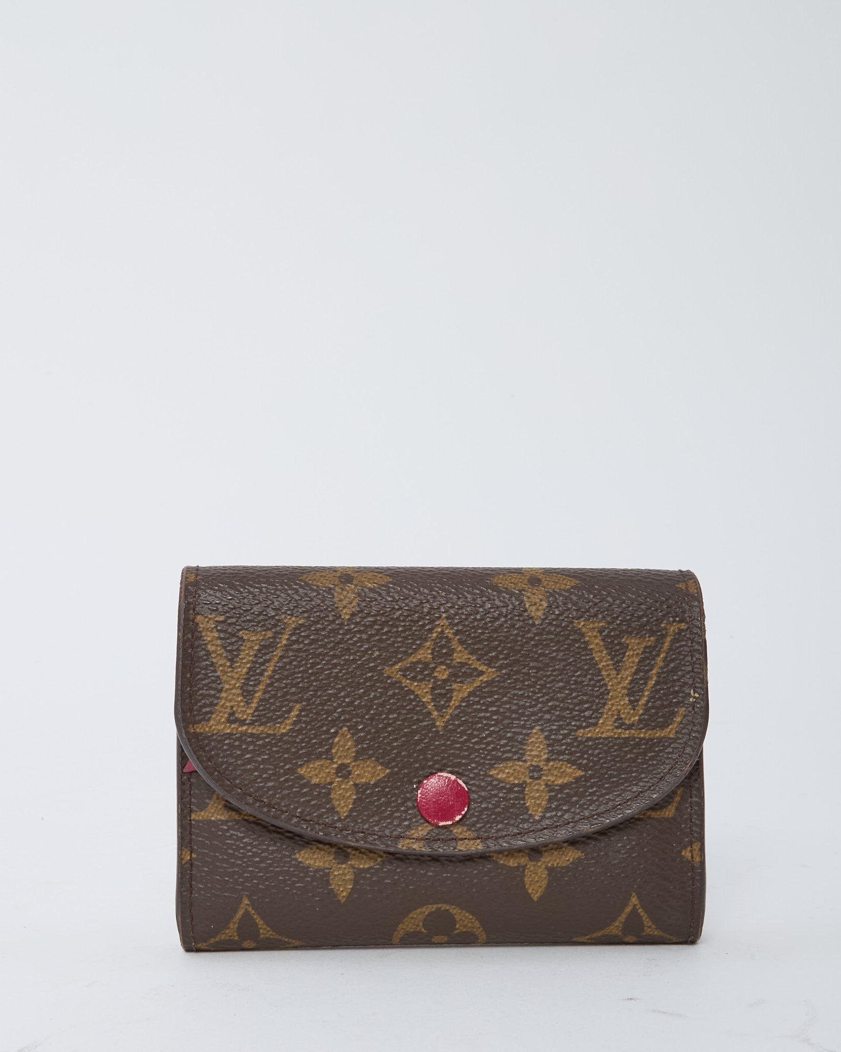 Add a pop of color to your essentials with this pre-loved authentic Louis Vuitton Rosalie Coin Purse Wallet in monogram canvas and vibrant fuchsia leather. Compact and practical, this petite wallet features a flap snap closure, interior card slots, and a zippered coin pocket, all in a beautifully structured silhouette. Chic and functional, it’s perfect for light carry or slipping into your favorite mini bag with effortless Louis Vuitton style.