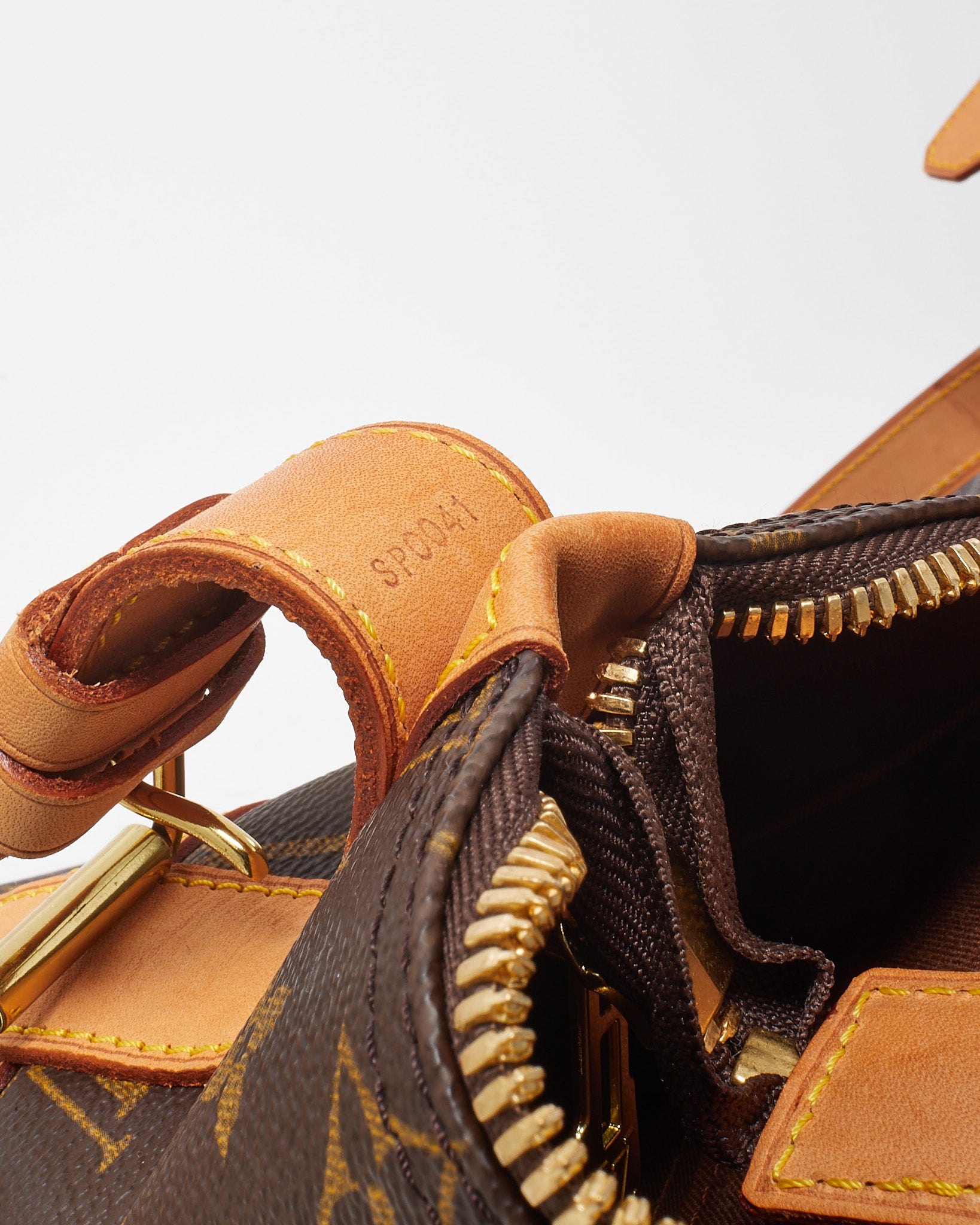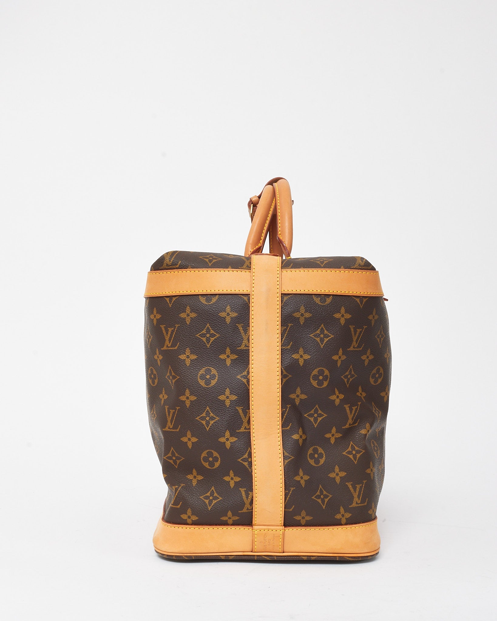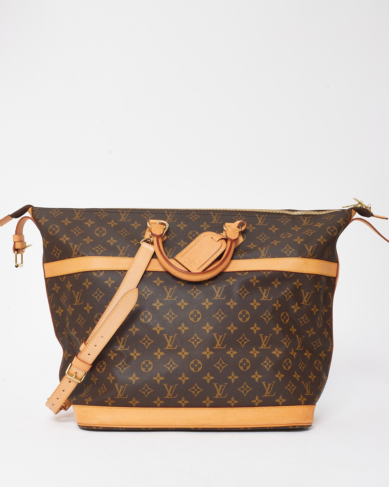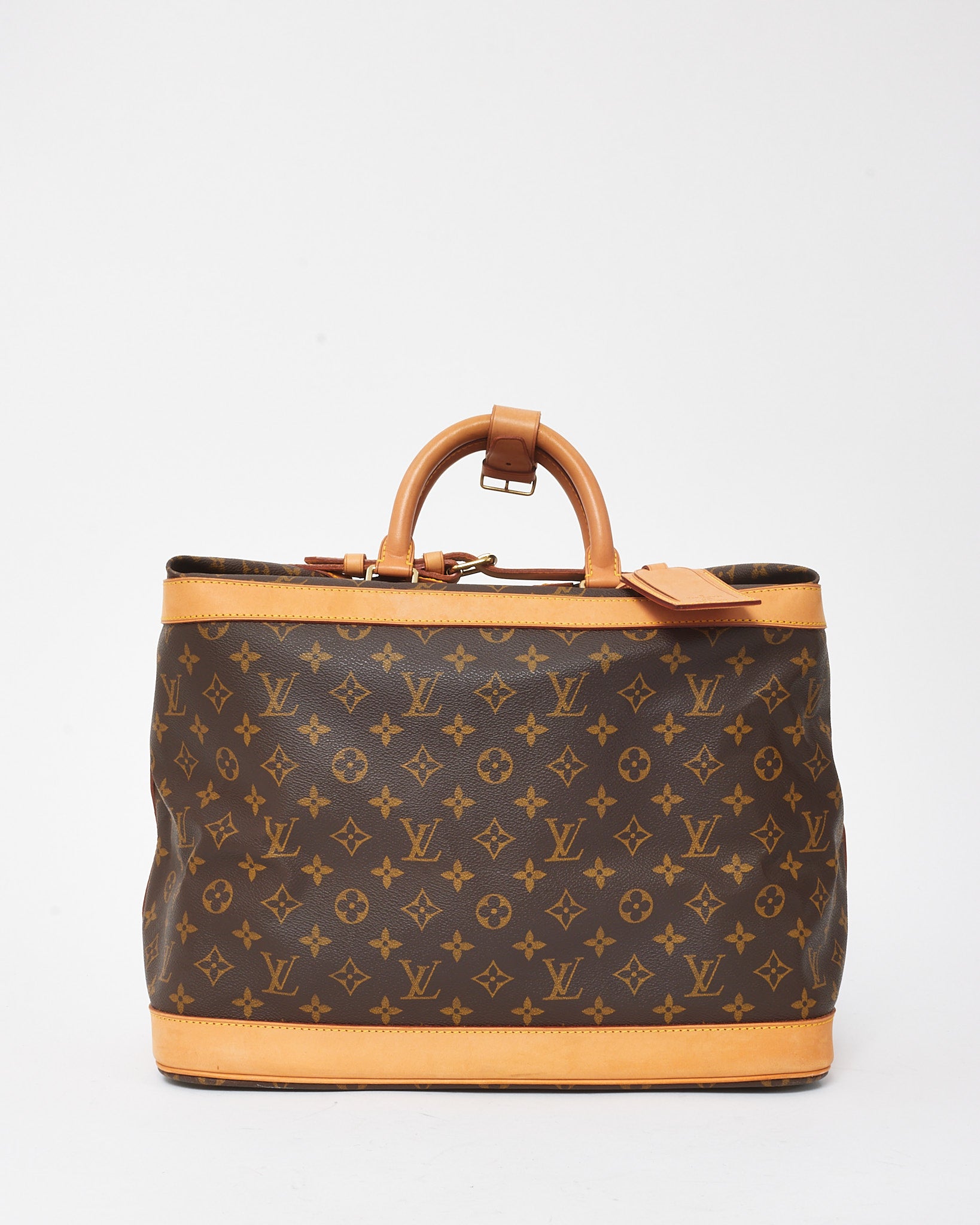 A classic travel essential, this pre-loved authentic Louis Vuitton Cruiser 45 weekend bag is crafted from iconic Monogram coated canvas with natural Vachetta leather trim. Designed for stylish jetsetters, it features structured top handles and an adjustable, removable shoulder strap for effortless carry. The spacious, boxy interior offers generous room for extended weekend stays and is secured with a top zipper and buckle flap closure. Polished gold-tone hardware adds a refined finish to this vintage-inspired silhouette, making it the perfect blend of heritage style and practical function.