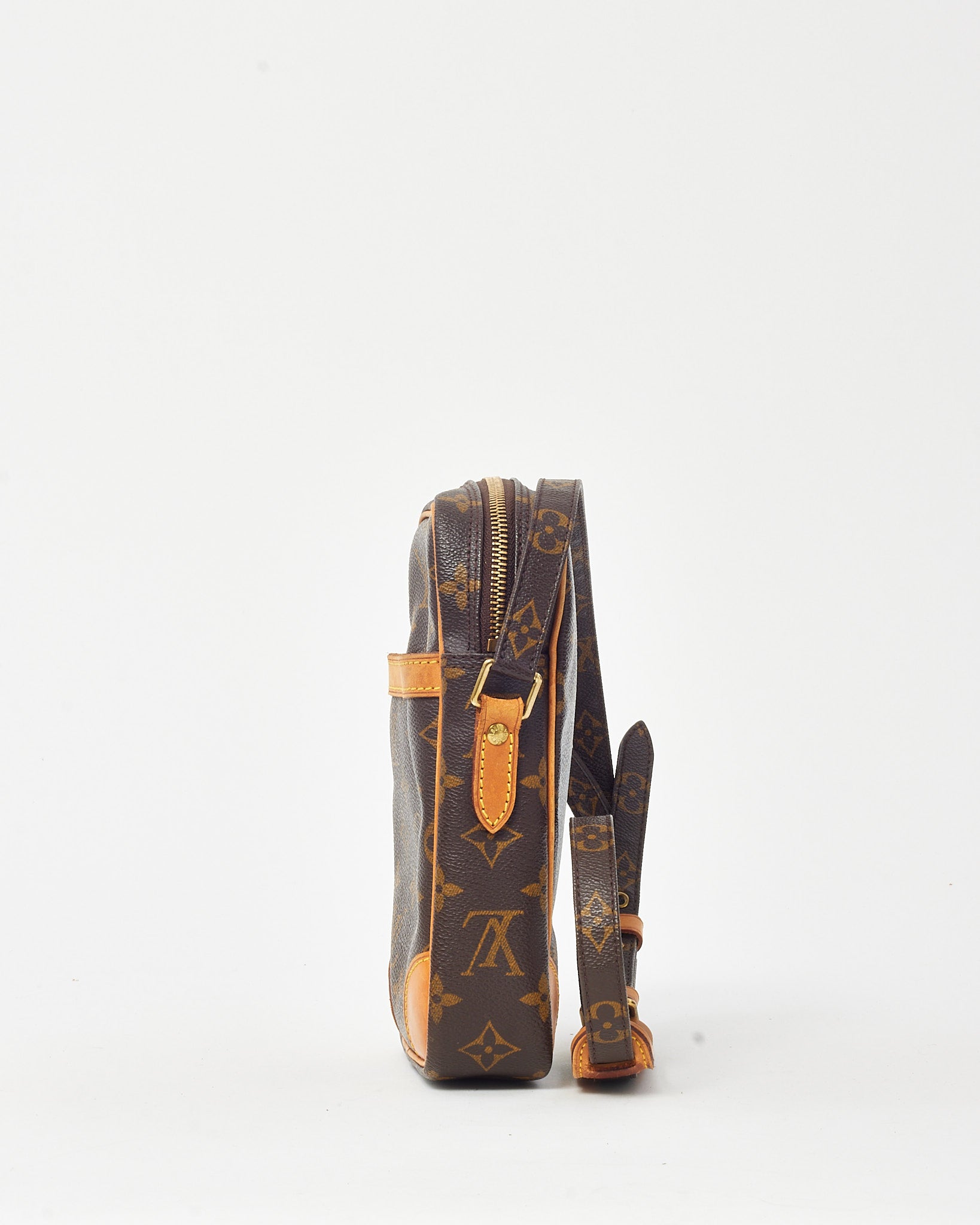 Keep it classic with this pre-loved authentic Louis Vuitton Danube Crossbody Bag, crafted in signature monogram canvas with natural vachetta leather trim. Compact and structured, this timeless silhouette features a front slip pocket, zip-top closure, and an adjustable leather-accented strap for hands-free convenience. Perfect for daily wear or travel, it’s a practical and stylish piece that reflects Louis Vuitton’s heritage of functional luxury.