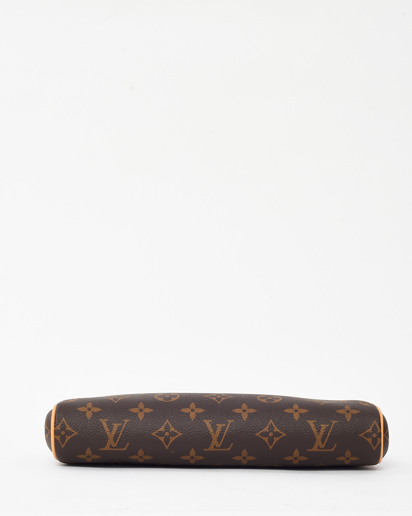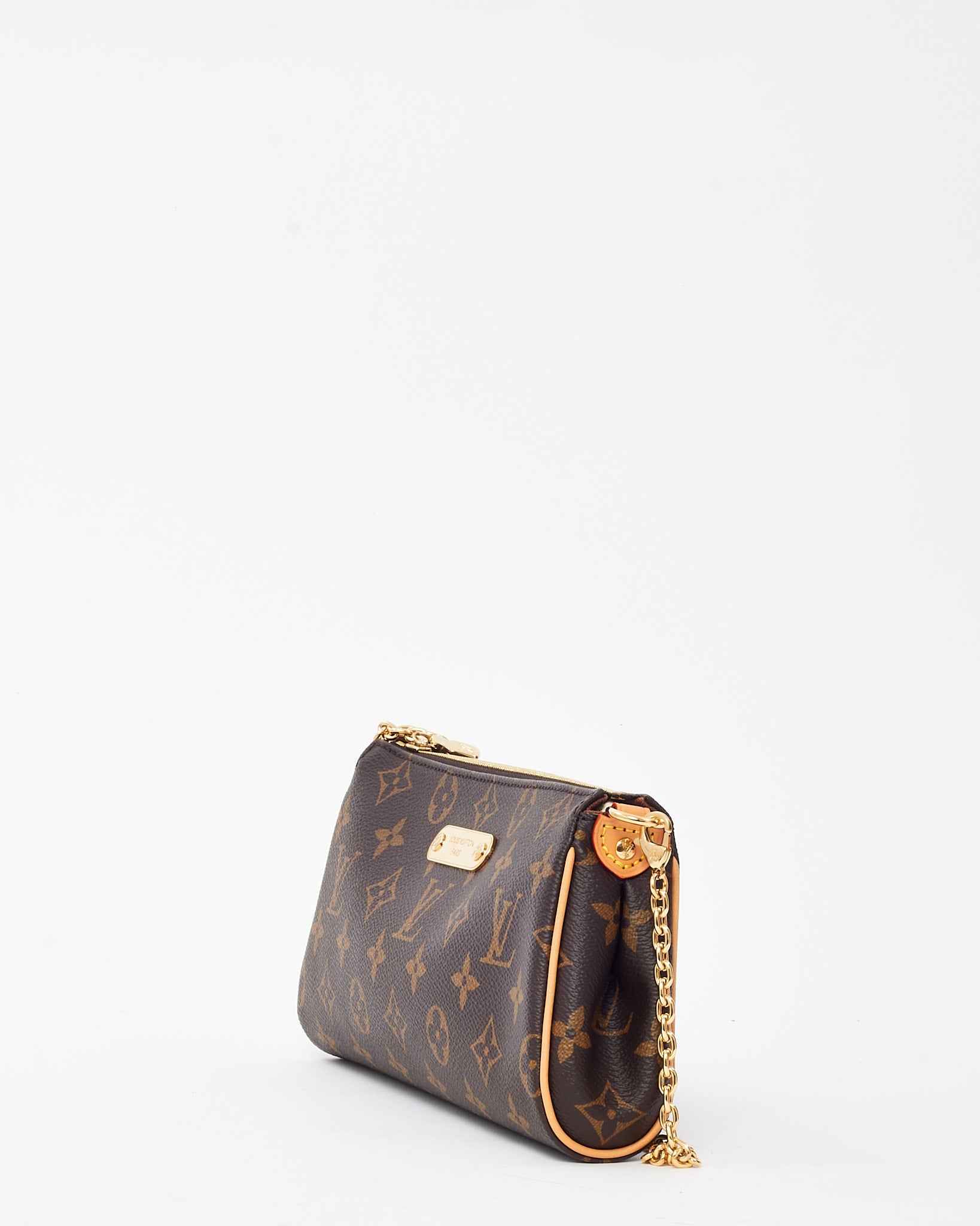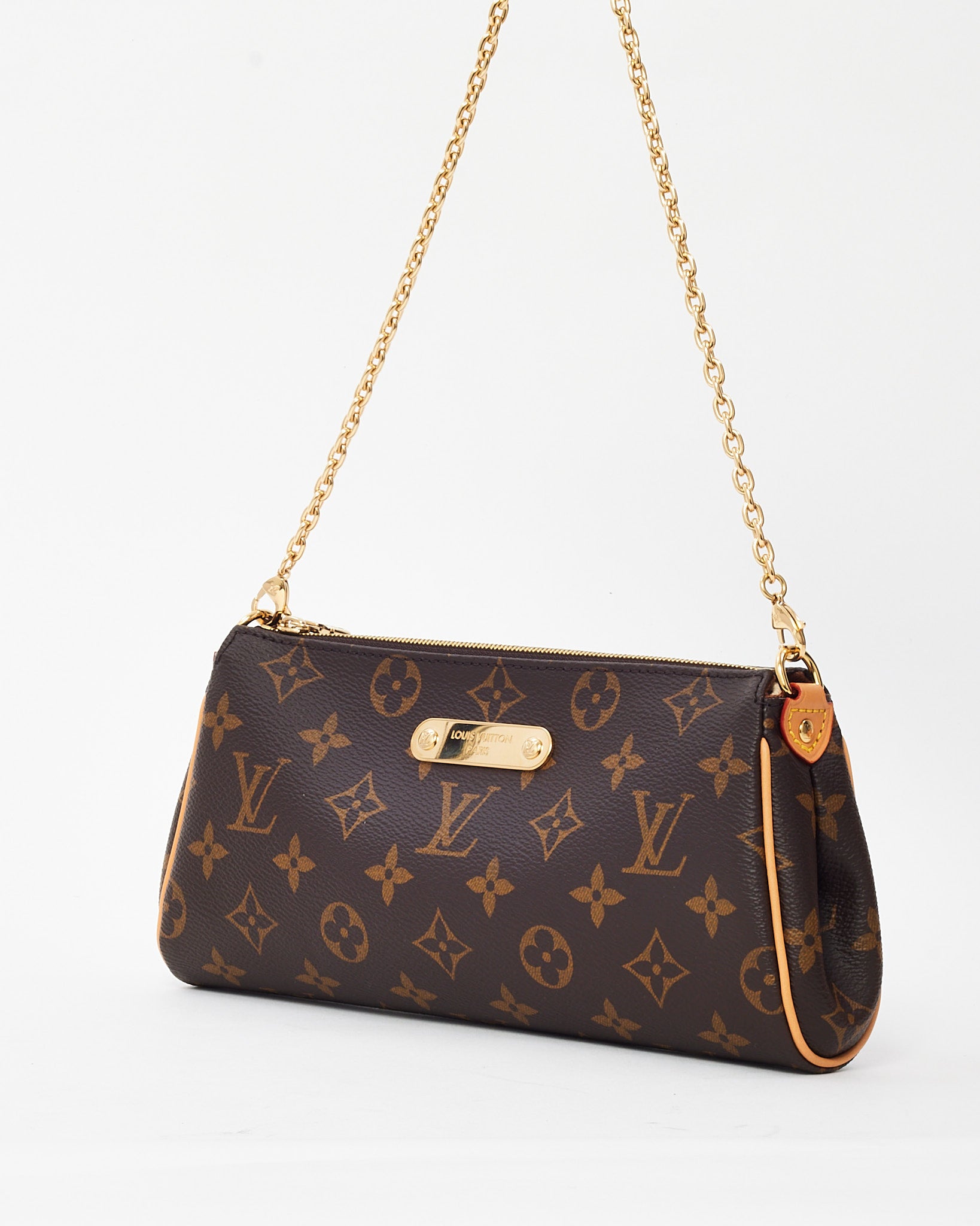 Add versatile charm to your collection with this pre-loved authentic Louis Vuitton Eva Pochette Bag, crafted in iconic monogram canvas with natural vachetta leather trim. Featuring a sleek silhouette, polished gold-tone hardware, and a signature logo nameplate, this compact piece includes both a chain strap for shoulder carry and a detachable leather strap for crossbody wear. Ideal for day-to-night transitions, it’s a timeless accessory with effortless elegance.