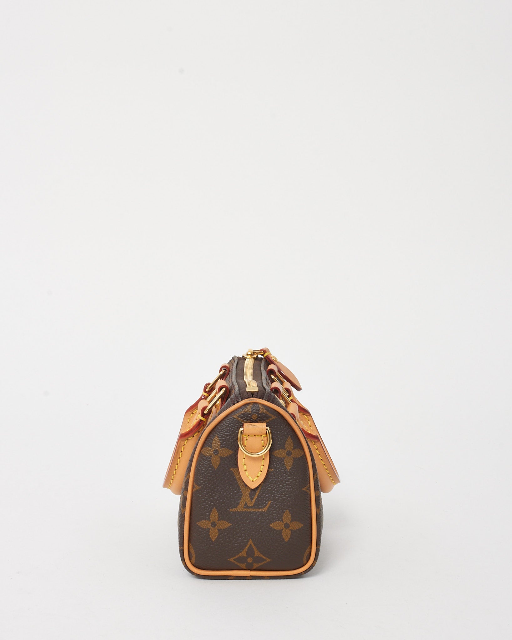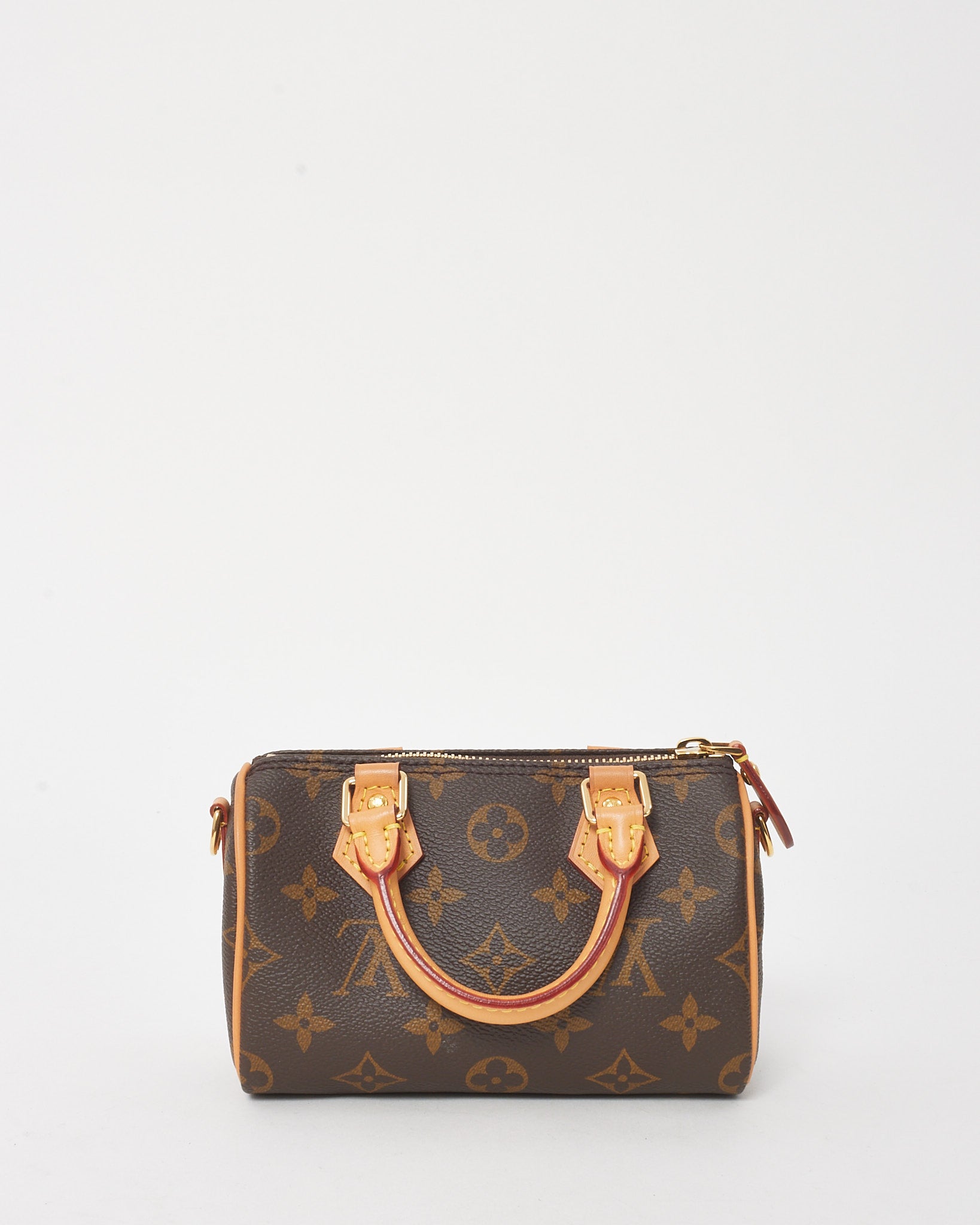 A timeless statement of elegance, this pre-loved authentic Louis Vuitton Monogram Canvas Nano Speedy Bandoulière is a miniature icon crafted from the house’s signature monogram canvas. Designed with structured top handles and a removable, adjustable crossbody strap, it offers versatile styling for day-to-night wear. Compact yet functional, the Nano Speedy perfectly combines heritage craftsmanship with modern practicality, making it an essential addition to any luxury collection.