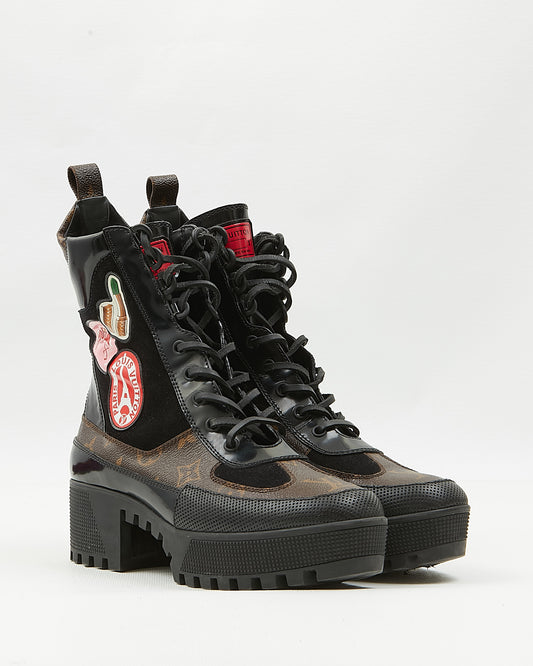 Monogram Canvas & Suede Patch Work Mid-Calf Combat Boots - 39
