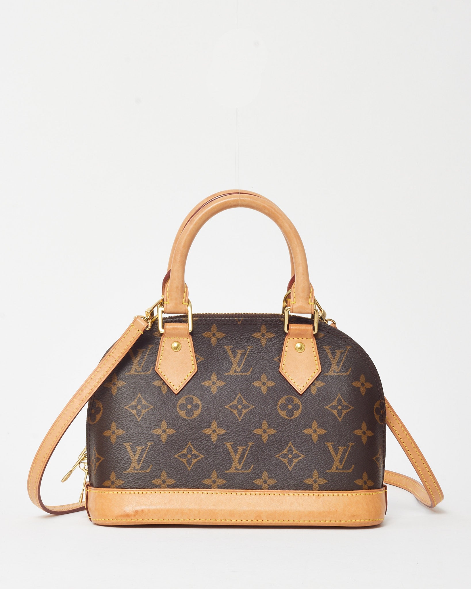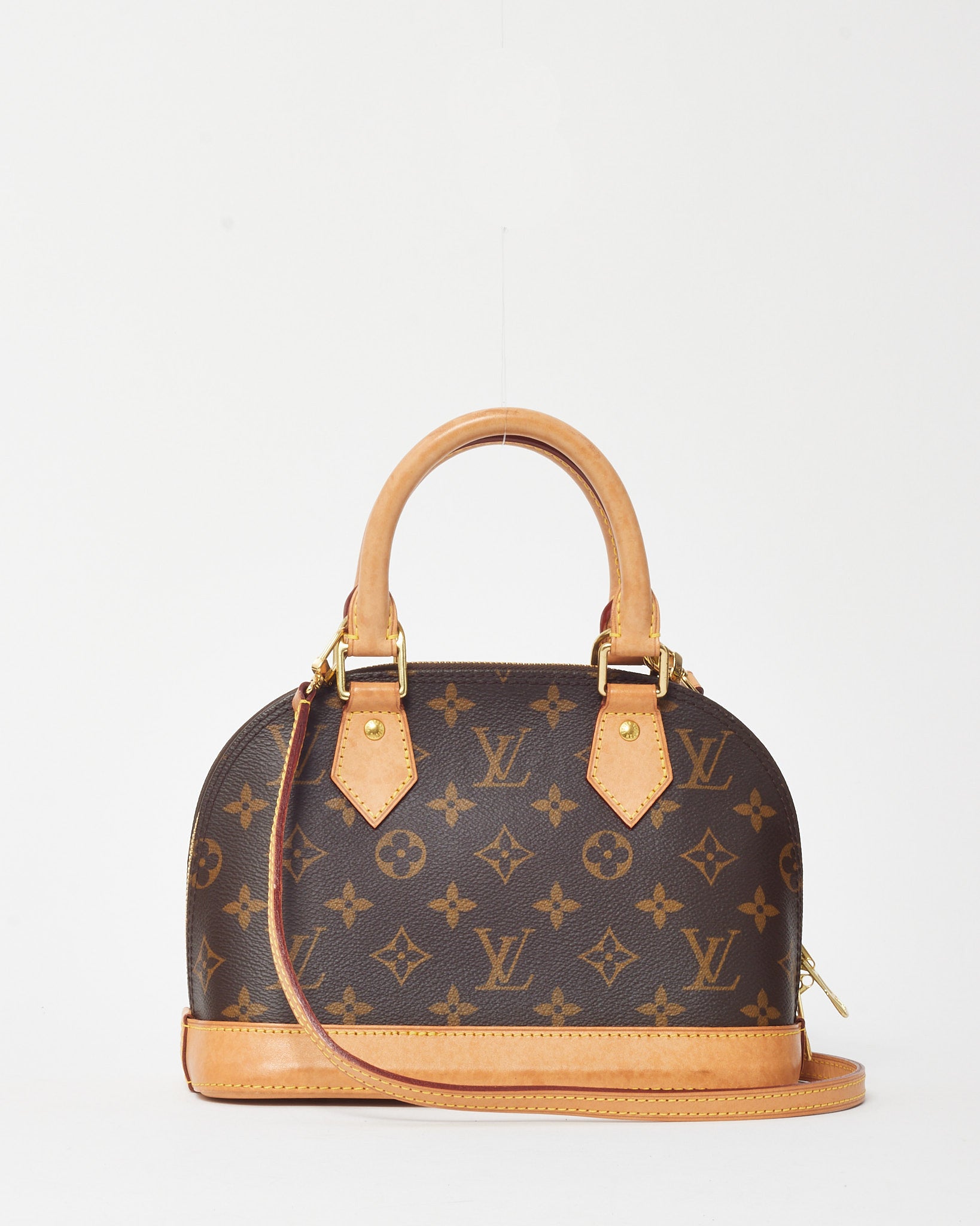 Classic and refined, this pre-loved authentic Louis Vuitton Monogram Coated Canvas Alma BB Bag embodies timeless elegance and signature craftsmanship. Crafted from iconic Monogram coated canvas with natural Vachetta leather trim, it features a structured dome silhouette, double zip closure, and gold-tone hardware. The detachable shoulder strap allows for versatile wear, from hand-carry to crossbody styling. Compact yet spacious enough for daily essentials, this beloved Louis Vuitton piece adds a touch of polished sophistication to any look.