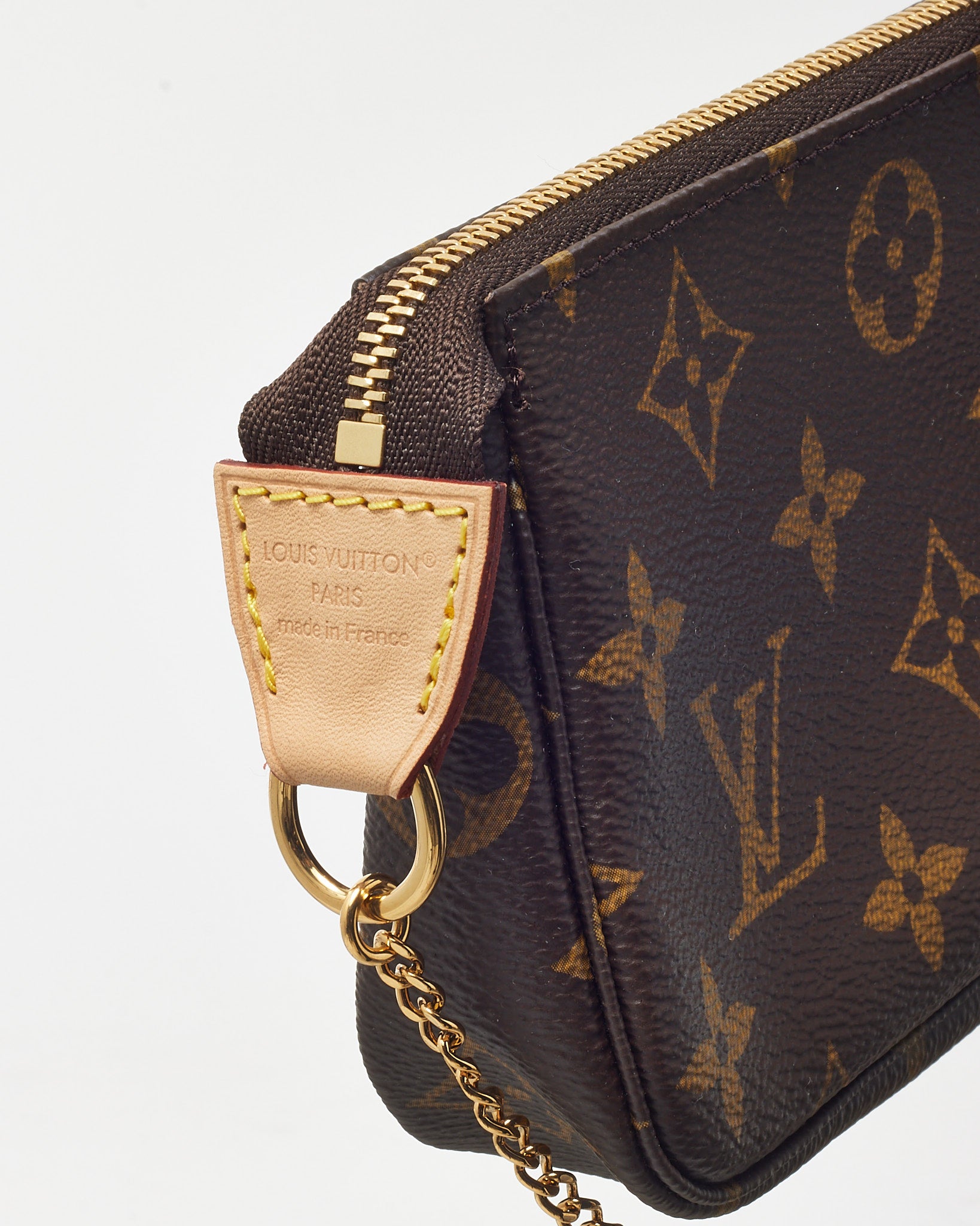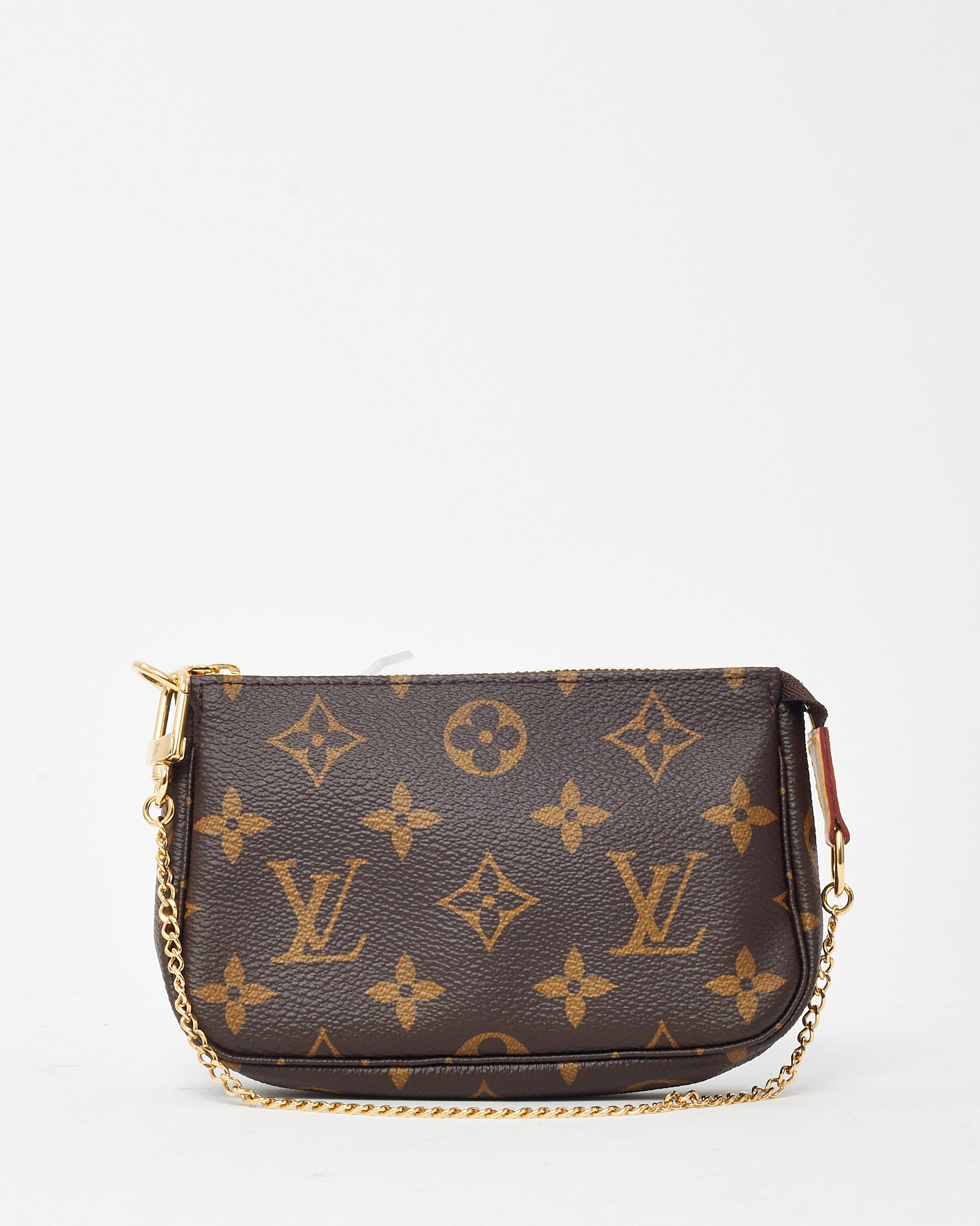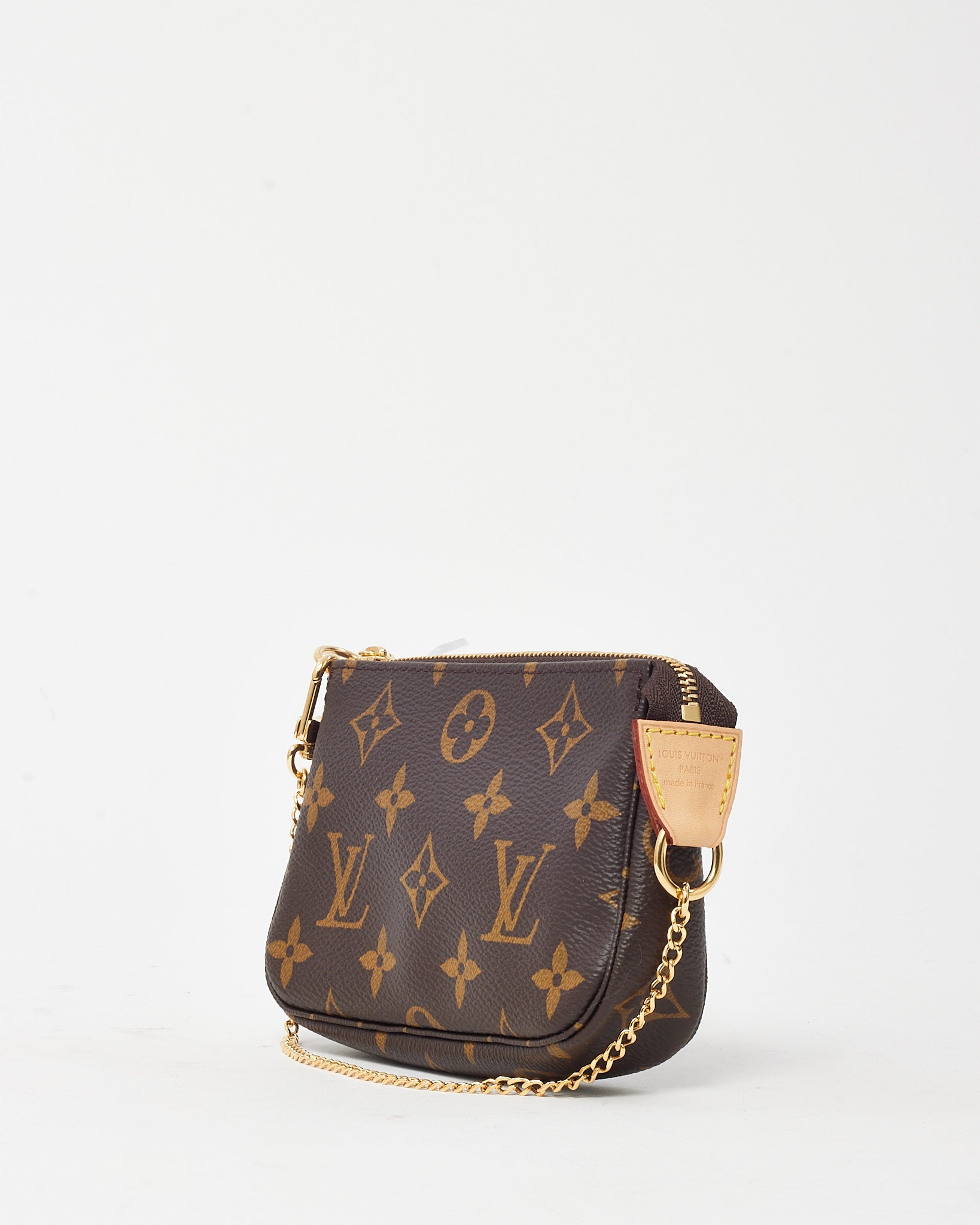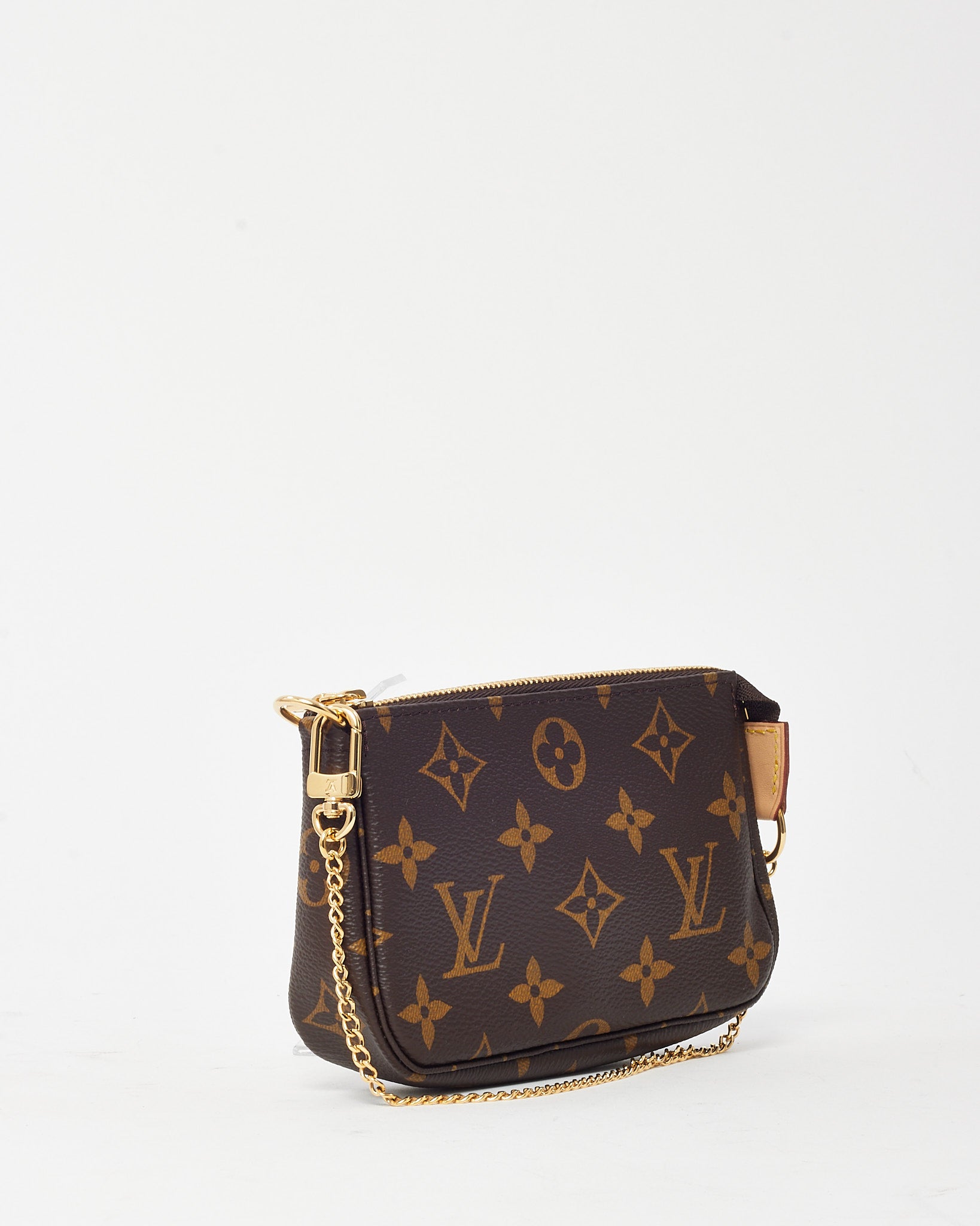 Compact yet iconic, this pre-loved authentic Louis Vuitton Mini Pochette Accessoires is the perfect blend of function and style. Crafted from the signature Monogram coated canvas with a natural cowhide leather trim, this versatile mini pouch features a gold-tone chain strap for effortless carry. Whether used as a clutch, cosmetic case, or bag insert, its zippered closure and classic silhouette make it an essential accessory for any Louis Vuitton collector.
