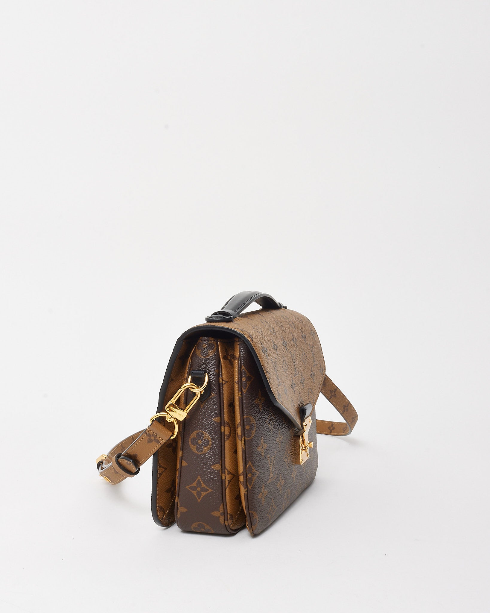 A cult favorite reimagined in bold contrast, this pre-loved authentic Louis Vuitton Pochette Métis bag is crafted in the house’s striking Monogram Reverse coated canvas. Compact yet practical, the structured silhouette features a signature S-lock closure, accordion-style interior, and an exterior zipped pocket for added functionality. Finished with gold-tone hardware, a top handle, and a removable adjustable strap, it transitions seamlessly from polished shoulder wear to casual crossbody styling. An iconic piece that delivers everyday elegance with a modern edge.
