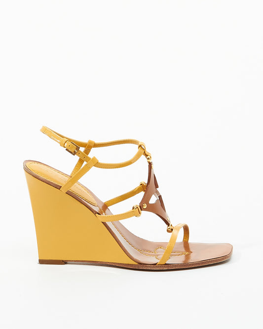 Mustard / Tan Leather Wrap Sandal Wedges - 38