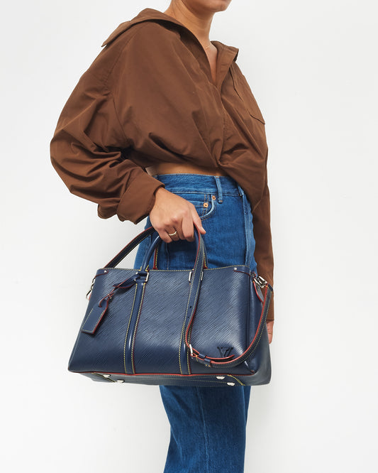 Navy Blue Epi Leather & Red Trim Souffot MM Bag