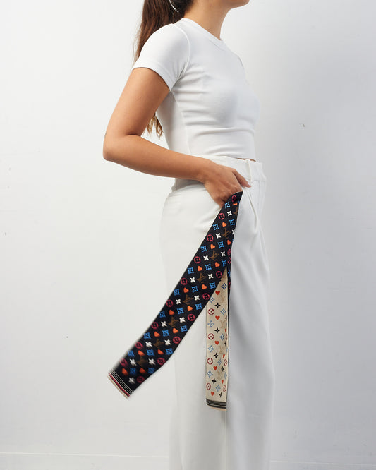 Navy Blue Multi Monogram Heart Silk Twilly