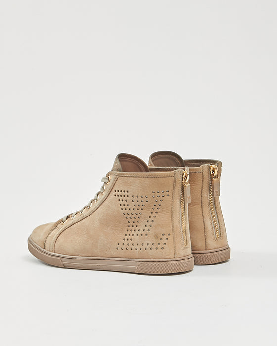 Taupe Suede Leather Perforated LV Logo High Top Sneakers - 37.5