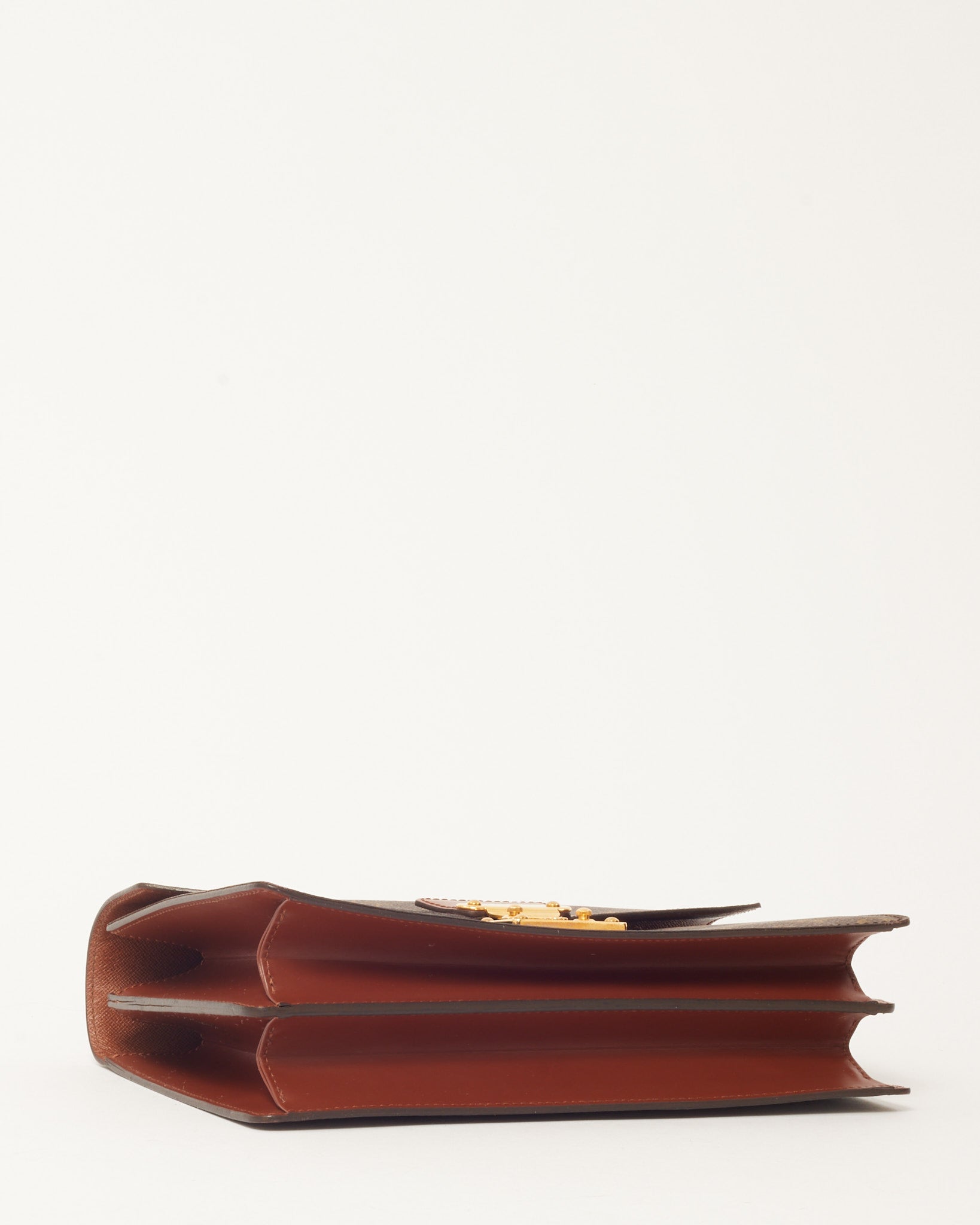 CONDITION SUMMARY: The item shows some signs of wear and use. Slightly worn corners, creases in leather, fraying or wear, and tarnished hardware may be visible. Any noticeable signs of wear will be stated in the images. Some stains to the leather, inner pocket lining removed.