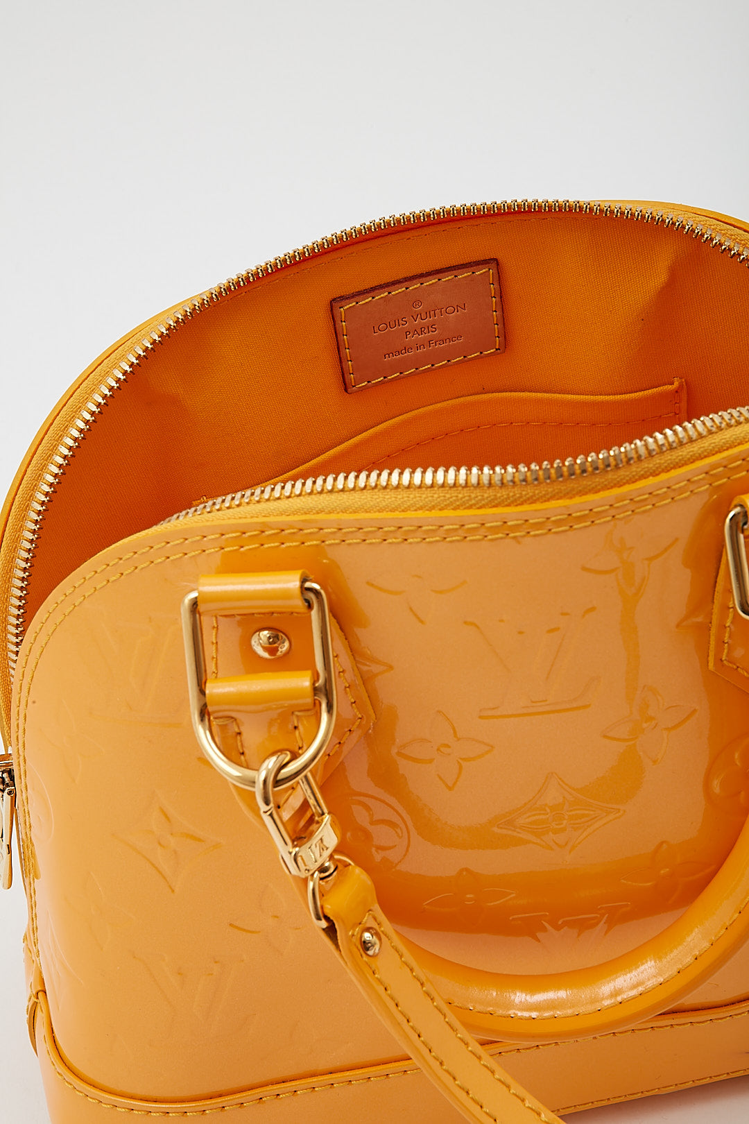Yellow Vernis Monogram Alma BB Bag