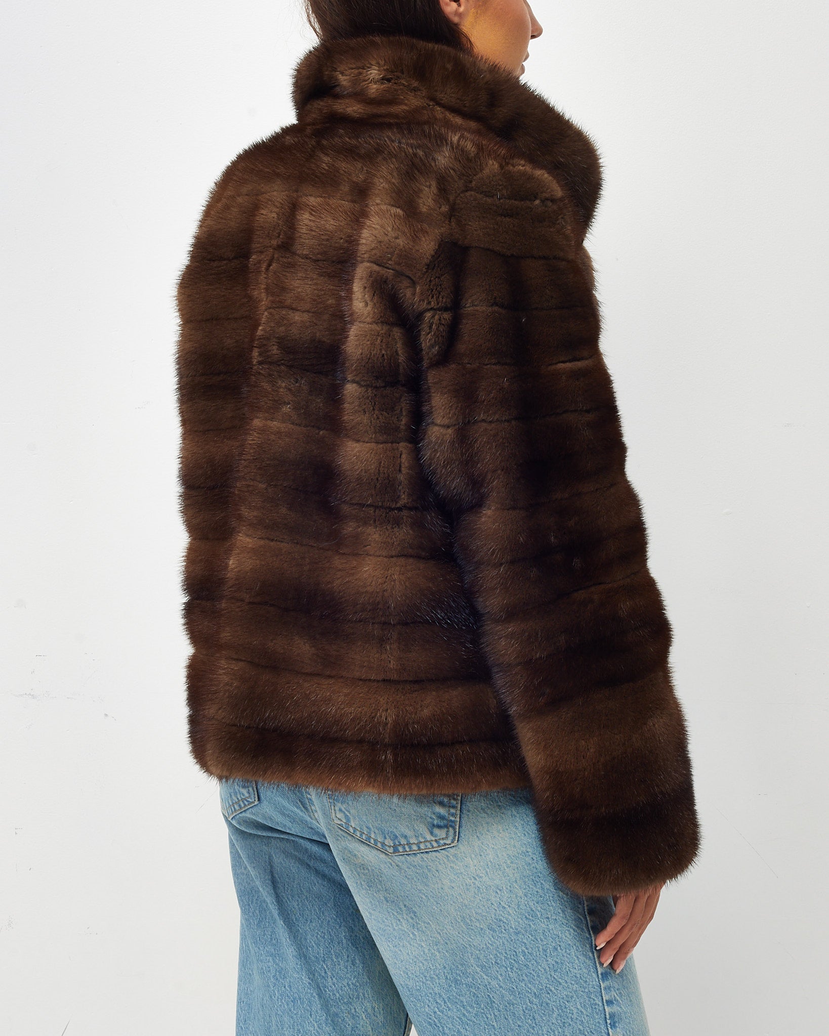 Luna Fur Brown Mink Short Fur Coat - M