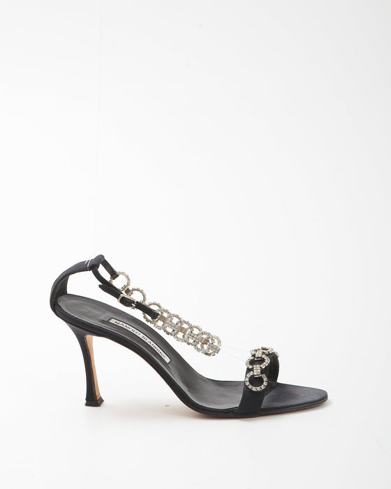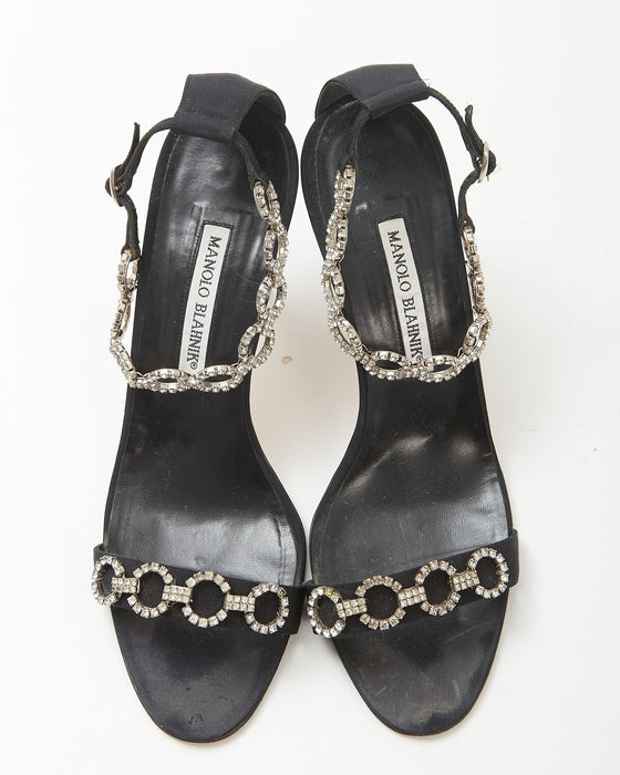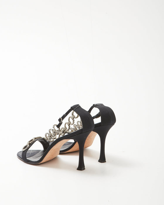 Black Satin Crystal Strap Sandal - 9.5