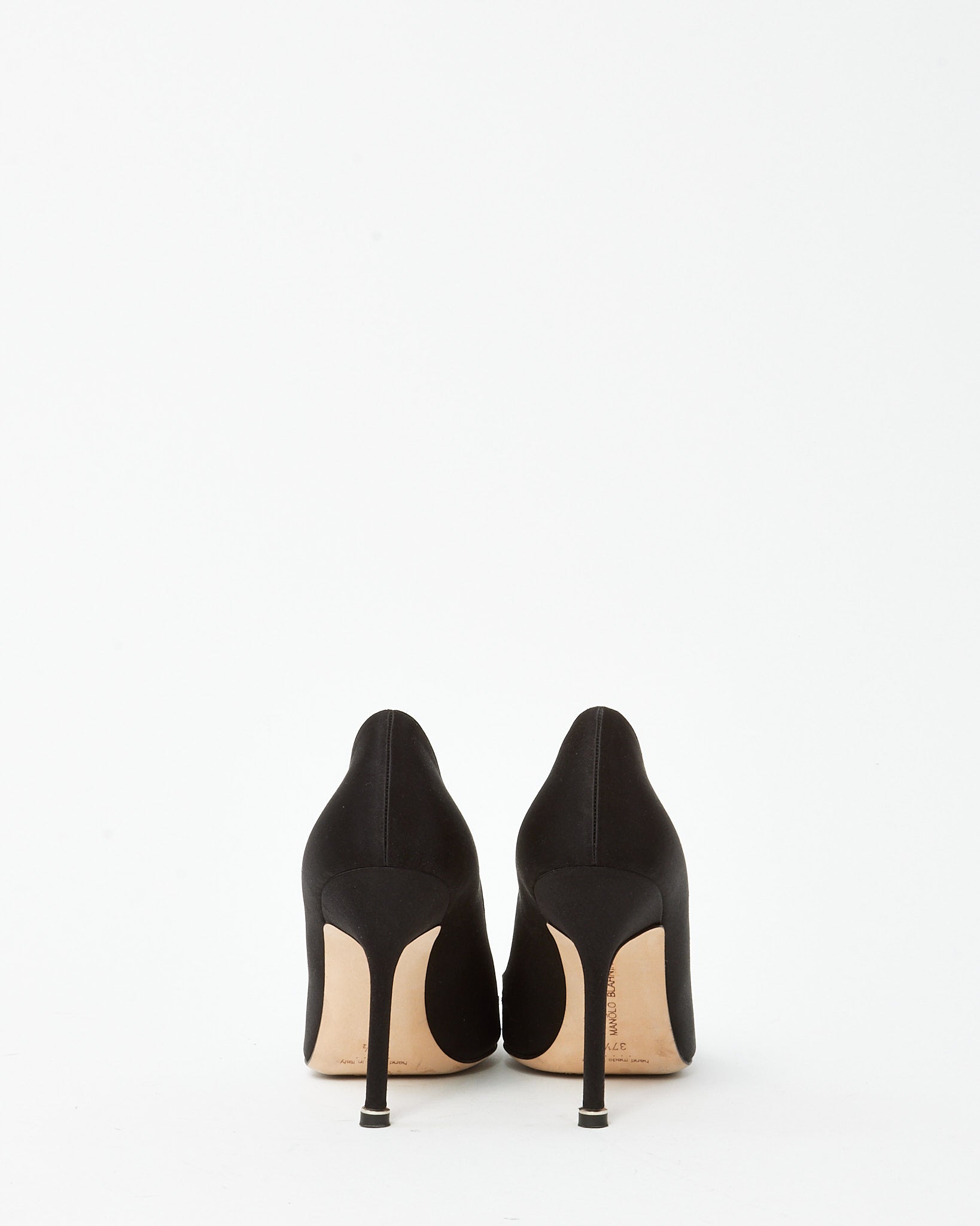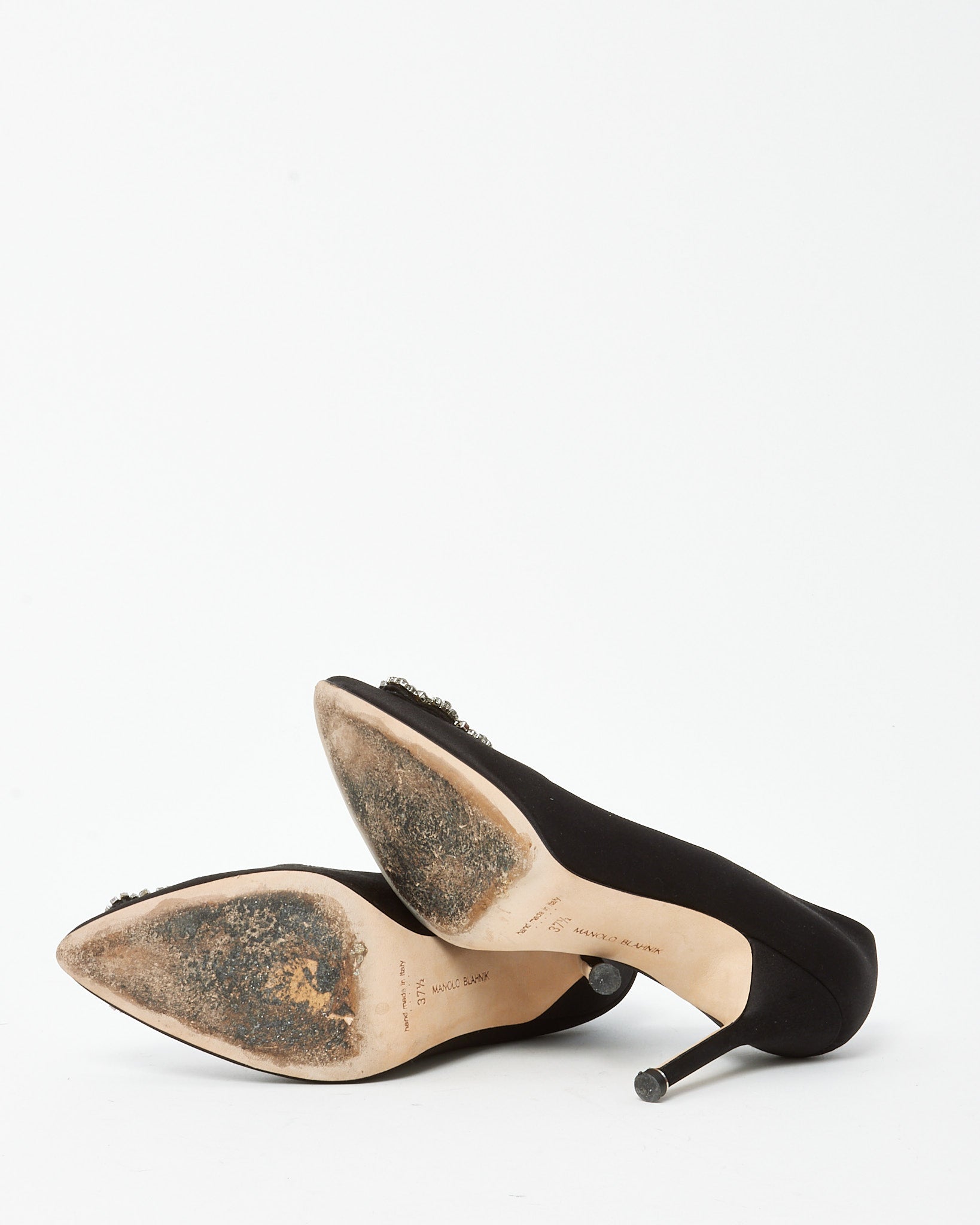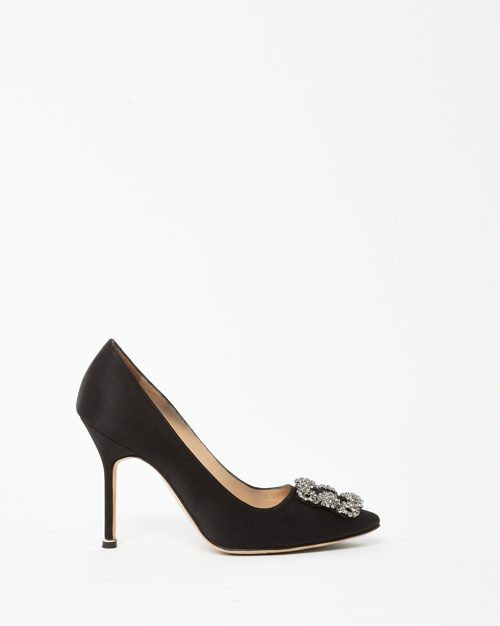 Black Satin Jewel Buckle Hangisi Pumps - 37.5