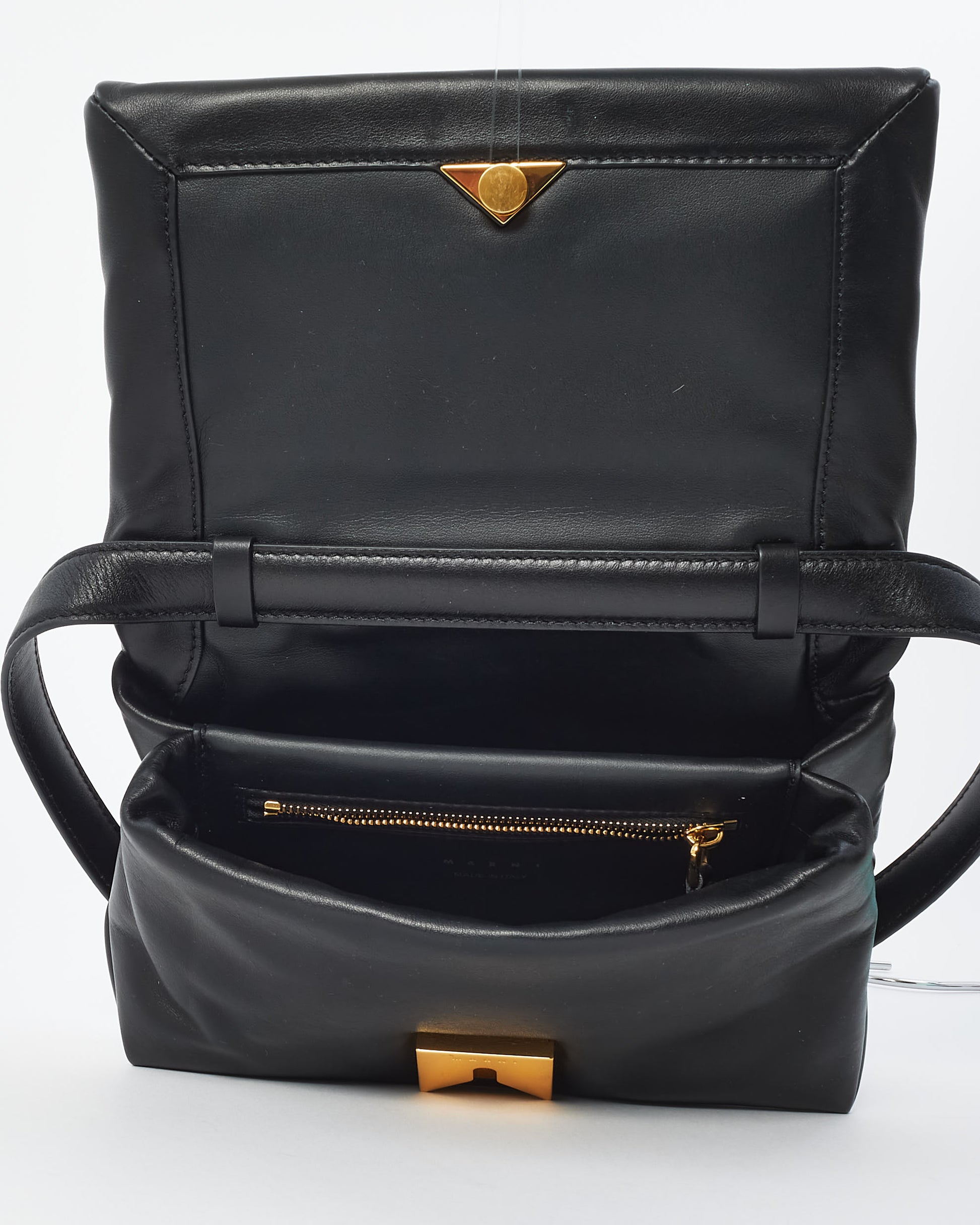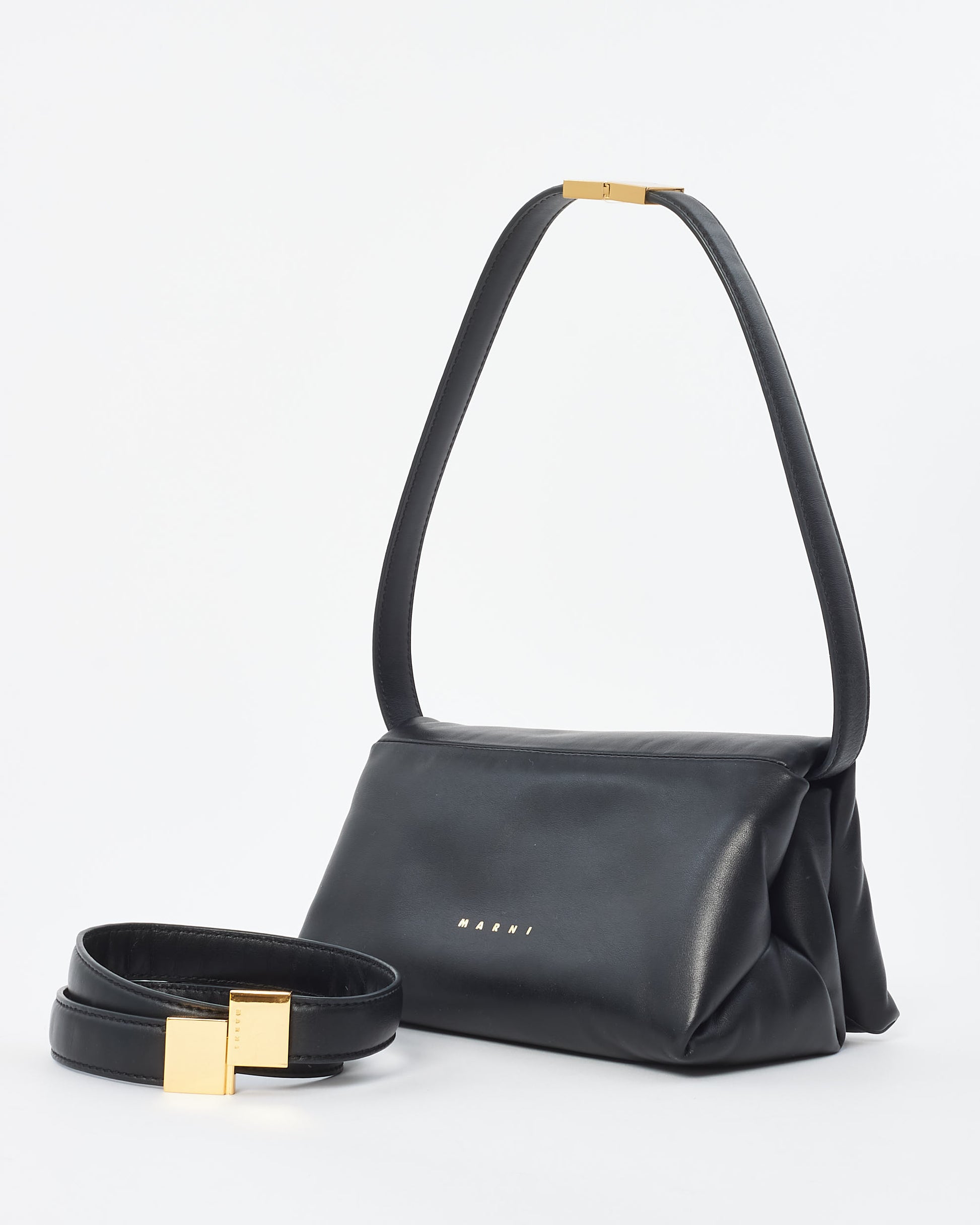 Explore Marni's exquisite collection of handbags, featuring this certified pre-owned Black Puffer Leather Small Prisma Shoulder Bag. Embodying timeless elegance and modern sustainability, each piece, including favorites like this, is authenticated by Retyche. Discover sustainable luxury — shop our current treasures or find inspiration for your next coveted find.