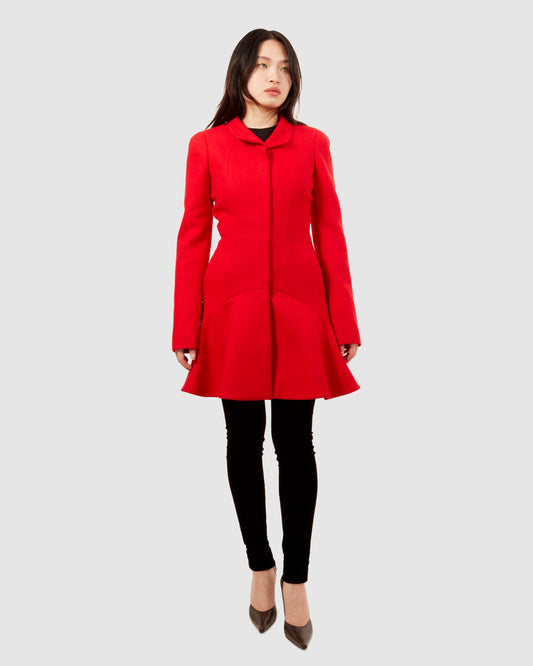 McQueen Red Wool Peplum Coat - 40