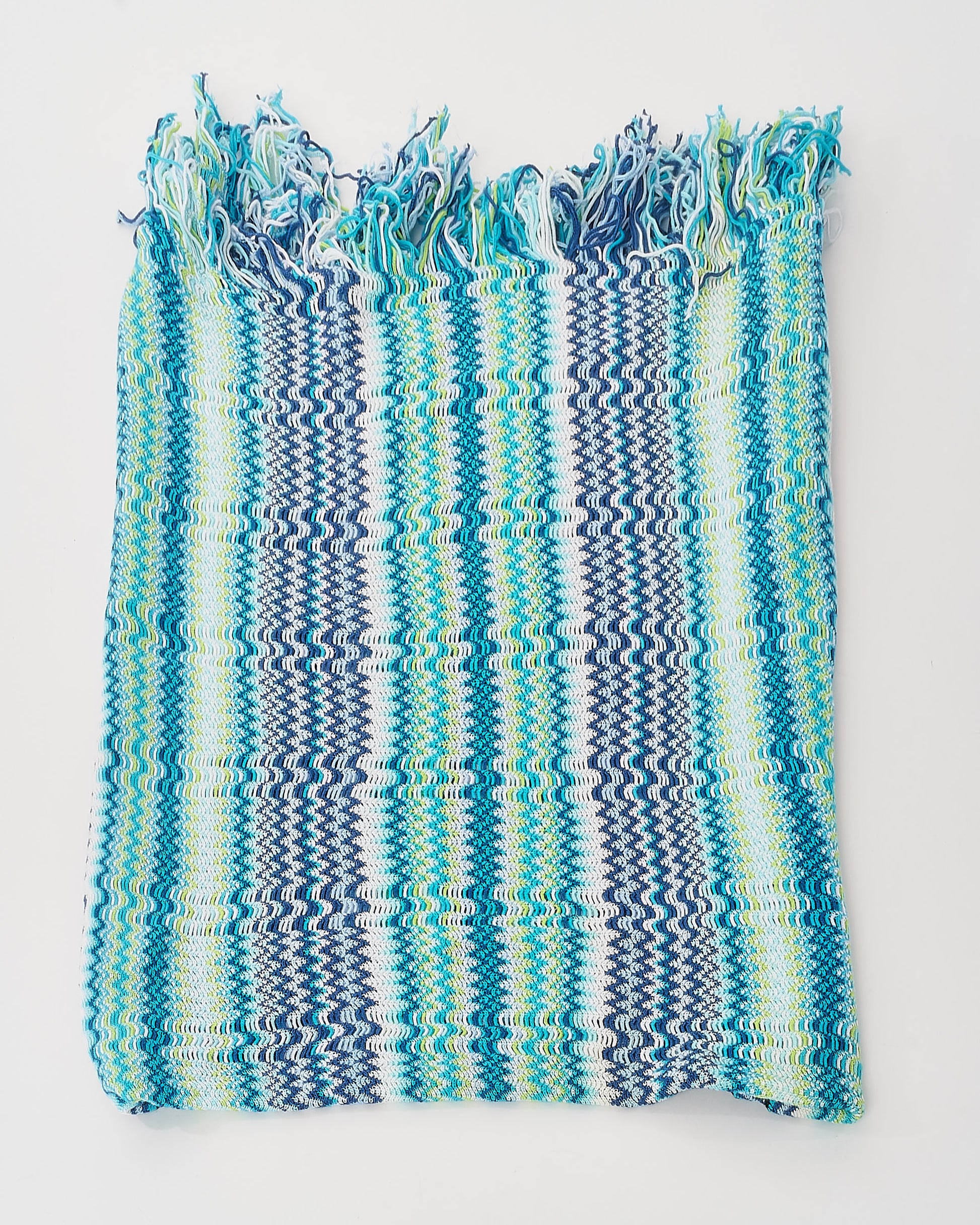 Vibrant, cozy, and unmistakably Missoni, the pre-owned authentic Blue & Multi Zigzag Knit Cotton Poncho Scarf brings bold color and iconic pattern to your layering game. Crafted from soft, breathable cotton, this versatile piece showcases the brand’s signature zigzag motif in a playful blend of blues, purples, and warm earth tones.