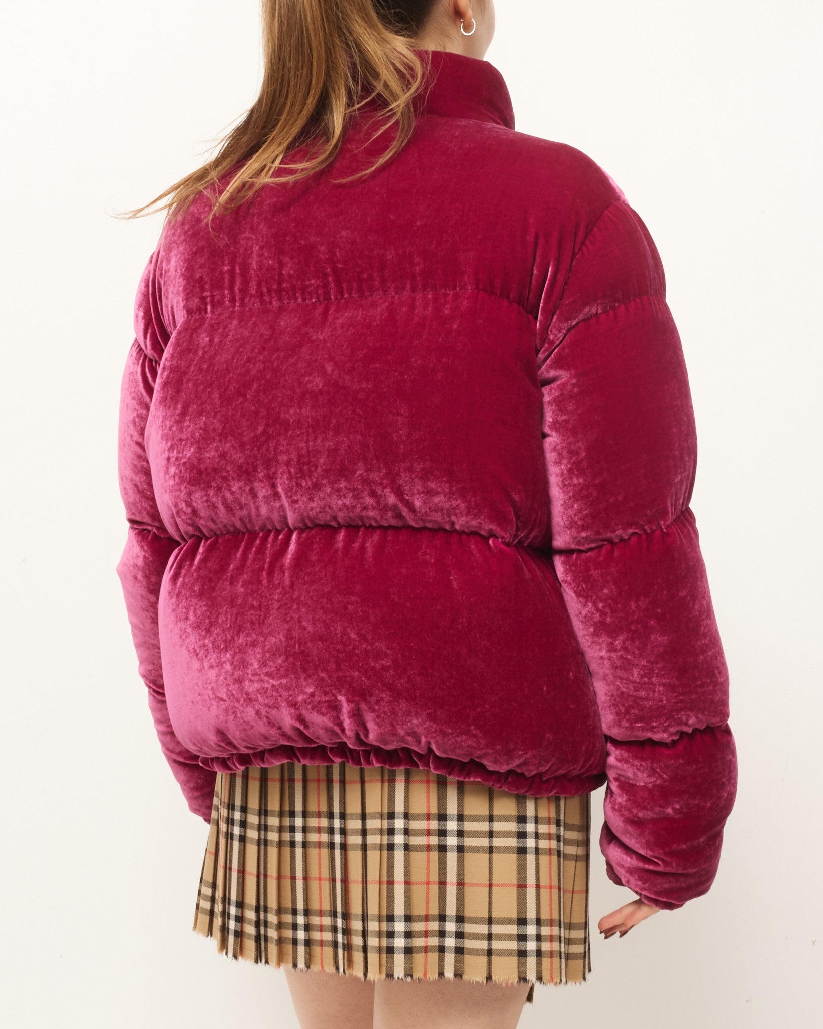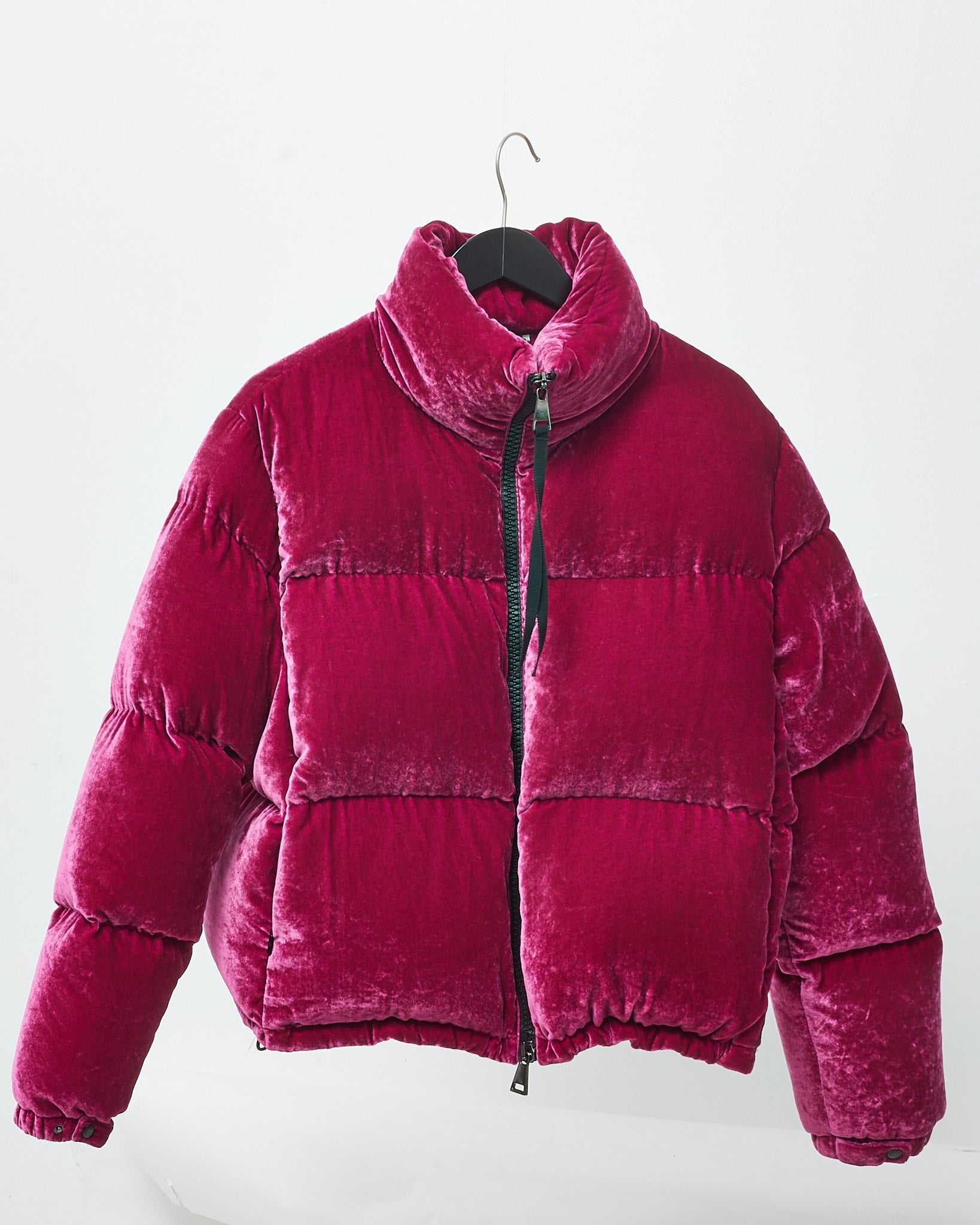 Fuchsia Pink Rimac Velvet Quilted Down Puffer Jacket - 3