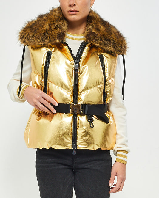 Gold Metallic Grenoble Après Ski Fur Trimmed Puffer Vest - 1