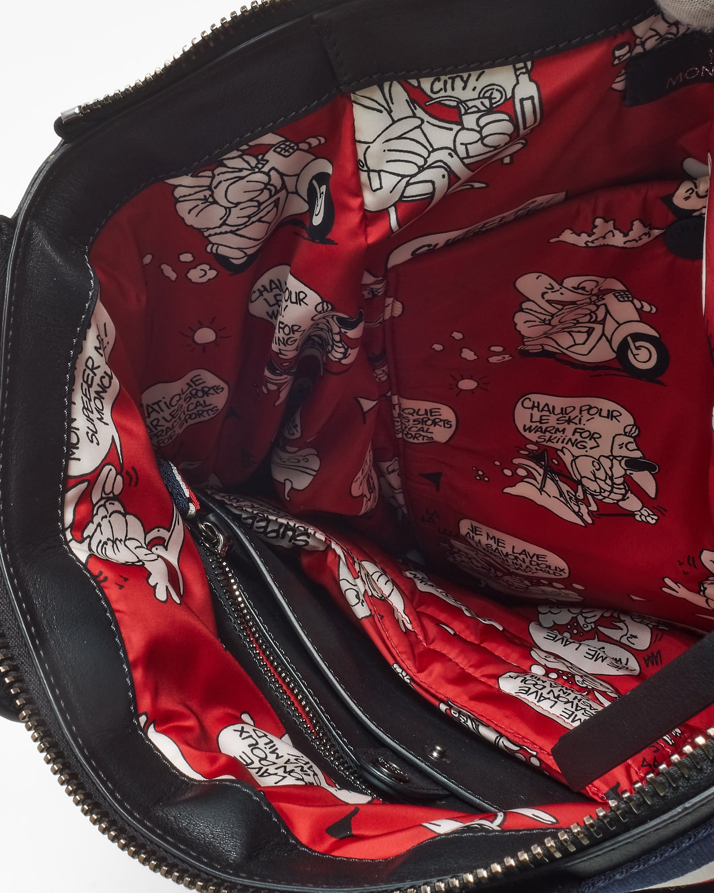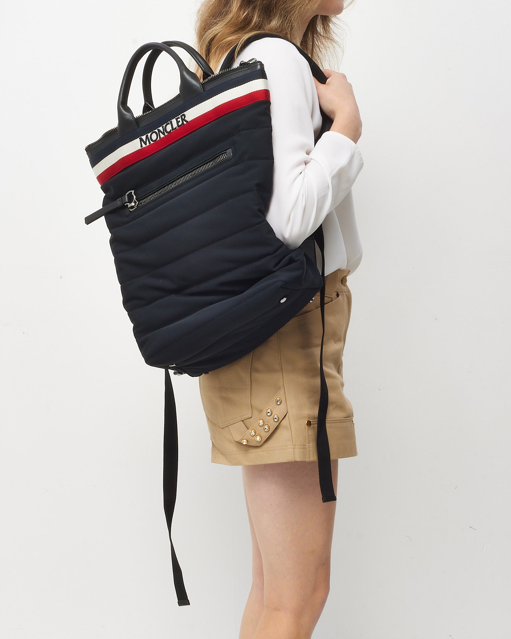 Crafted from durable navy nylon and finished with the iconic Moncler logo patch, it features a spacious zip-around main compartment, front zip pocket, and top handle for versatile carry. A functional yet elevated choice for daily wear, travel, or on-the-go city style.