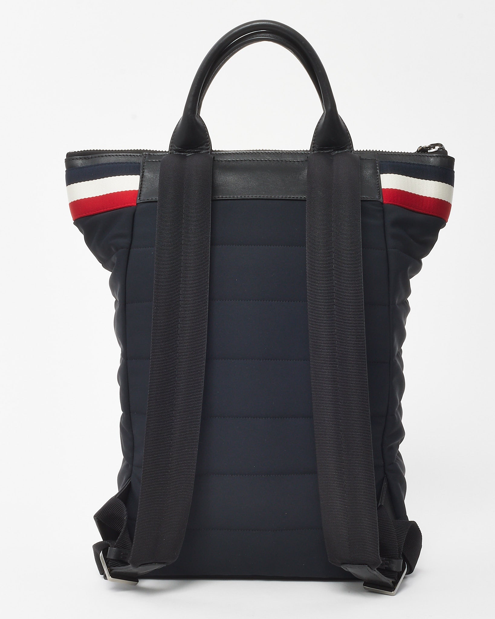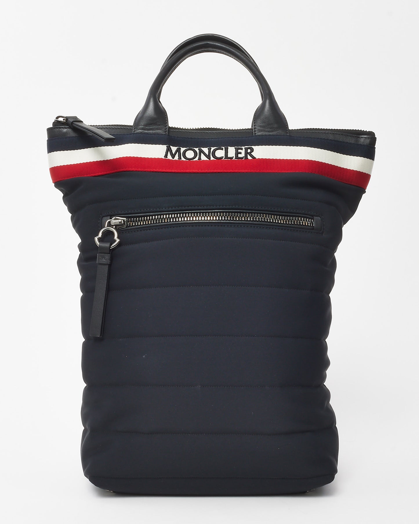 Designed for sleek utility with a modern edge, this pre-loved authentic Moncler Navy Nylon Logo Top Handle Zip Backpack blends performance and style with signature ease.