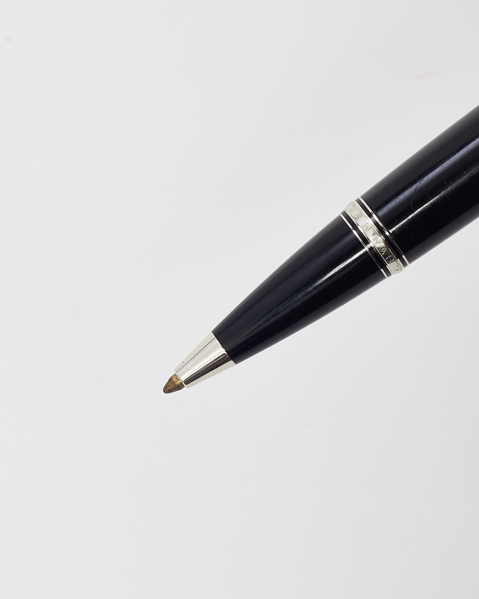 Refined and compact, this pre-loved authentic Montblanc Boheme Ballpoint Pen from the Platinum Line is a sophisticated addition to any collection. Crafted from sleek black precious resin and accented with polished platinum-plated fittings, it features a retractable twist mechanism and the signature Montblanc snowcap emblem atop the cap. Designed with a luxurious feel and effortless writing experience, this pen is perfect for those who appreciate timeless elegance in a modern format.